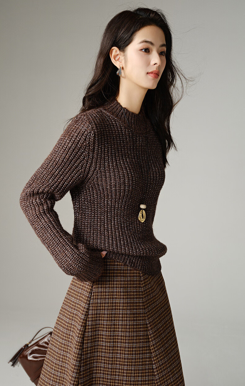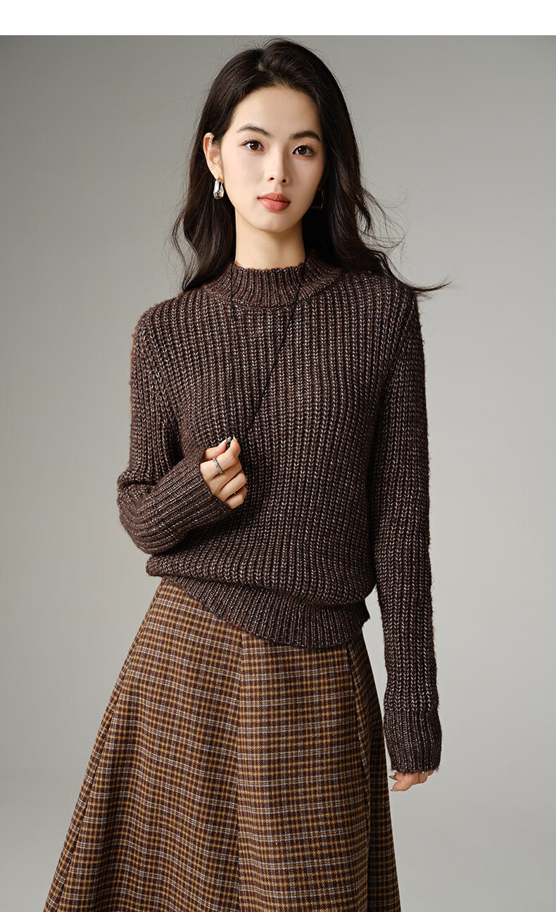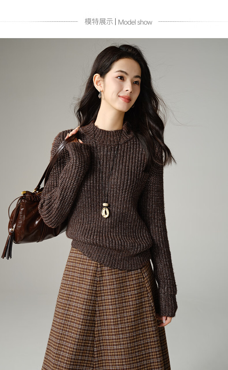 Late White New Product 2025 Winter Temperament High-end French Lazy Sweater Casual Pullover Design Knitted Sweater Women Dark Brown L