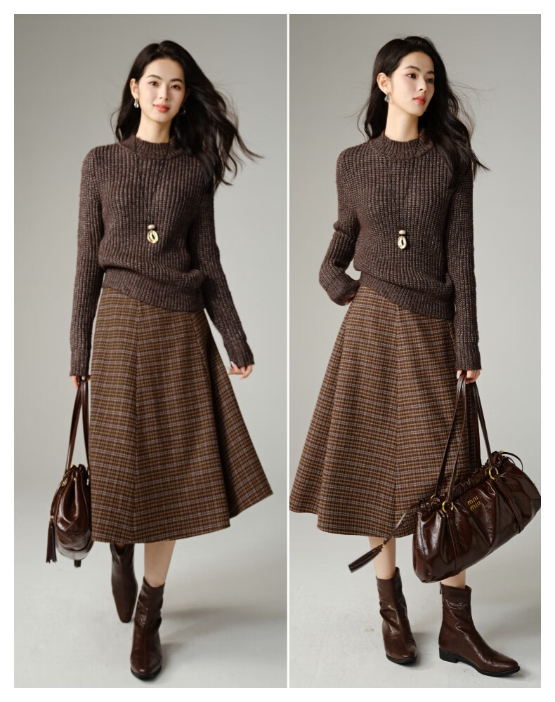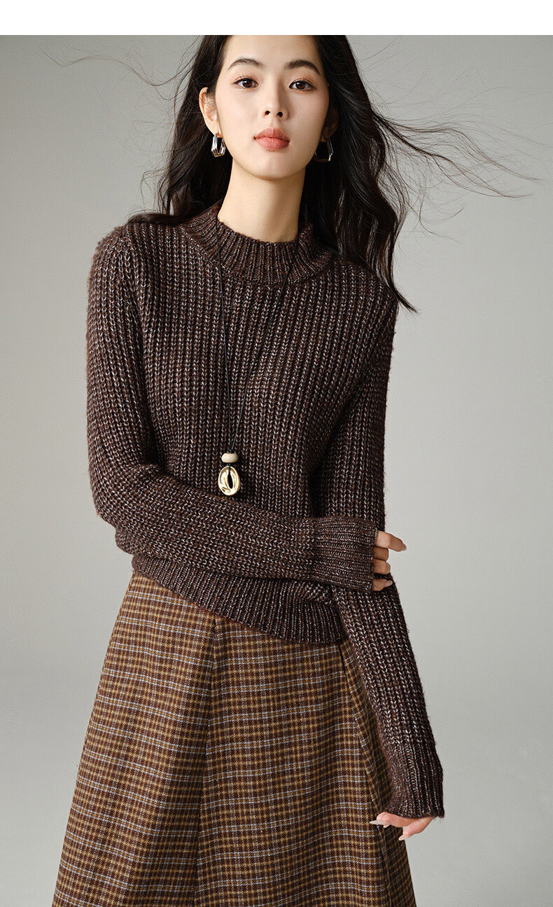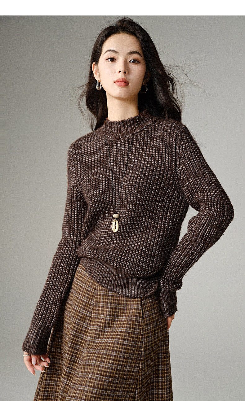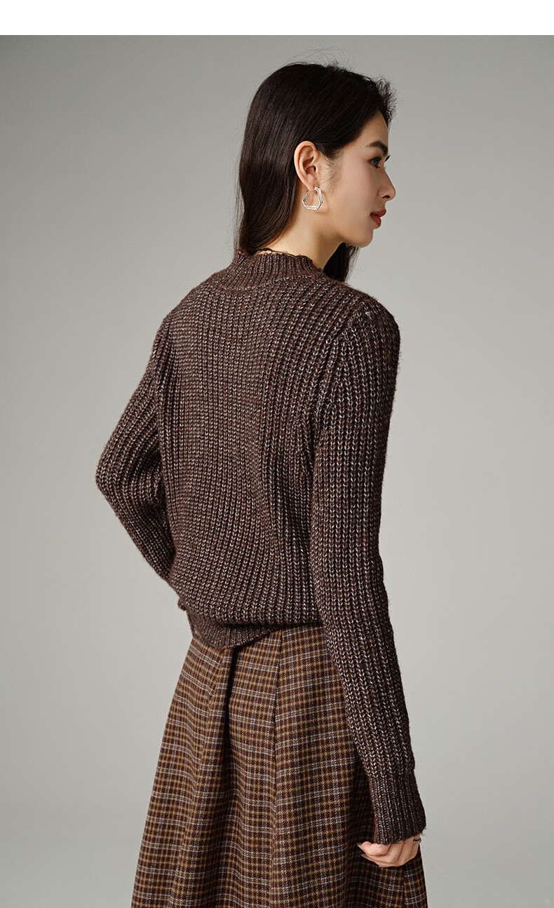 Late White New Product 2025 Winter Temperament High-end French Lazy Sweater Casual Pullover Design Knitted Sweater Women Dark Brown L