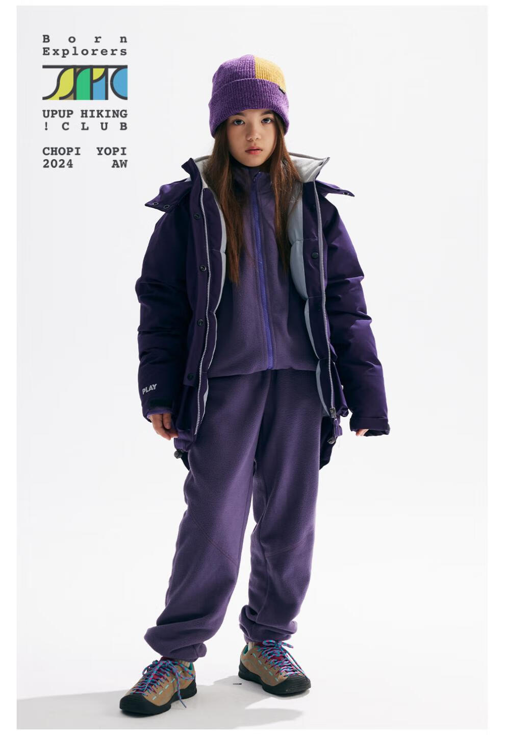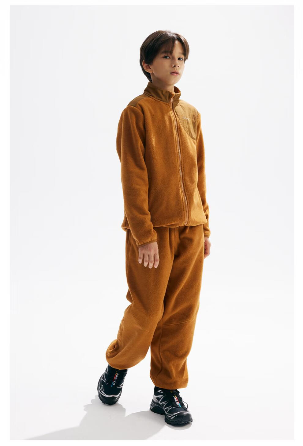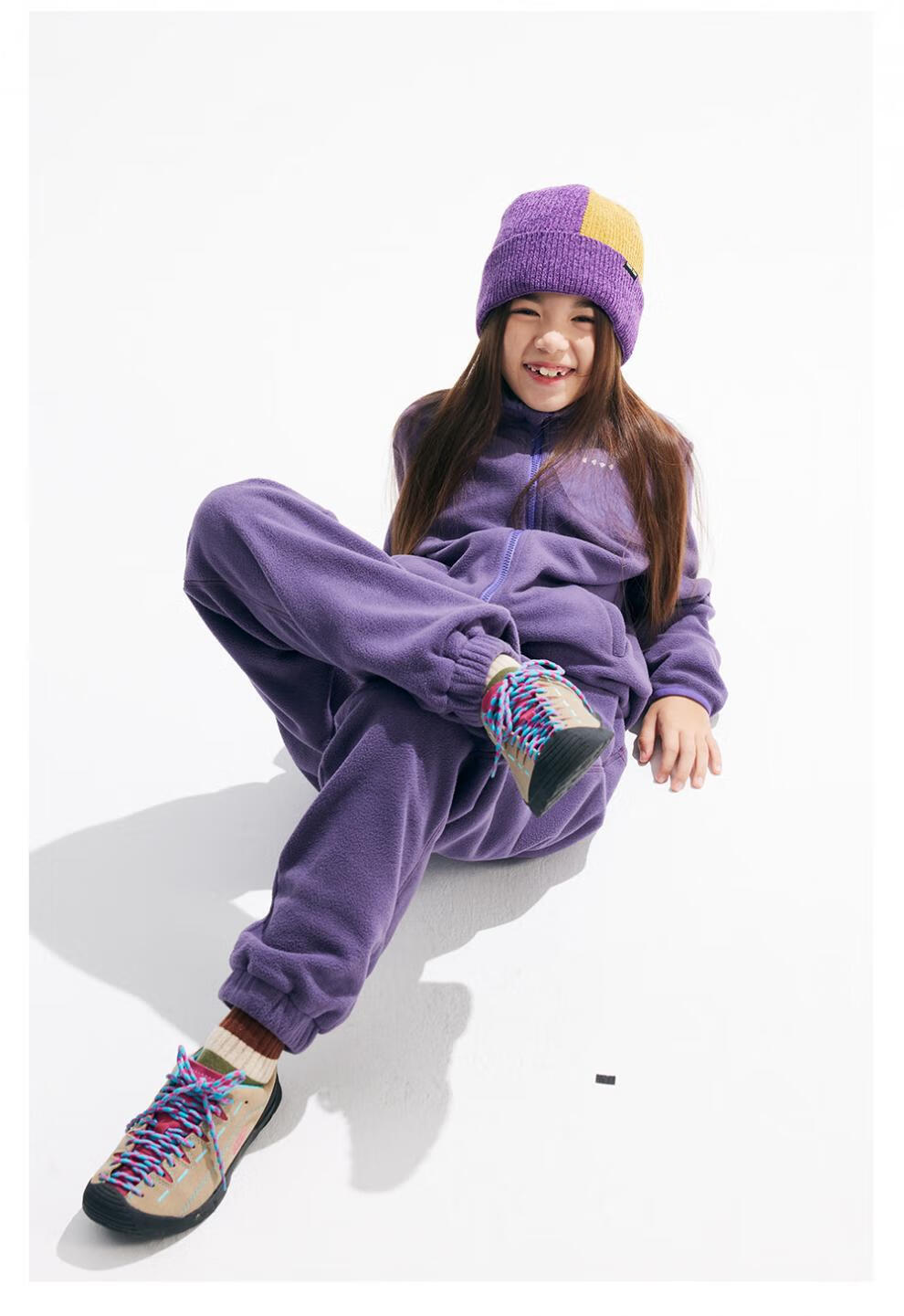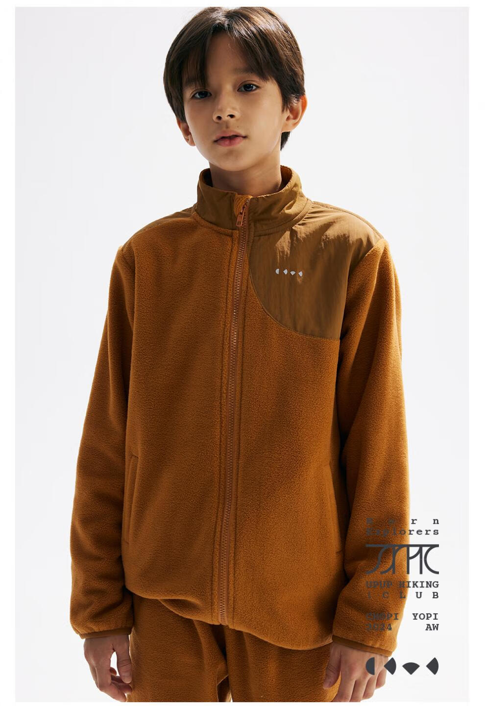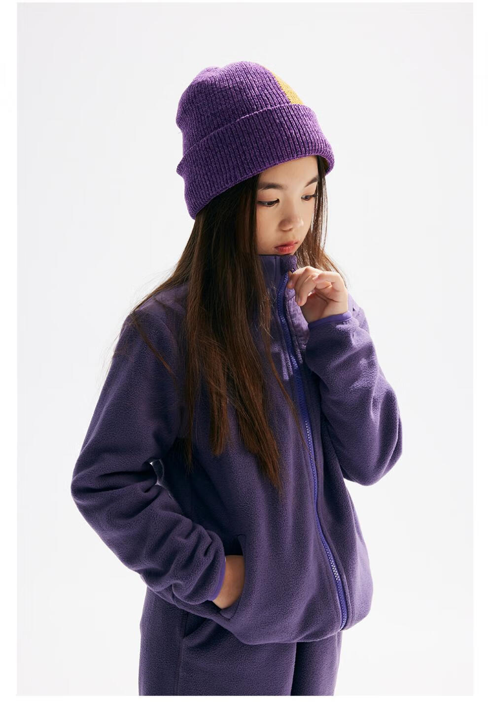 CHOPIYOPI children's clothing children's spliced polar fleece collar zipper cardigan spring and autumn new constant temperature warm jacket gray purple 110 cm