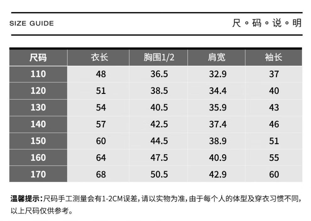 China (cm) 160-165/84-86 165-170 / 88-90 167-172 / 92-96 168-173 / 98-102 170-176 / 106-110
