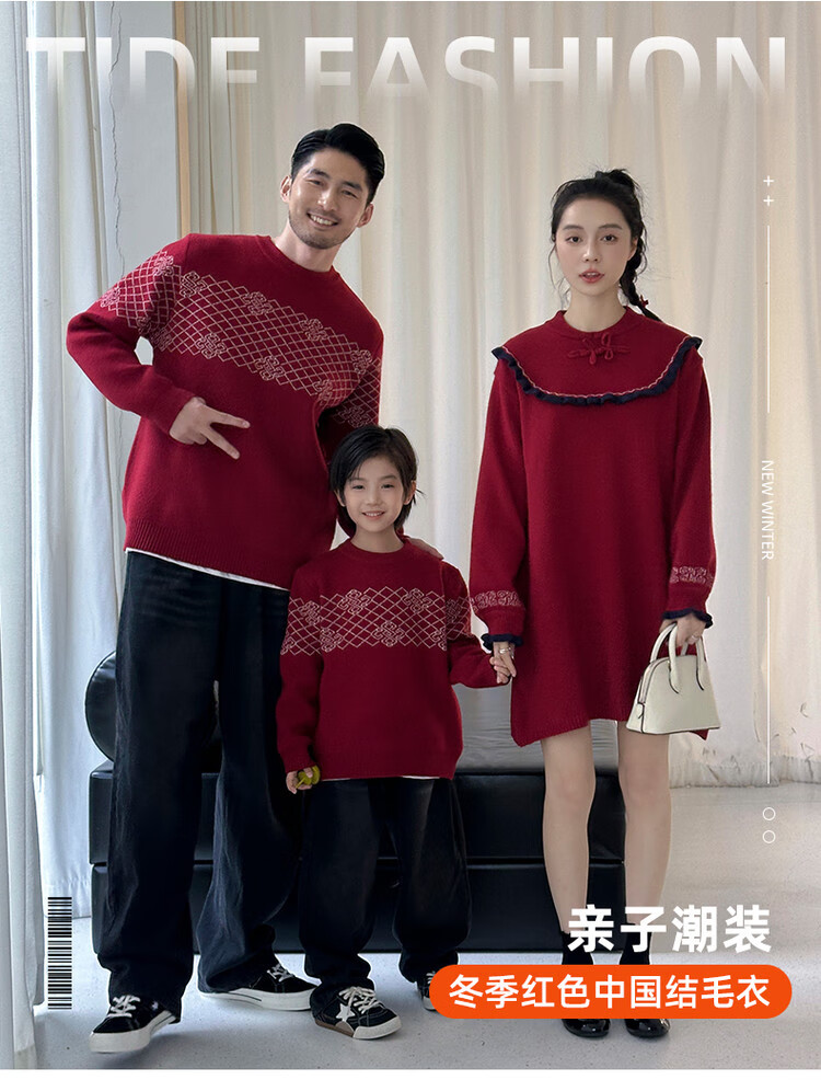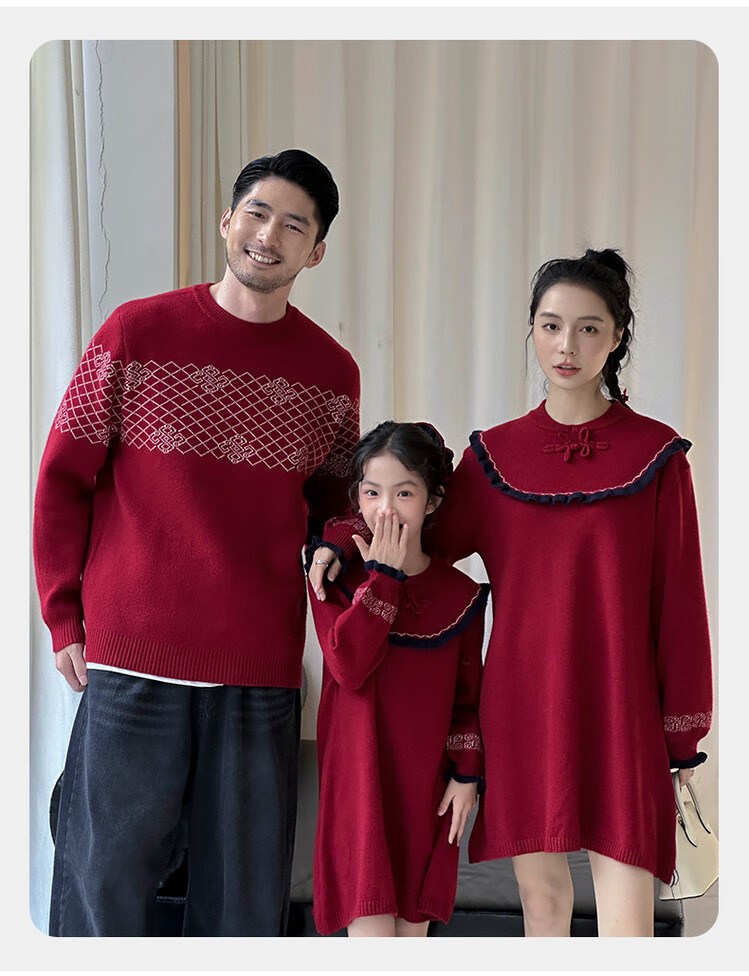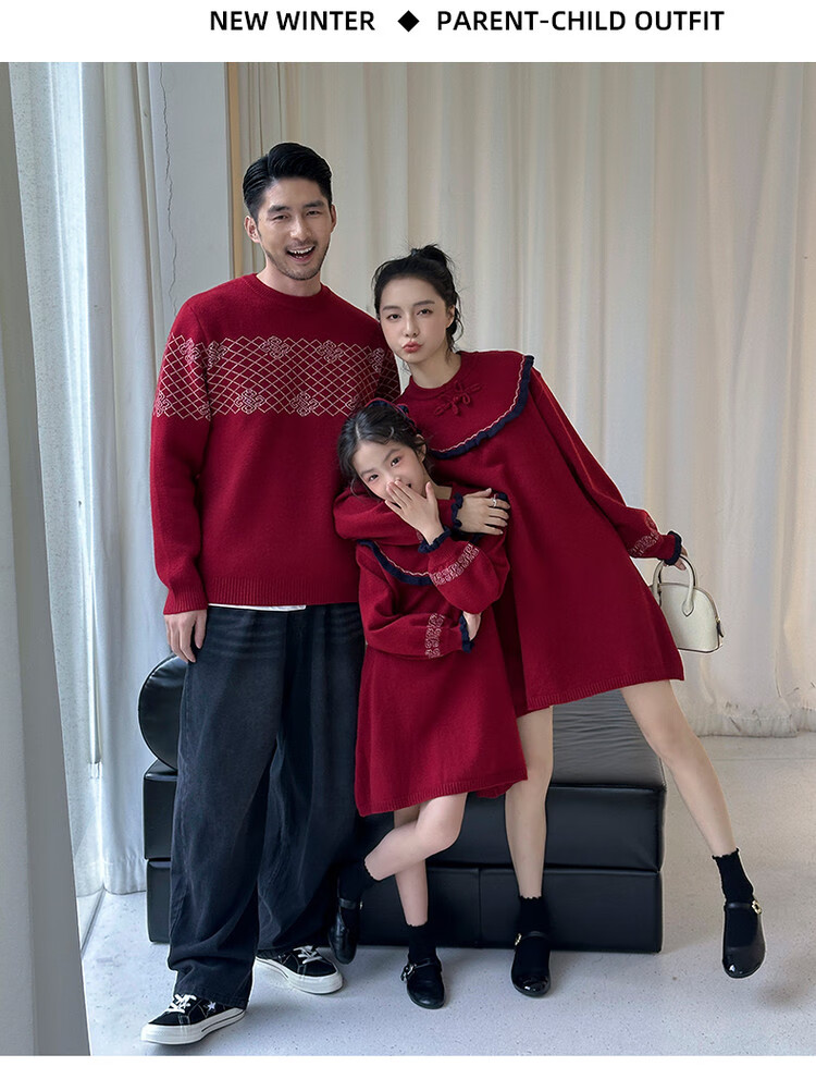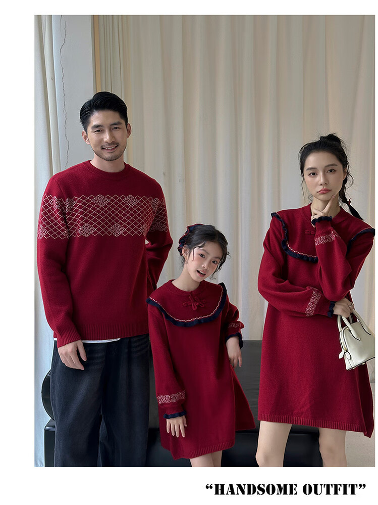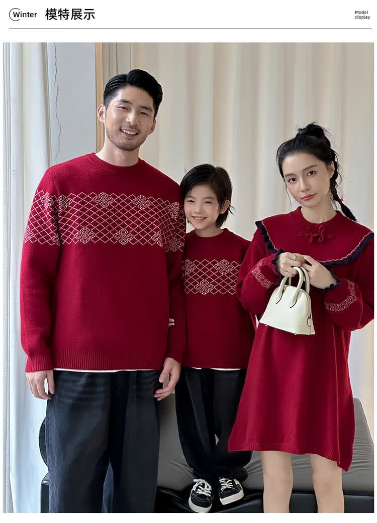 G.duck little yellow duck new Chinese style parent-child wear winter sweater family of three or four family wear sweater mother and daughter dress trendy Chinese knot sweater dress 100 (recommended height 90cm 3-4 years old) cm
