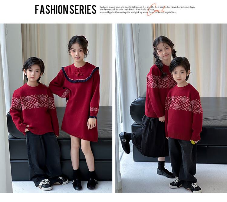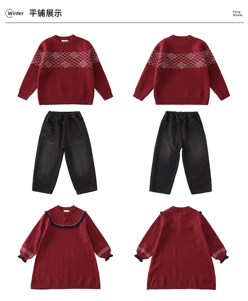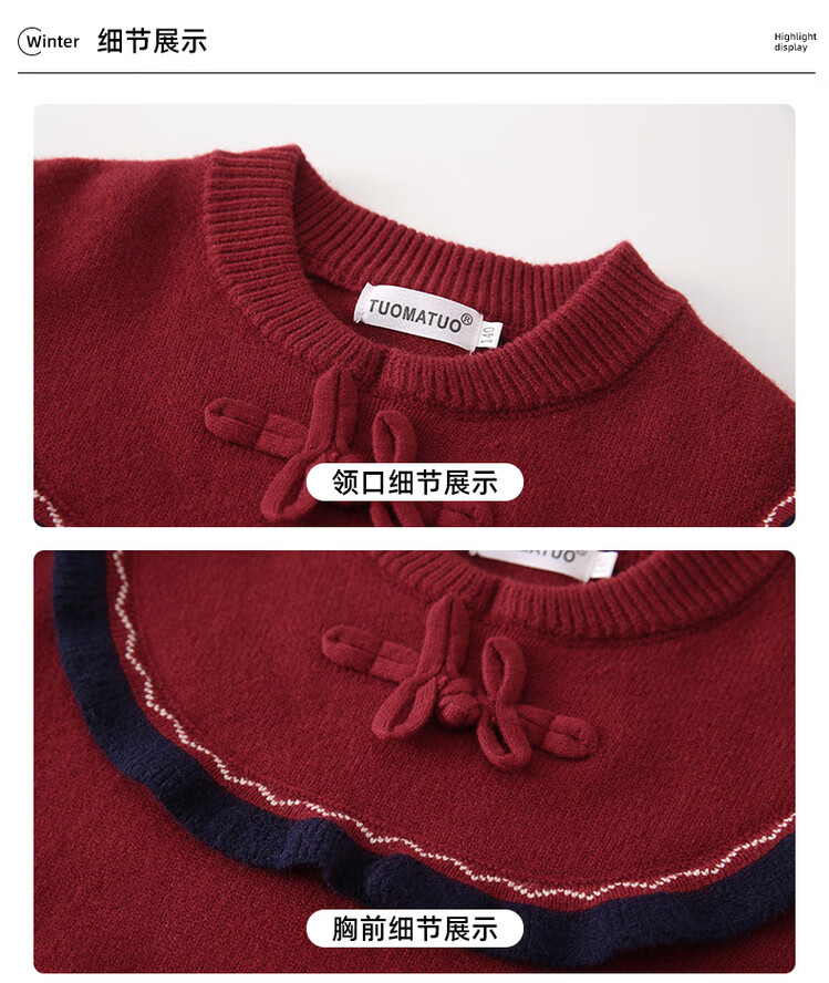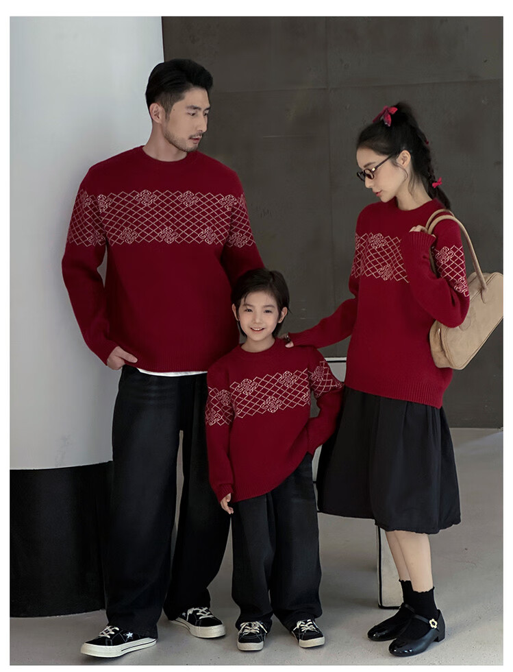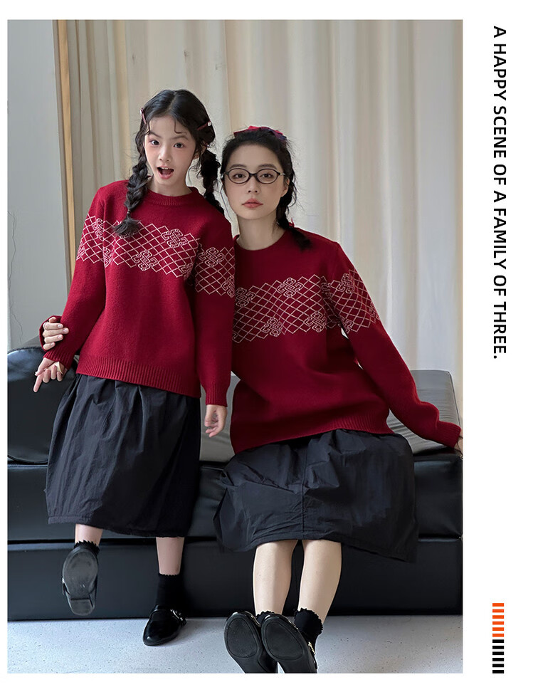 G.duck little yellow duck new Chinese style parent-child wear winter sweater family of three or four family wear sweater mother and daughter dress trendy Chinese knot sweater dress 100 (recommended height 90cm 3-4 years old) cm