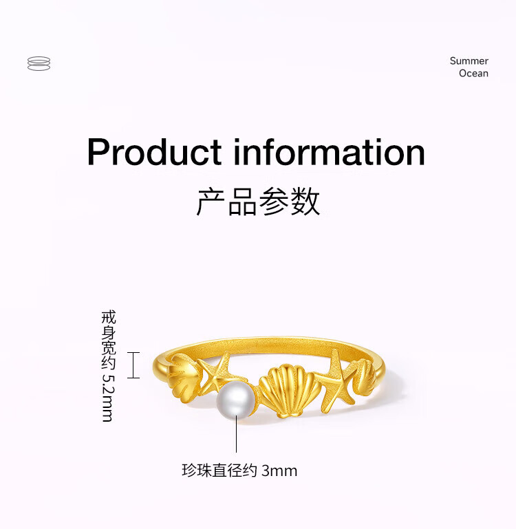 Saturday Fortune (ZLF) Gold Pearl Ring Gold Shell Summer Ocean Freshwater Pearl Gold Inlaid Ring No. 12-2.2g