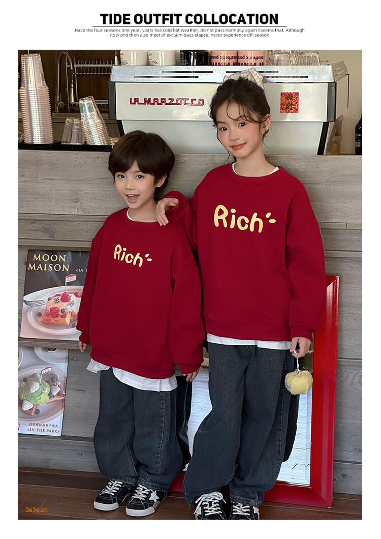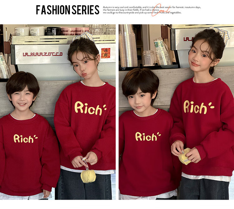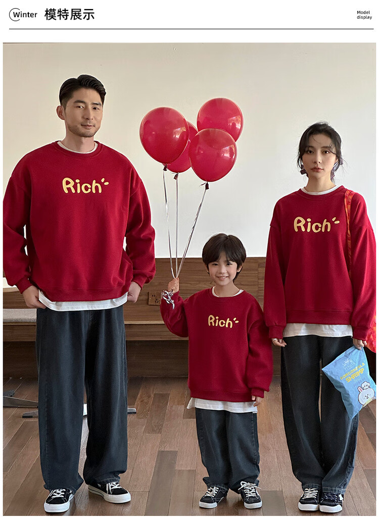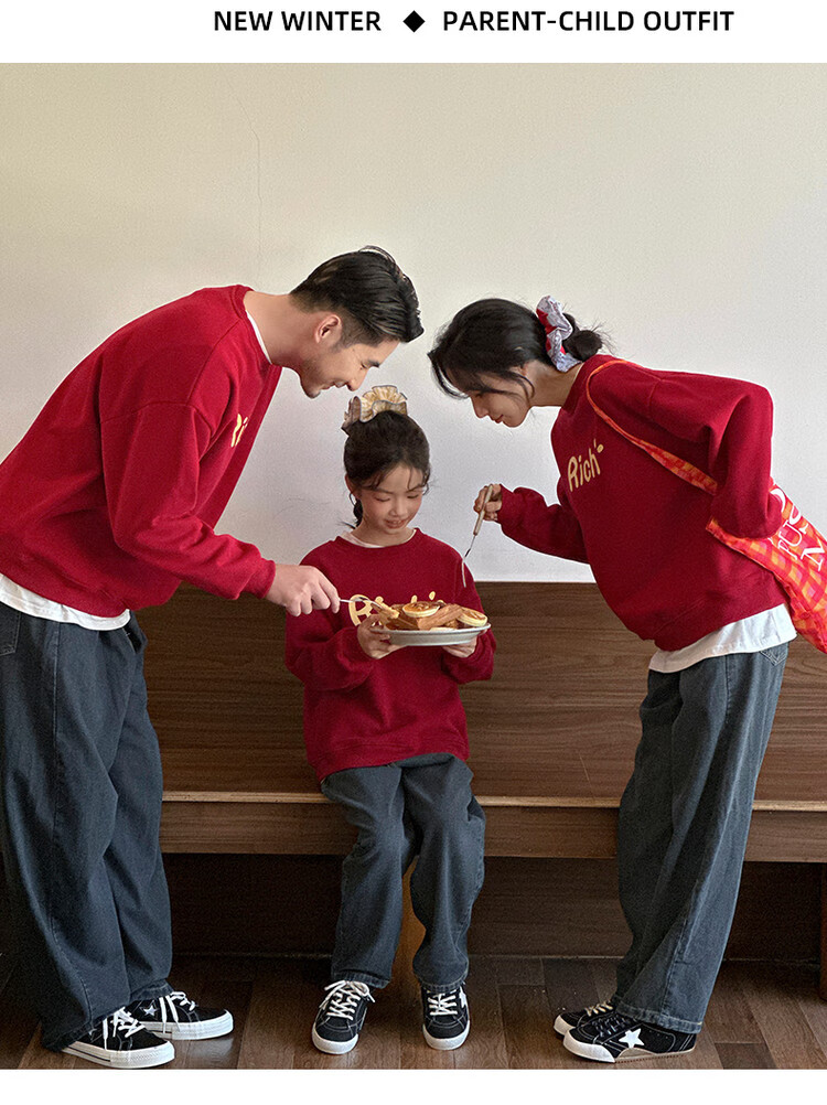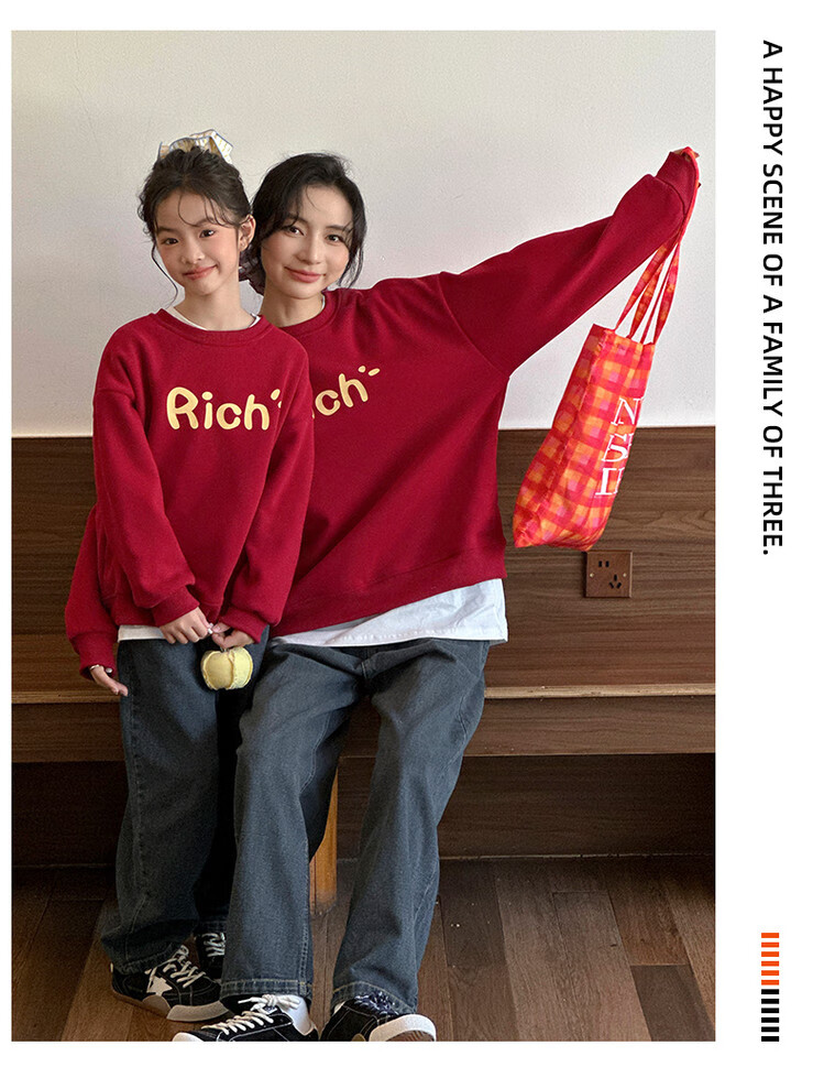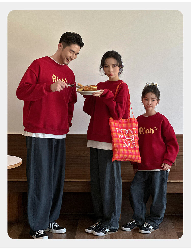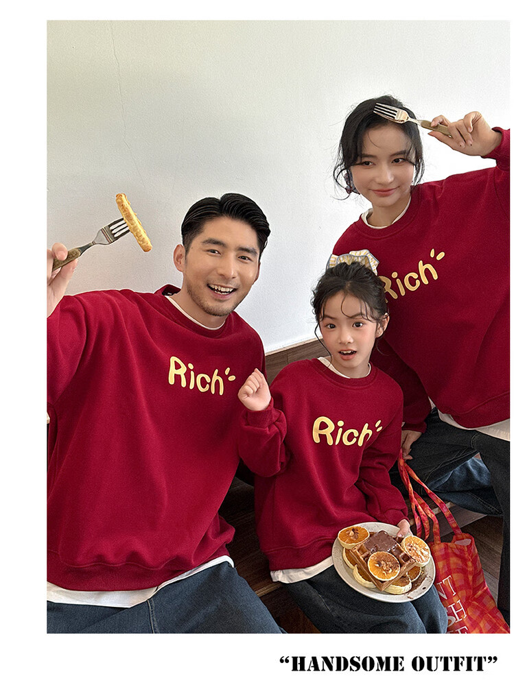 G.duck little yellow duck fried street parent-child wear winter sweatshirt 2026 new family of three or four red mother-daughter mother-child New Year's greeting wear RICH sweatshirt 165 S