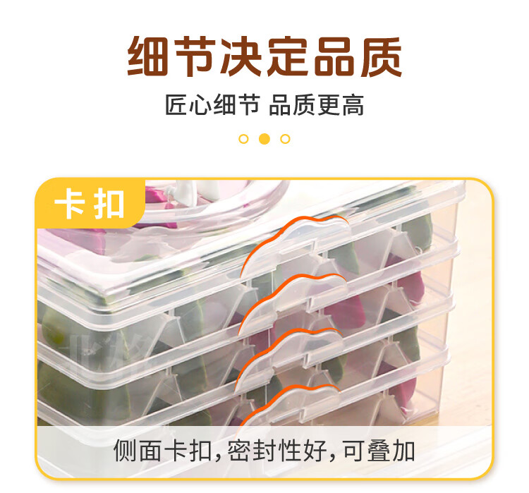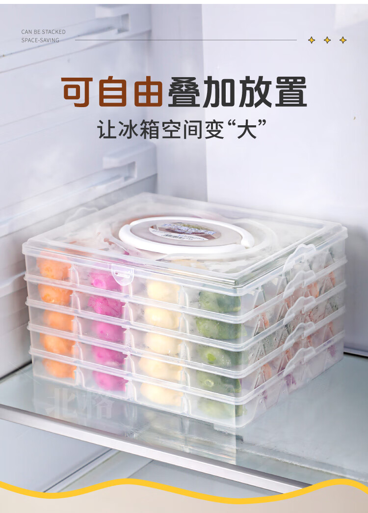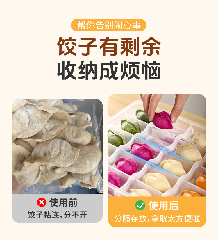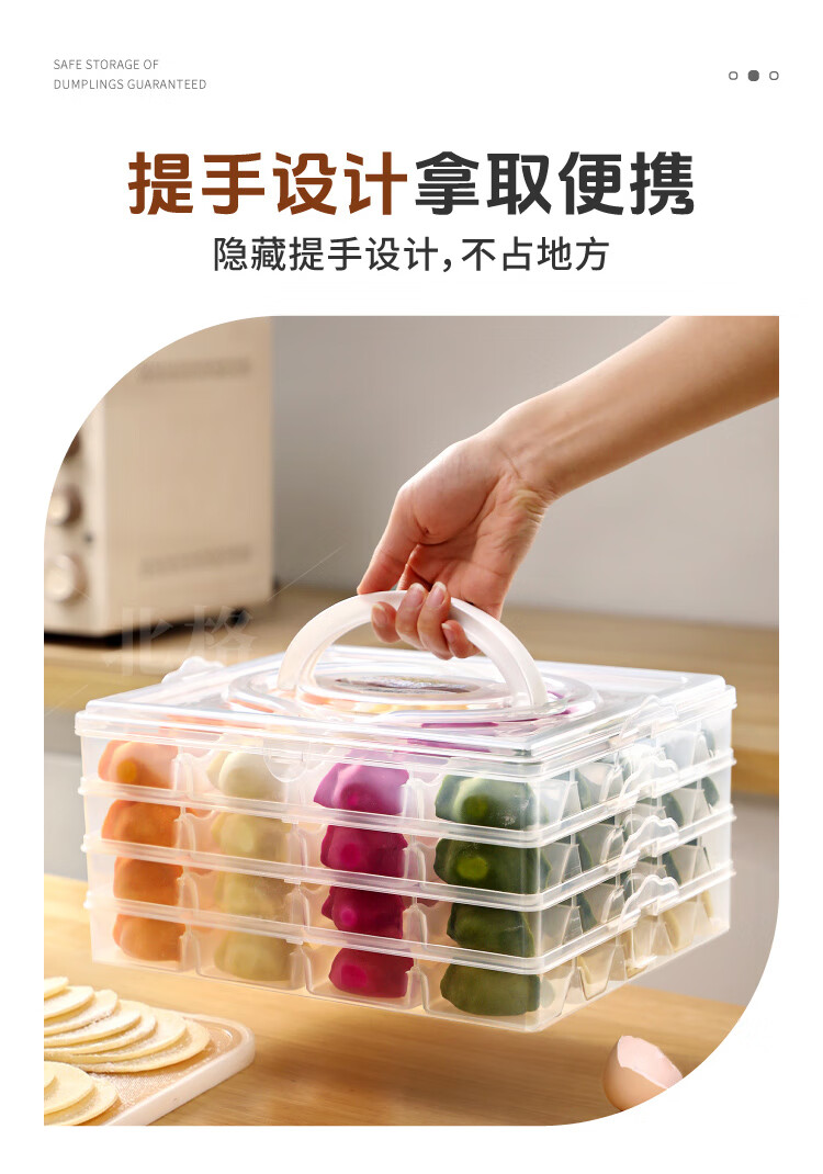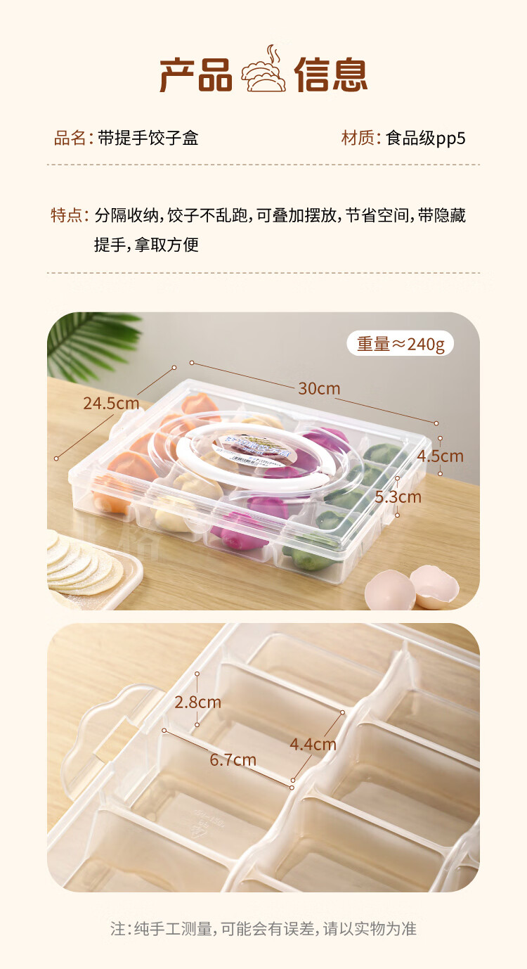 Beige dumpling storage box for refrigerator, frozen dumpling box, food-grade dumpling storage box, special tray for quick-frozen dumplings, pure white, 2 layers, two layers and one cover, upgraded with handle, 20 compartments on one layer