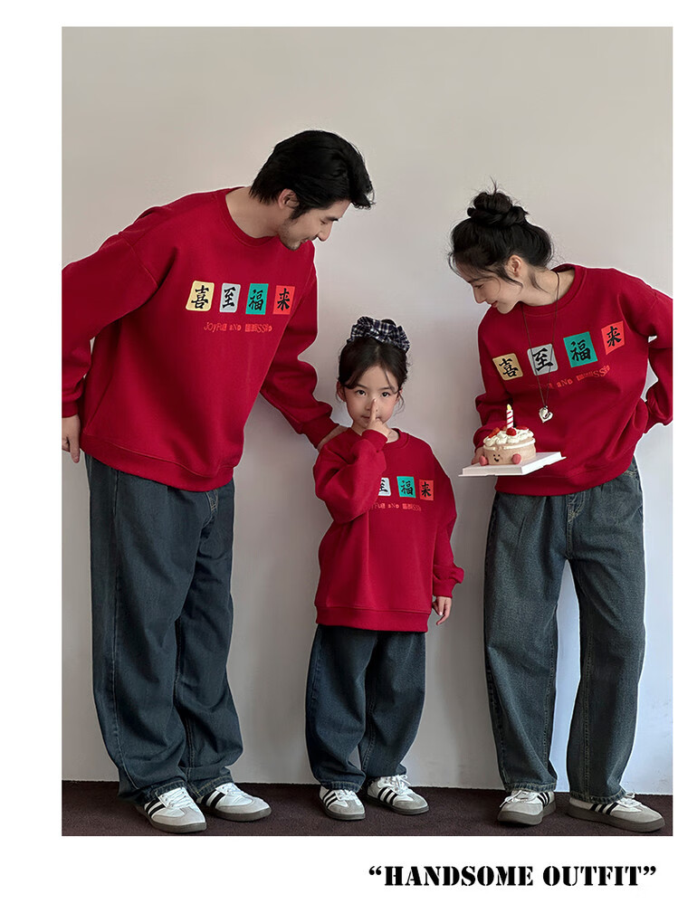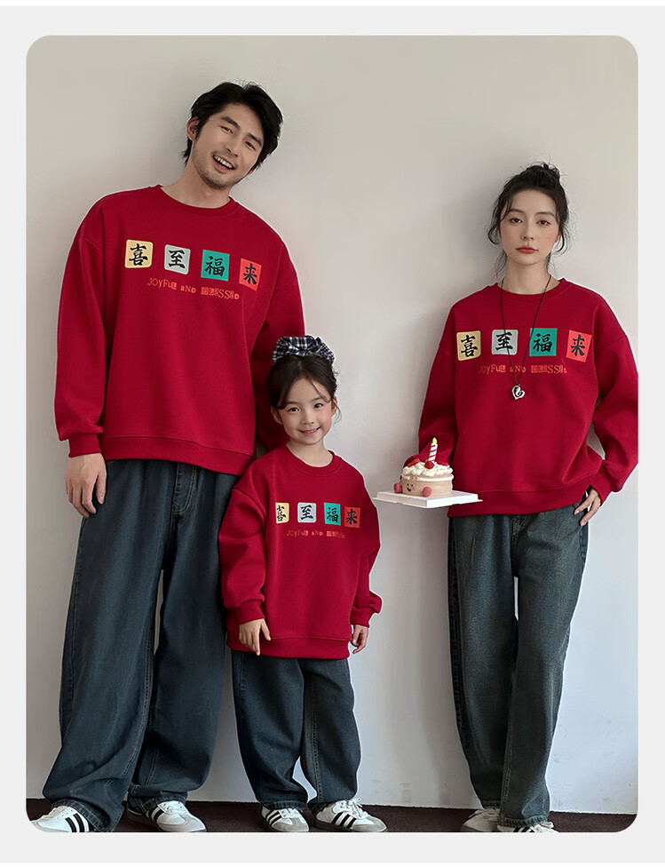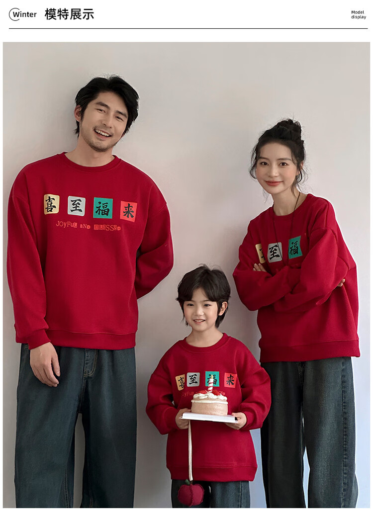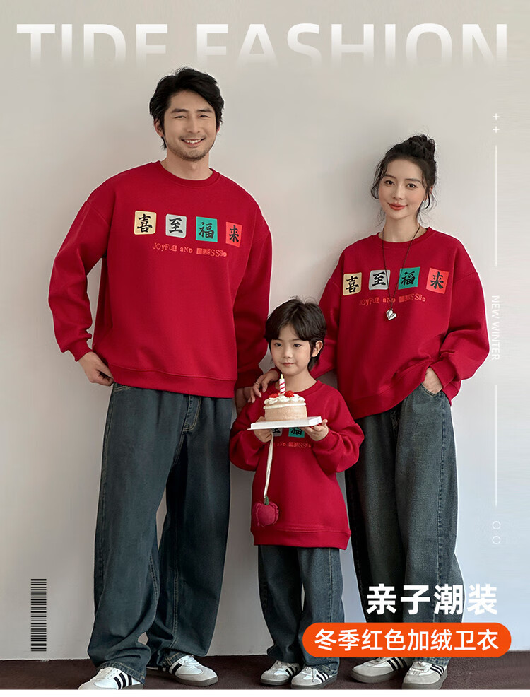G.duck parent-child red sweatshirt winter velvet thickened New Year shirt 2026 Year of the Horse animal year top New Year greetings trend Xi Zhi Fulai sweatshirt 165 S