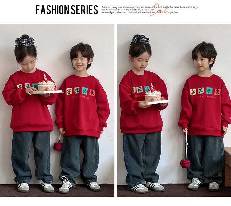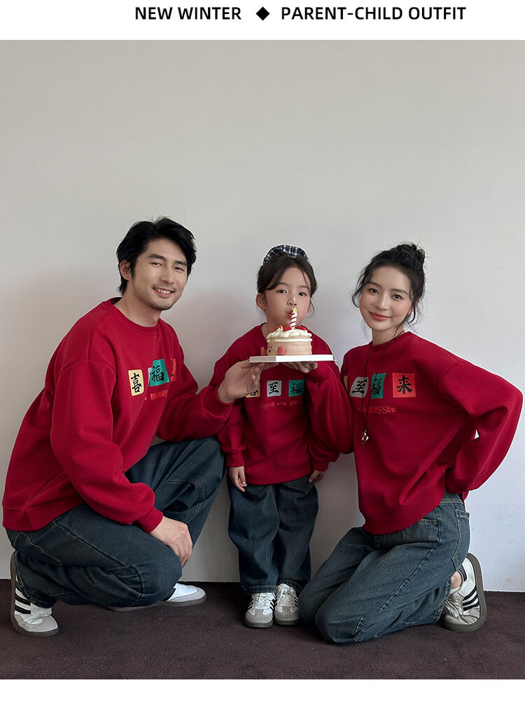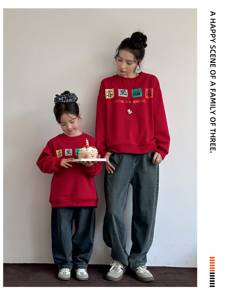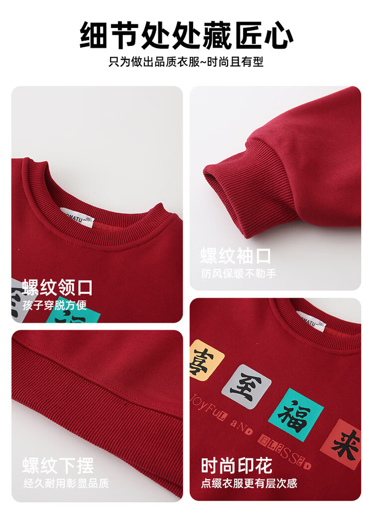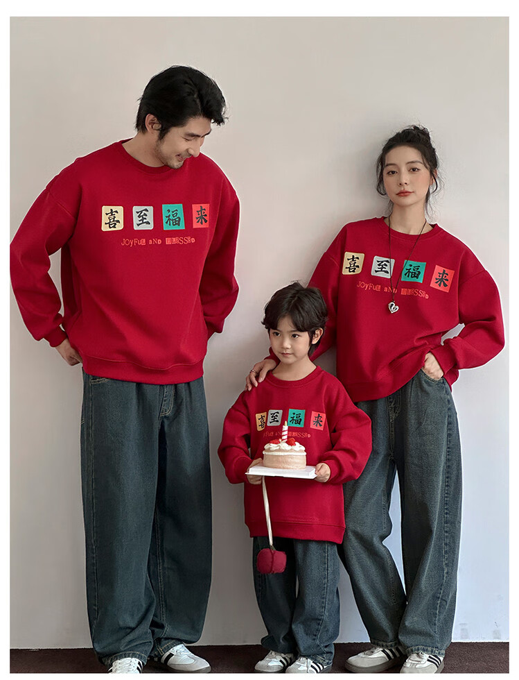 G.duck parent-child red sweatshirt winter velvet thickened New Year shirt 2026 Year of the Horse animal year top New Year greetings trend Xi Zhi Fulai sweatshirt 165 S