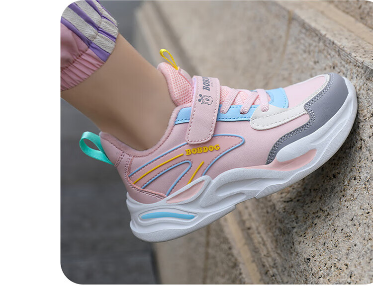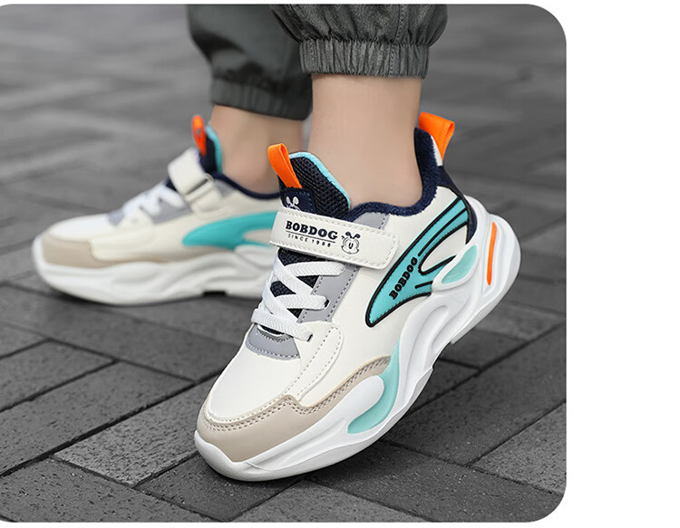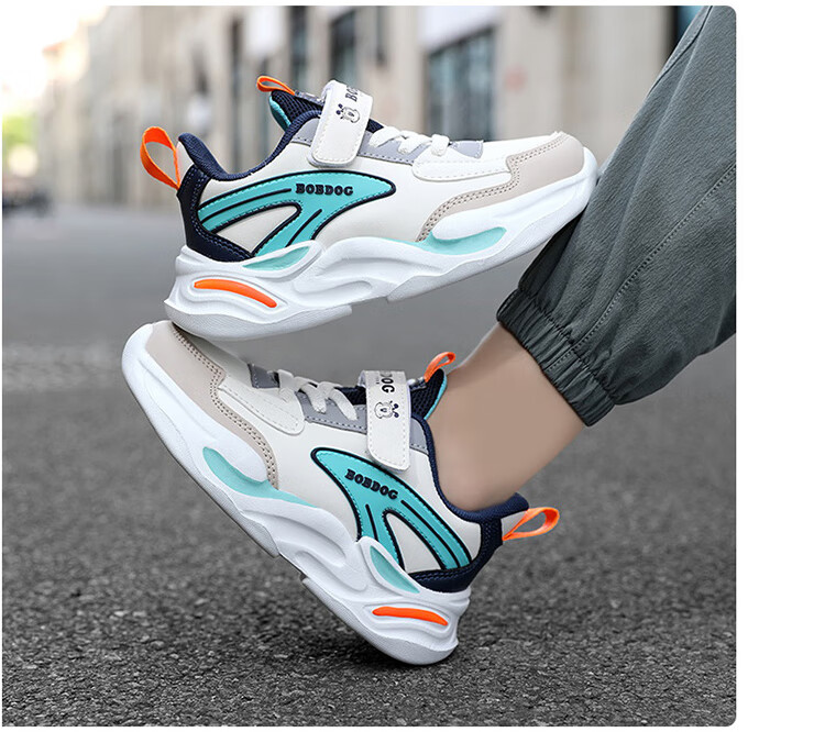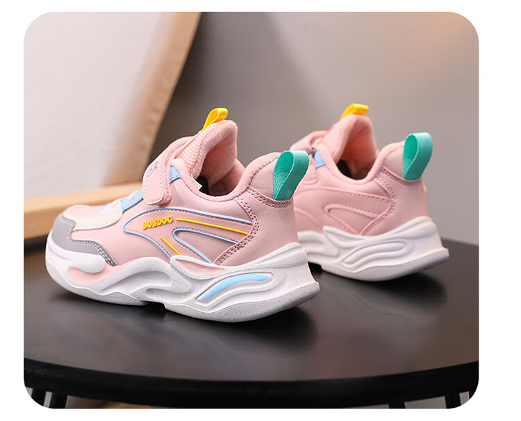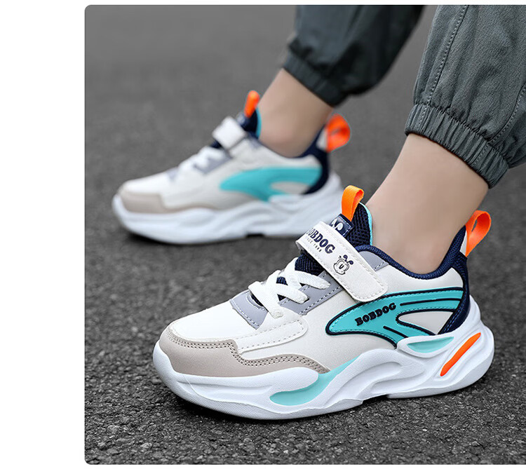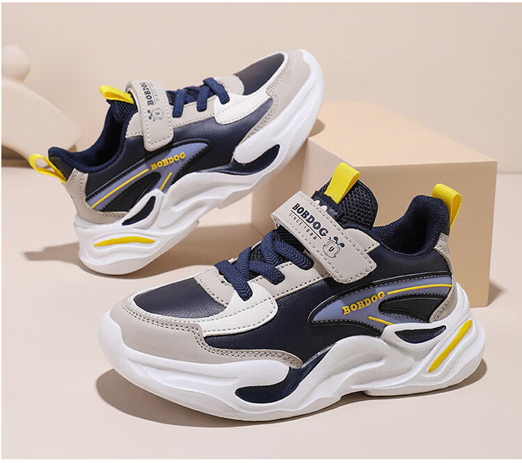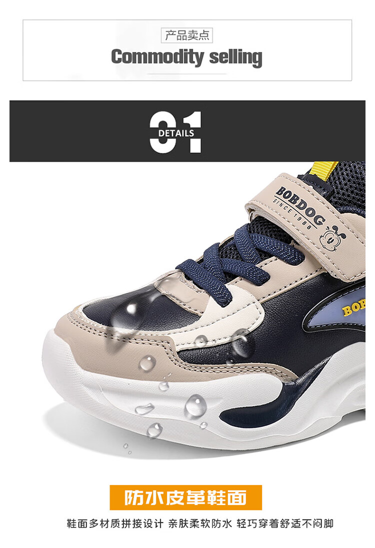 Babu Dou children's cotton shoes with velvet to keep warm in winter, boys and girls sports shoes, leather waterproof student running shoes, 2 cotton, dark blue, velvet in winter, 34 (inner length 22.0cm)