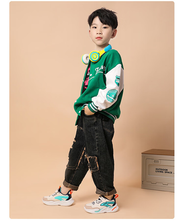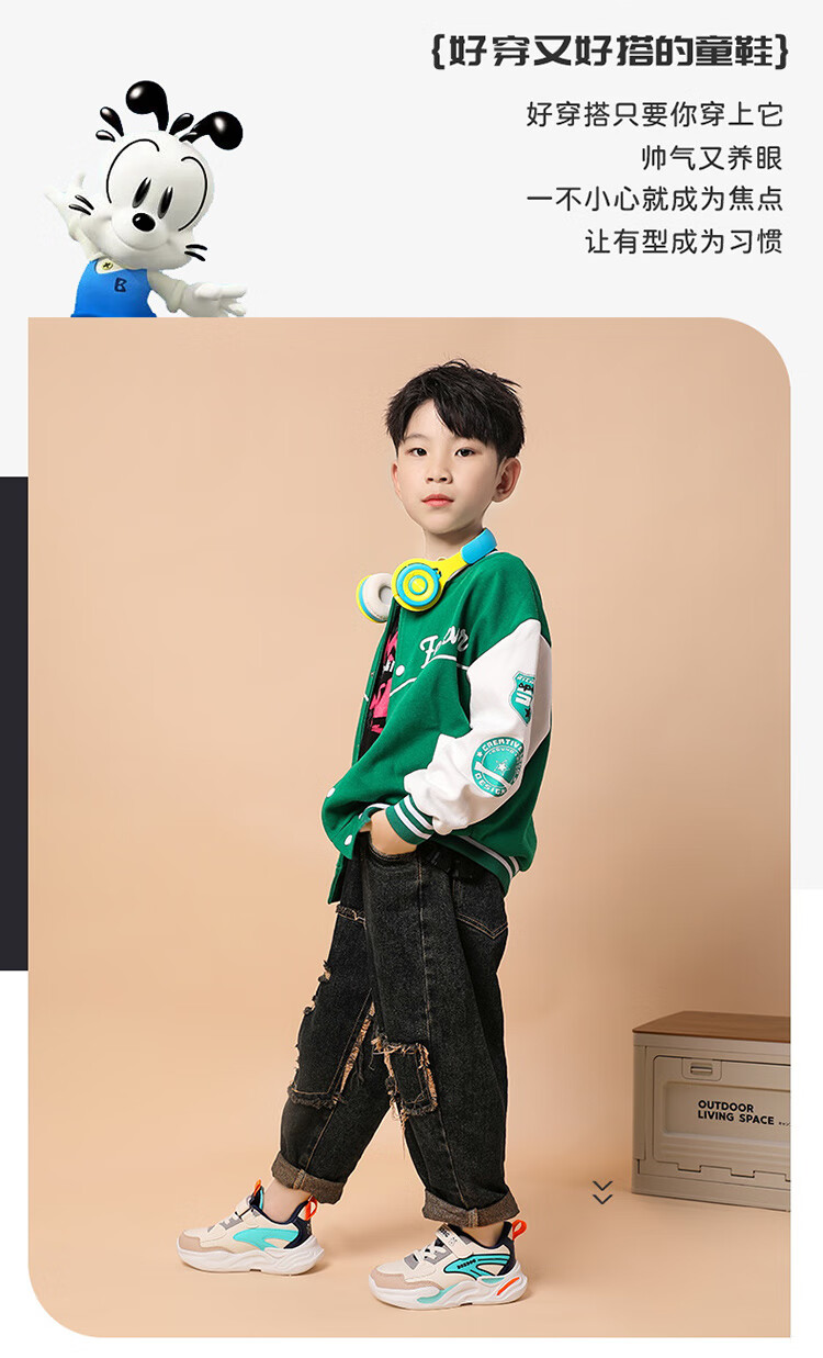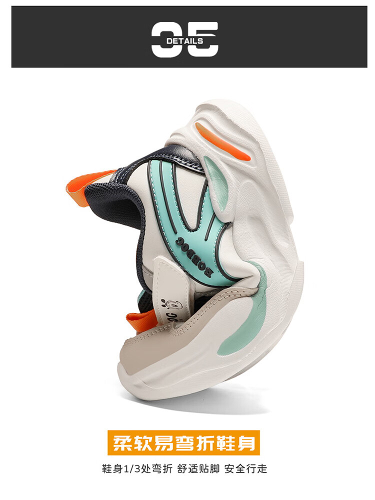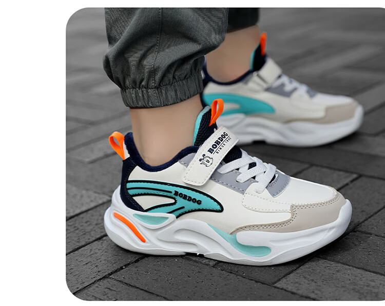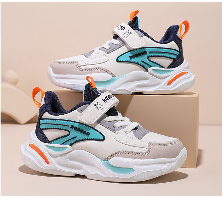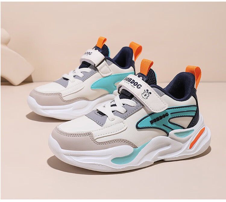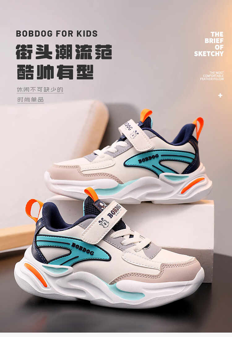Babu Dou children's cotton shoes with velvet to keep warm in winter, boys and girls sports shoes, leather waterproof student running shoes, 2 cotton, dark blue, velvet in winter, 34 (inner length 22.0cm)