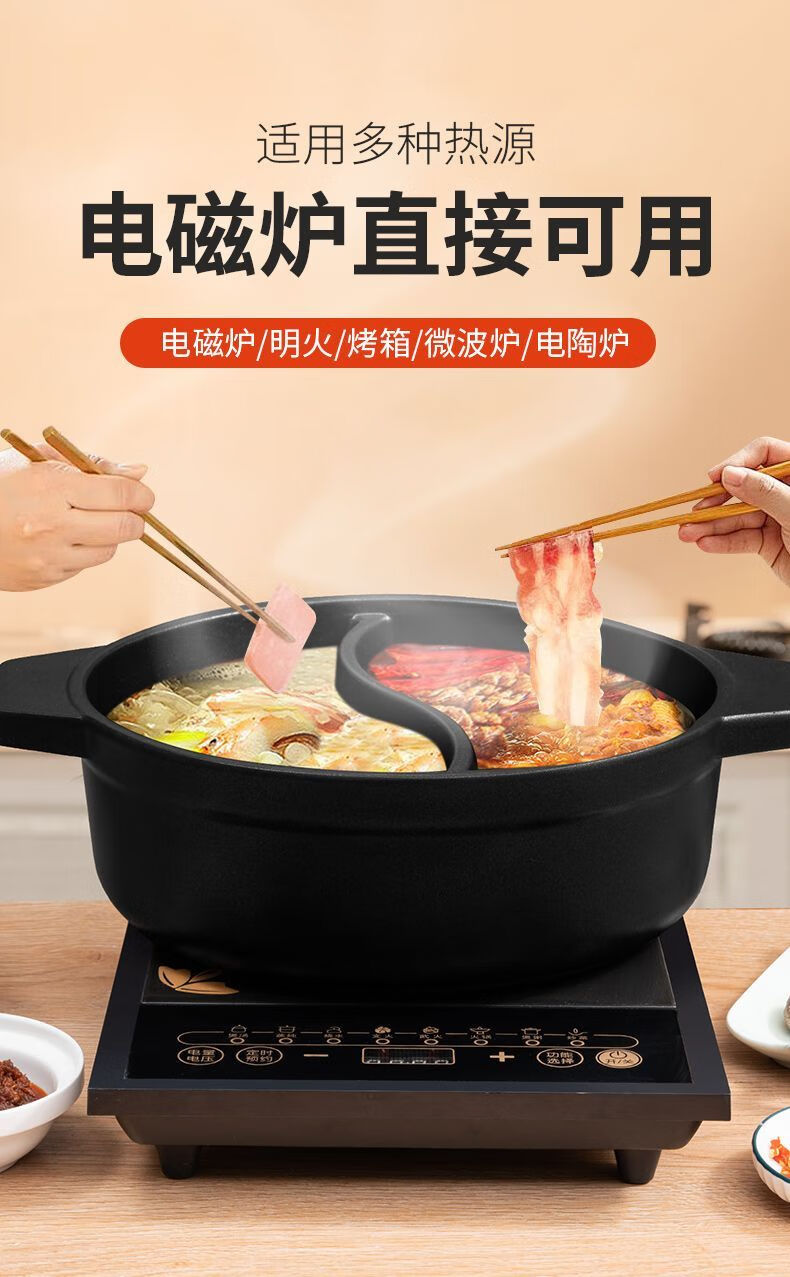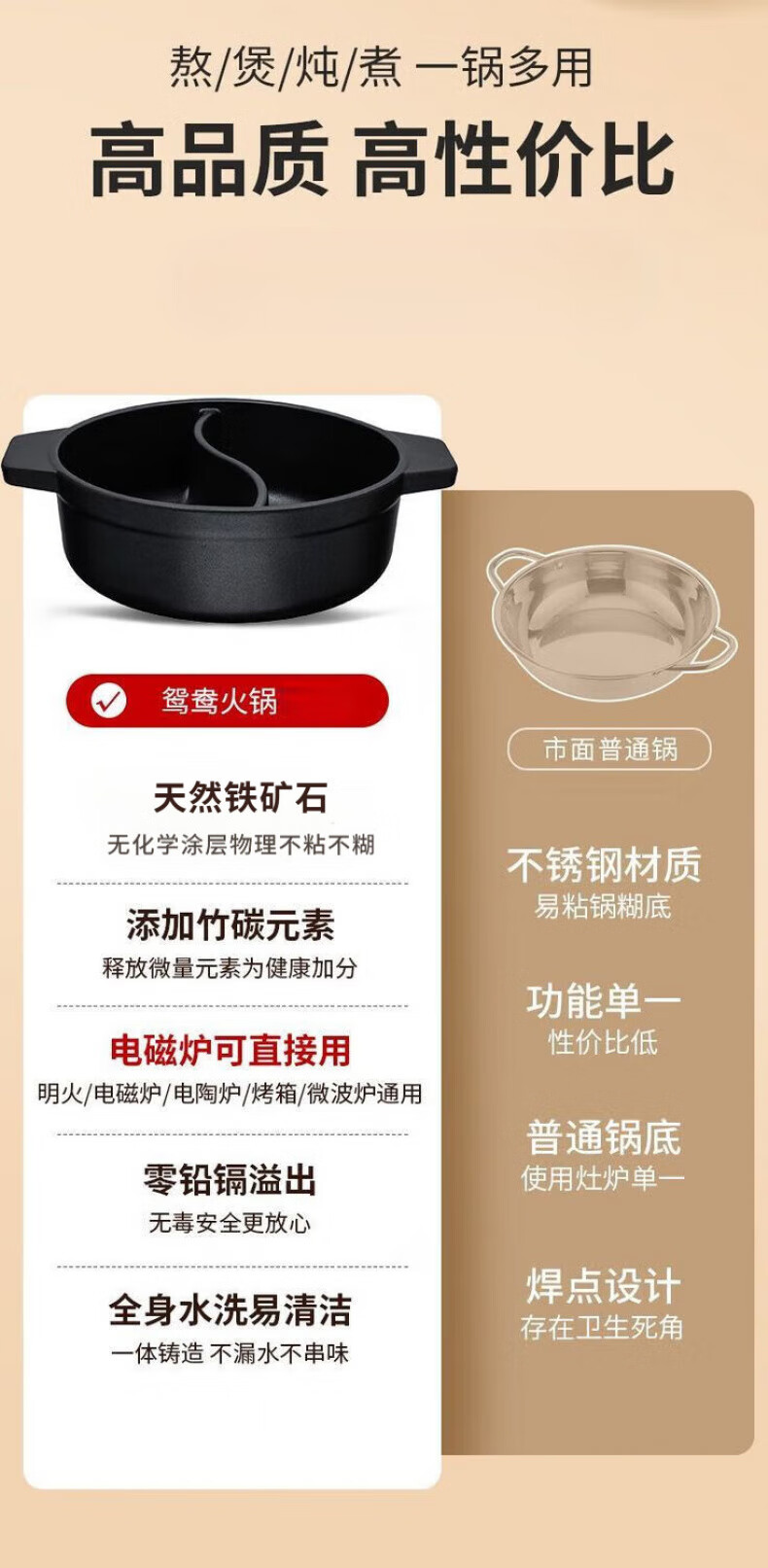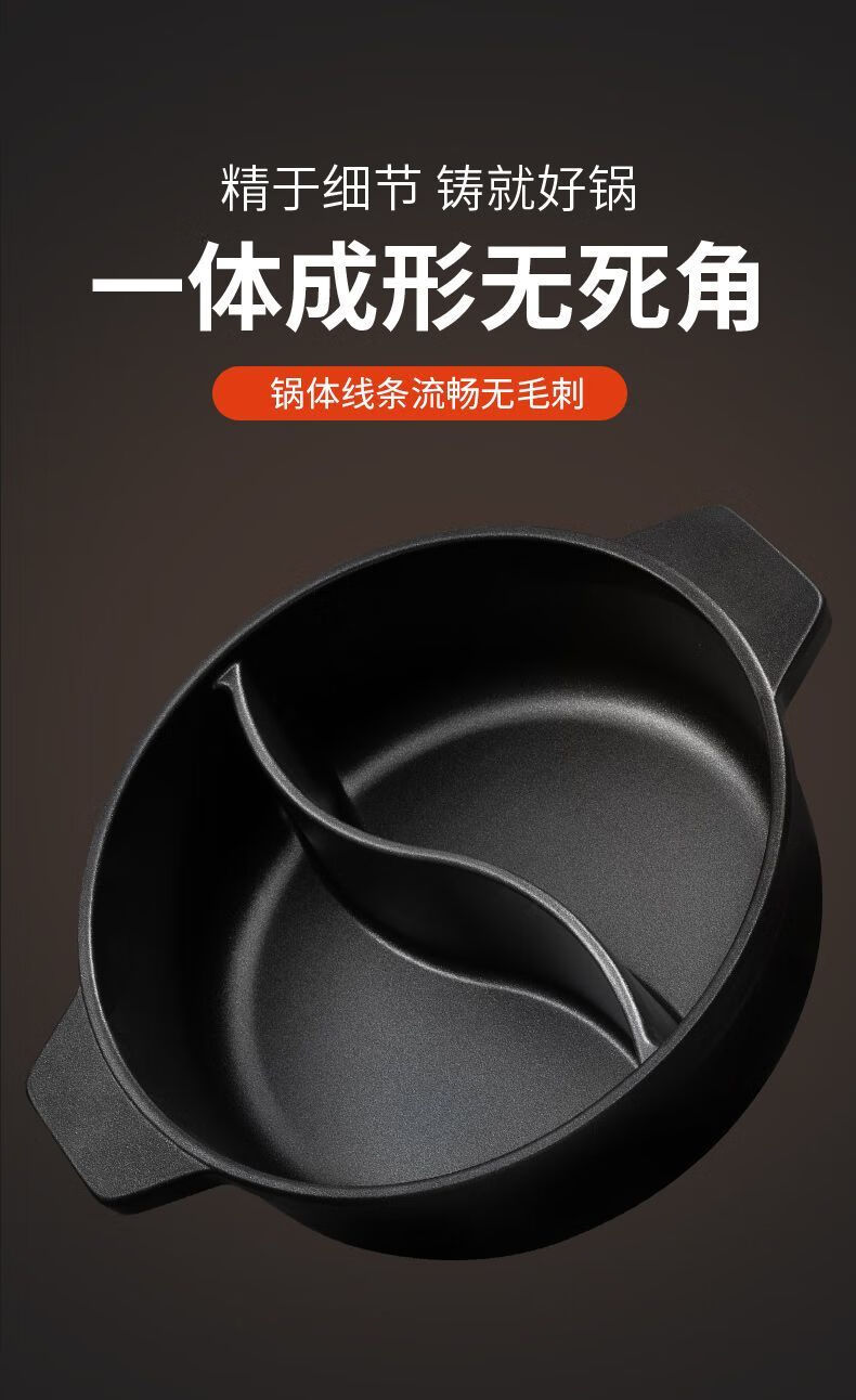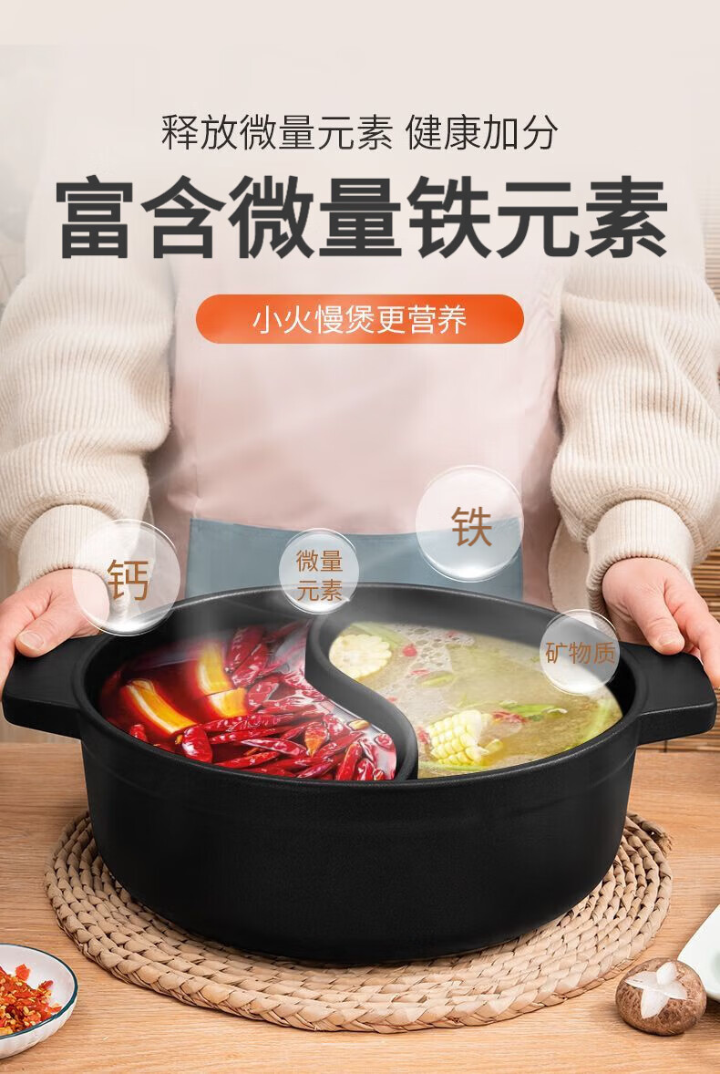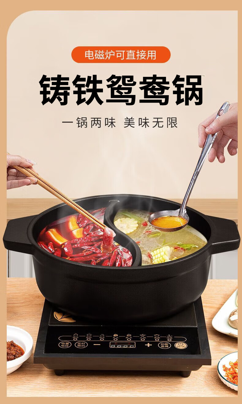Olla caliente de pato mandarín de hierro fundido Jingyan, olla especial integrada sin recubrimiento para caldera y estufa shabu-shabu doméstica de gran capacidad, universal y sin olor Olla de pato mandarín de hierro fundido sin recubrimiento adecuada para 3-6 personas Olla antidesbordamiento sin olor de 30 cm
