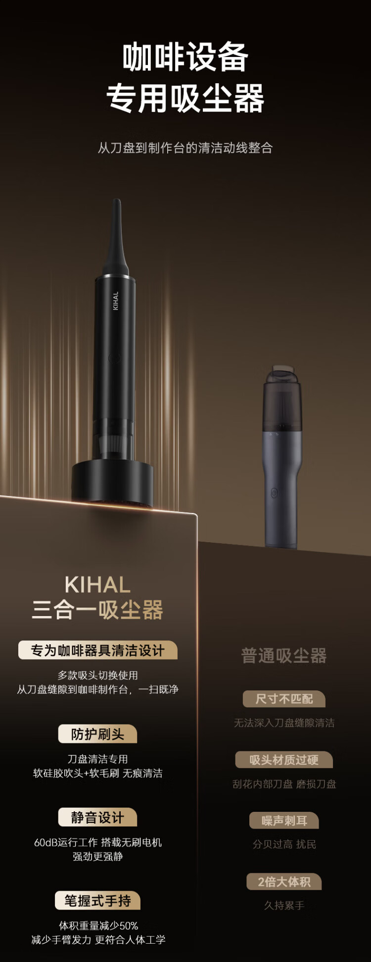 KIHAL coffee vacuum cleaner bar coffee machine cleaning powder suction machine mini small wireless charging desktop powder suction machine coffee vacuum cleaner XCQ01