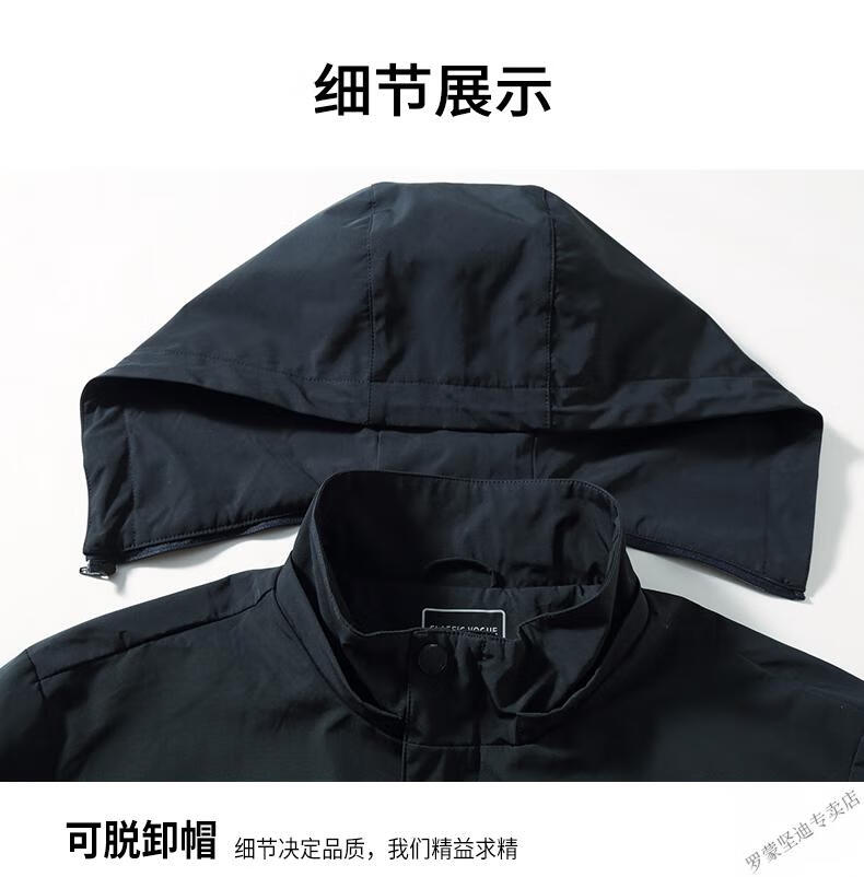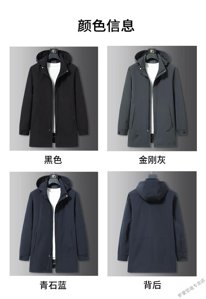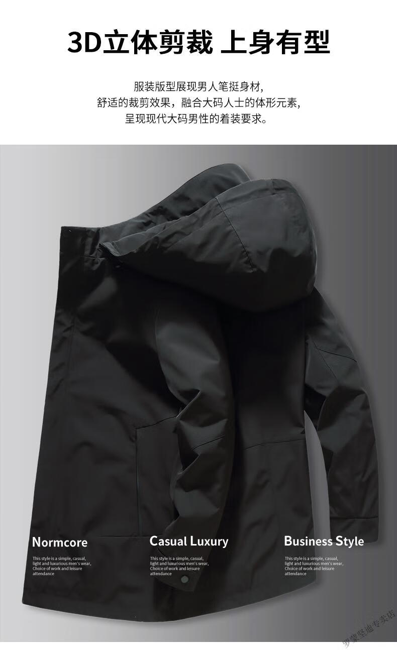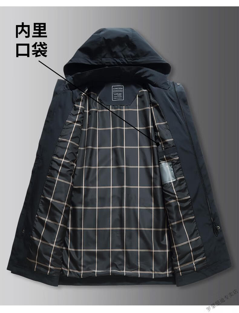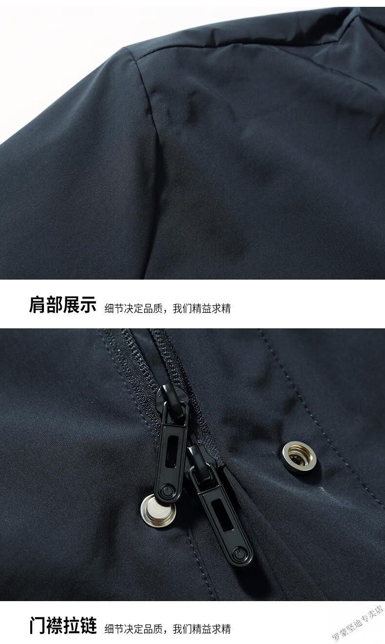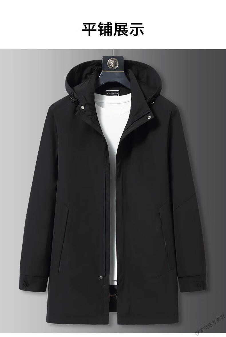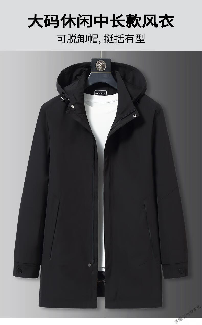 ROMON large size men's parka windbreaker men's mid-length spring and autumn fat man plus fat enlarged loose solid color windproof coat black 6XL