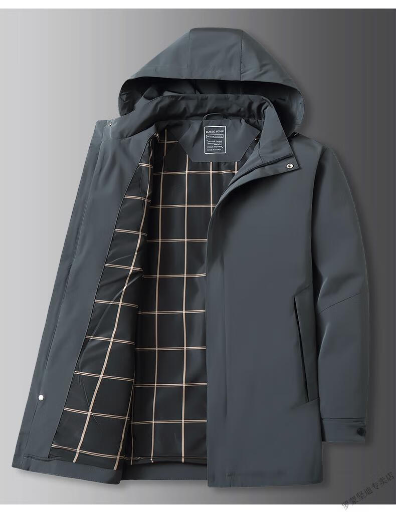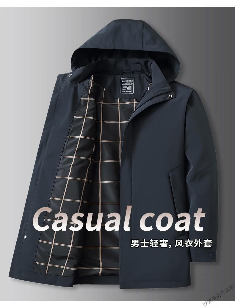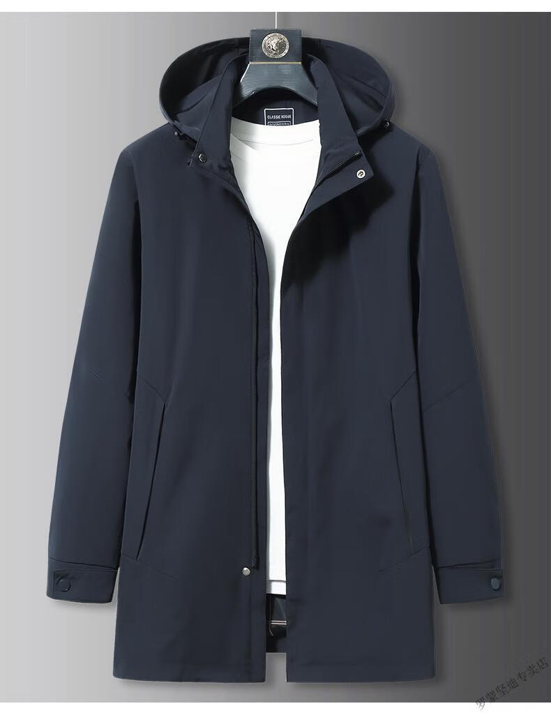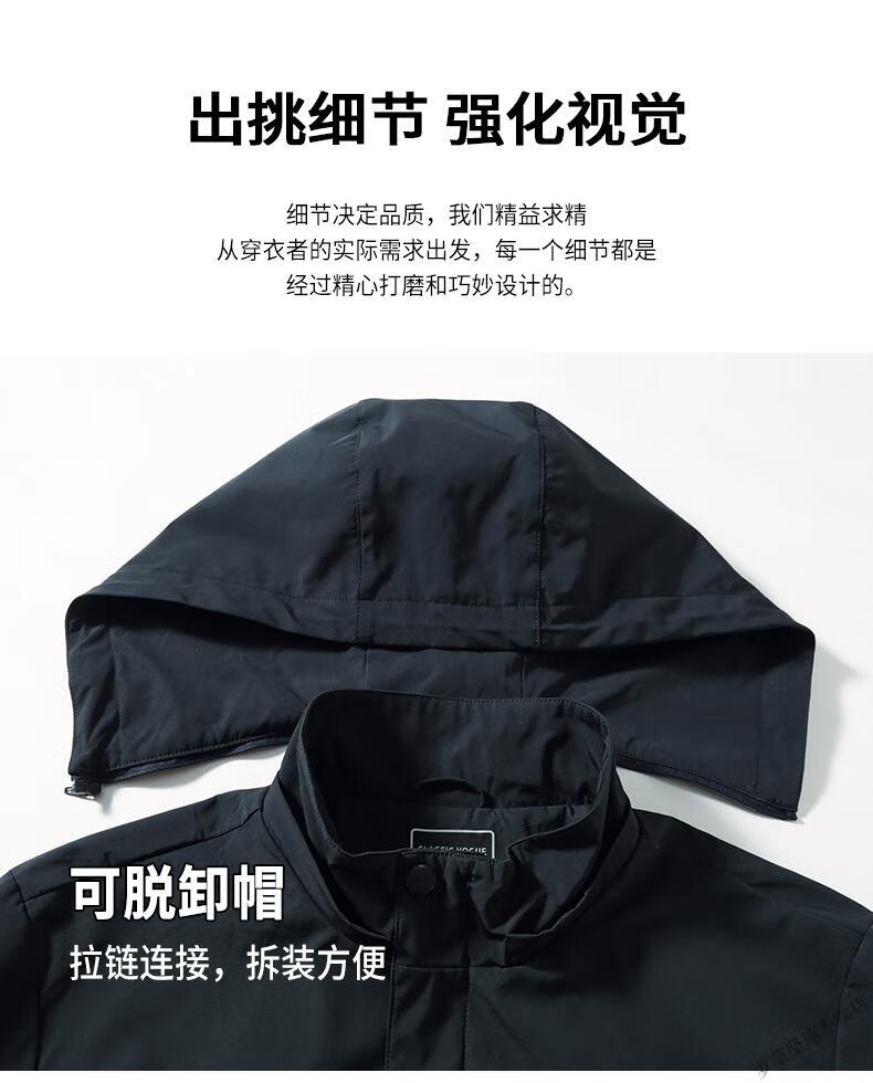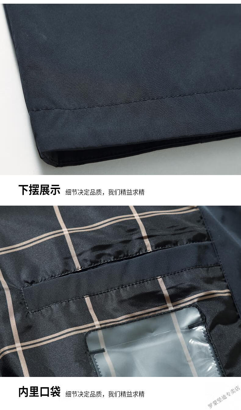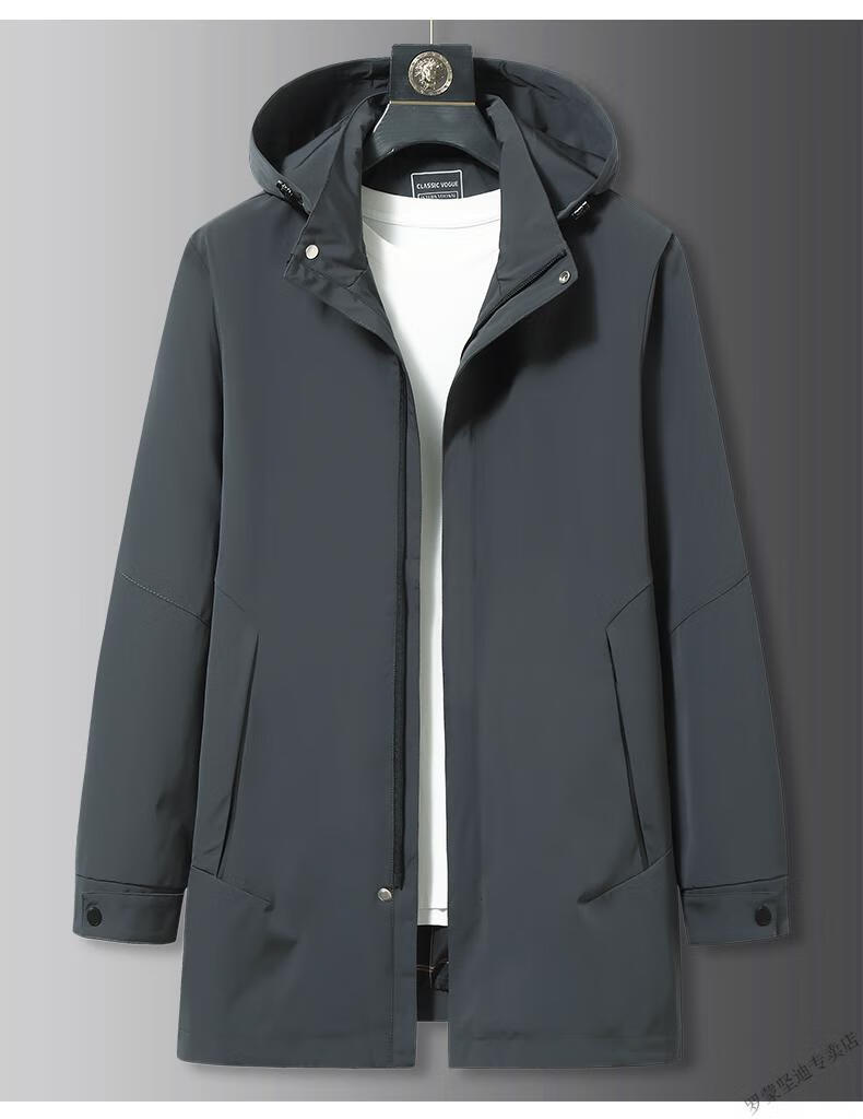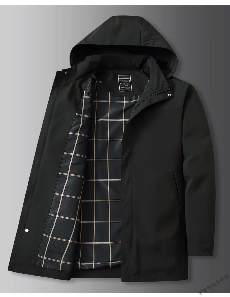 ROMON large size men's parka windbreaker men's mid-length spring and autumn fat man plus fat enlarged loose solid color windproof coat black 6XL