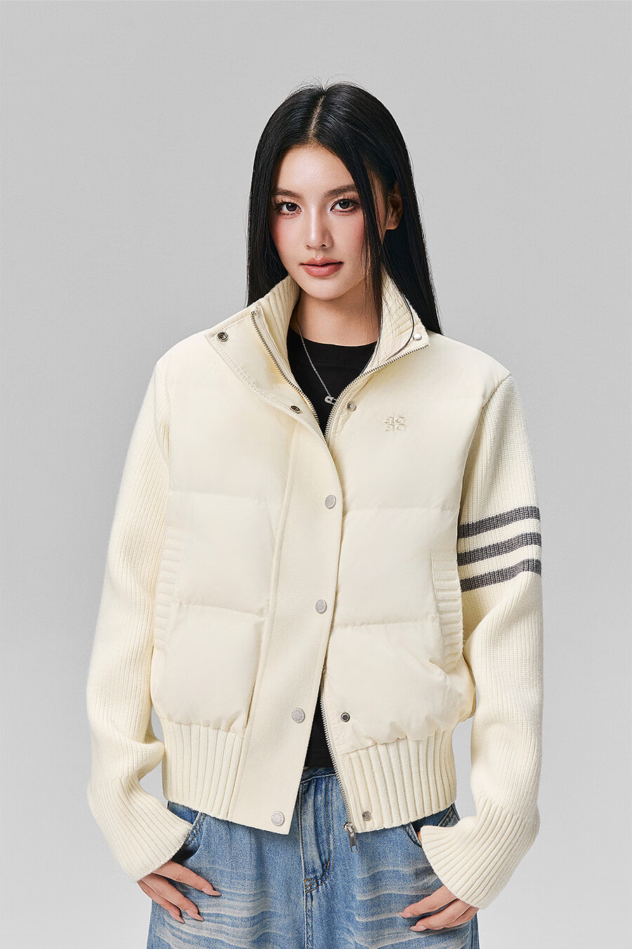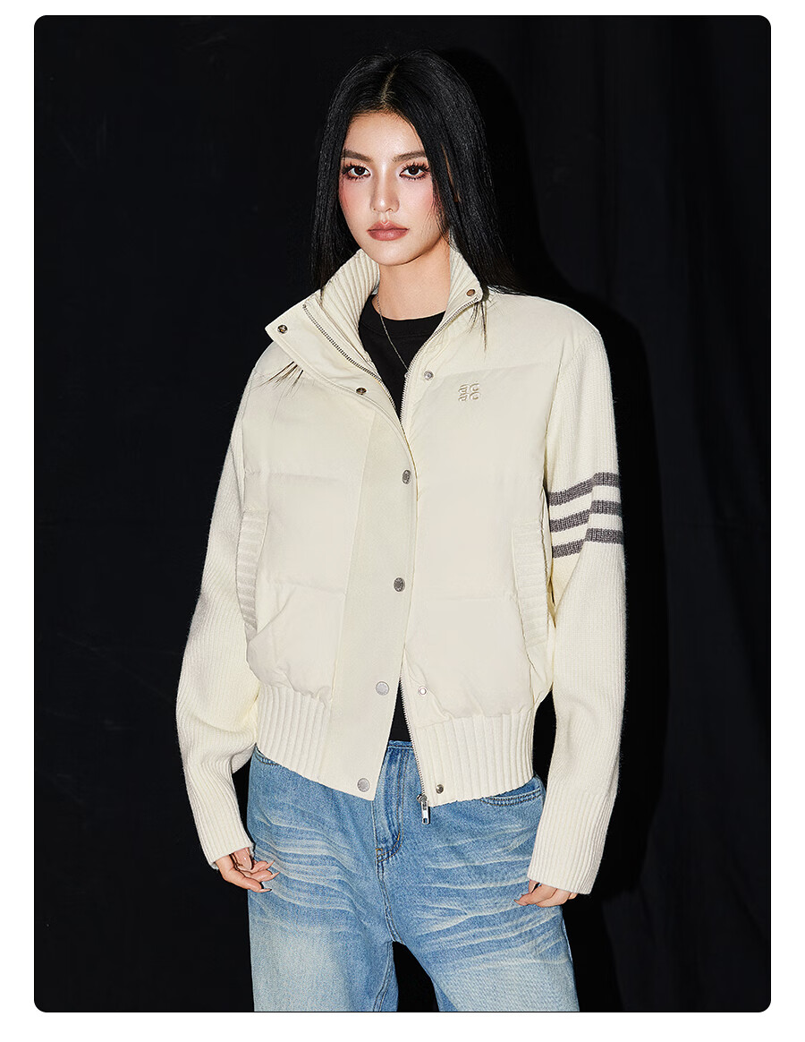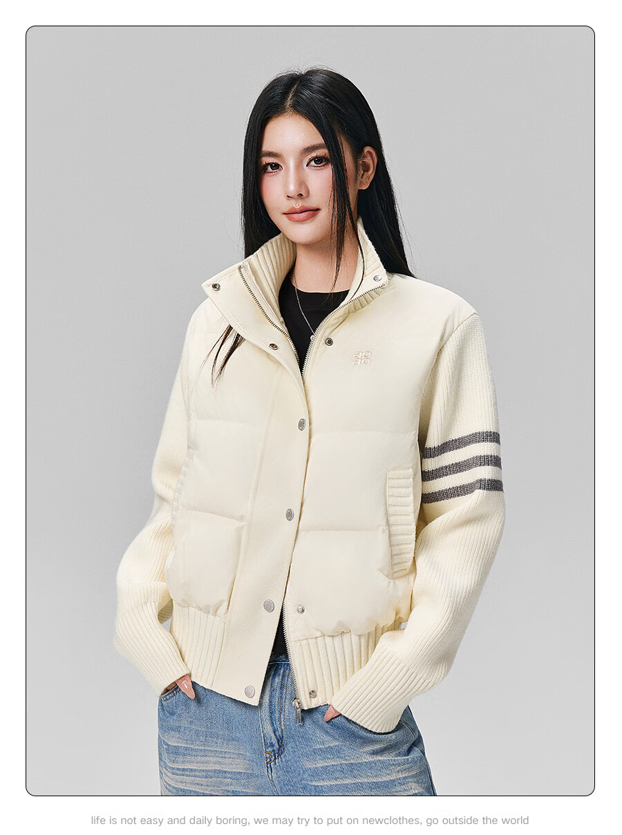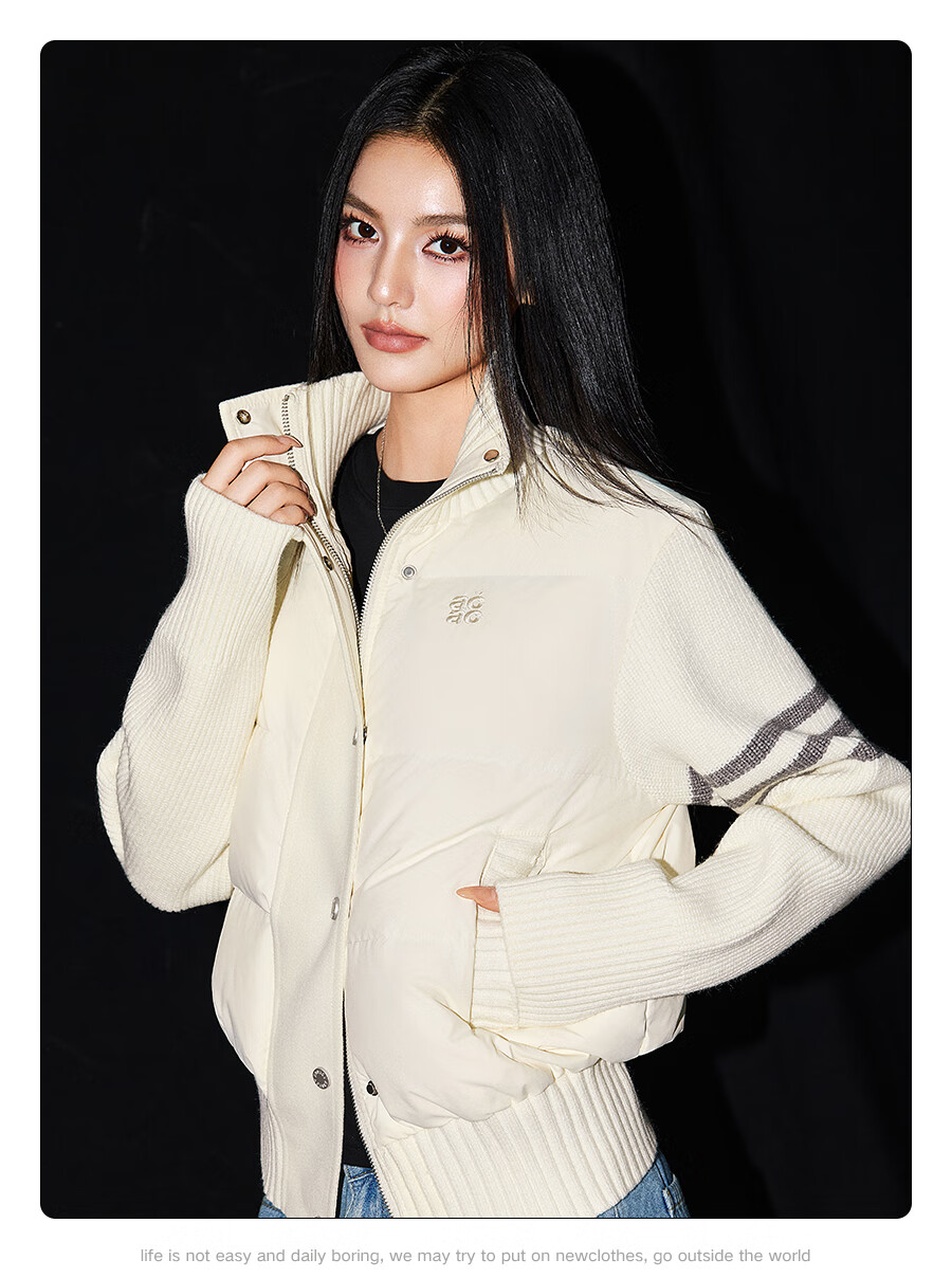 A CHOCK Achock official store acac series personalized design knitted sleeve down jacket winter stand-up collar warm bread jacket, apricot color M