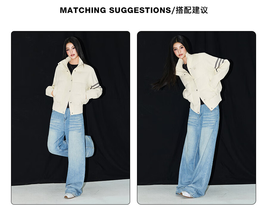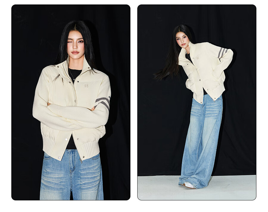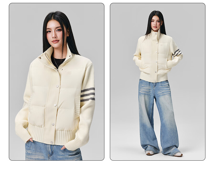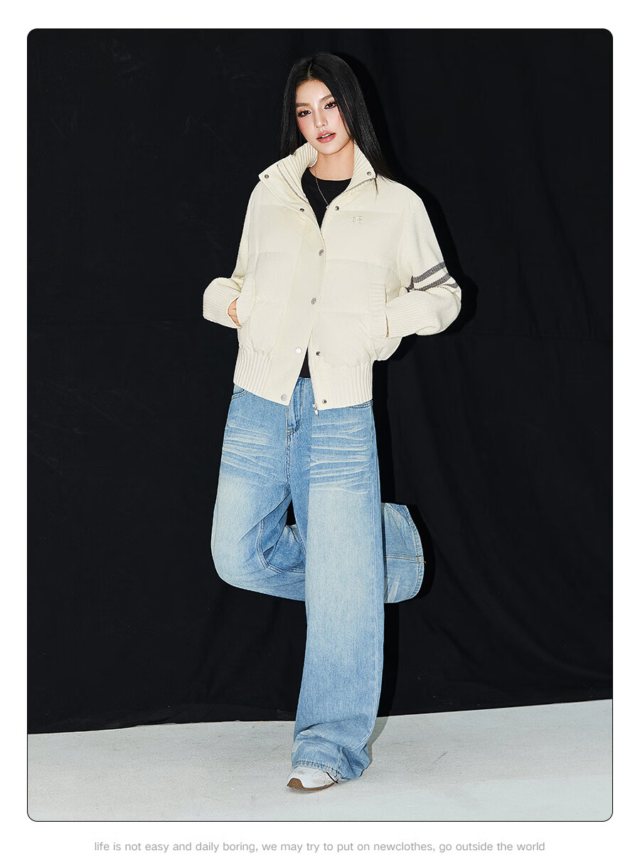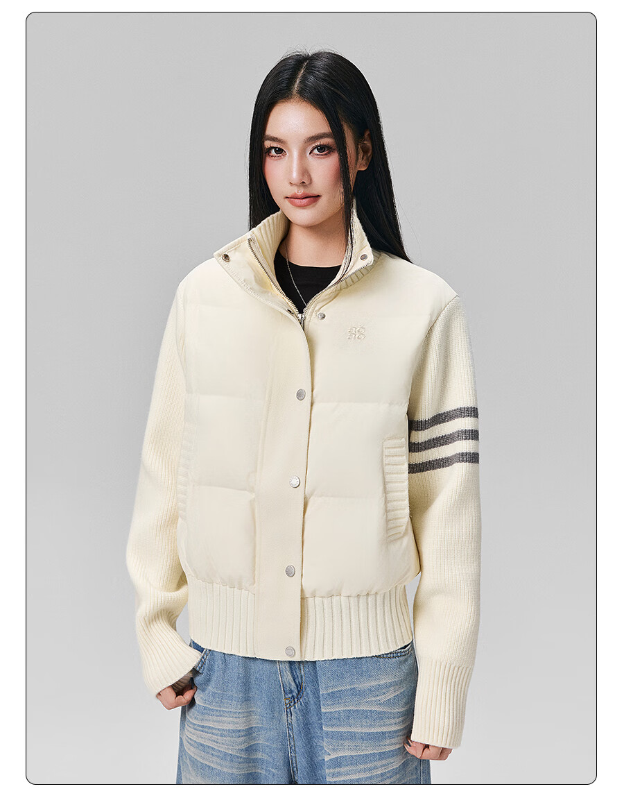 A CHOCK Achock official store acac series personalized design knitted sleeve down jacket winter stand-up collar warm bread jacket, apricot color M