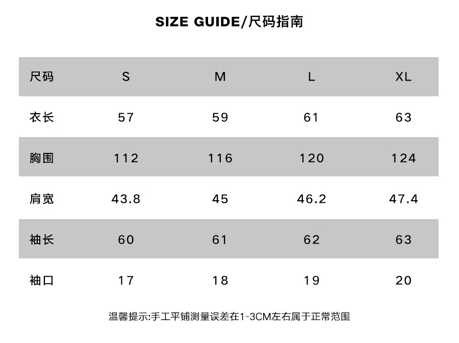 China (cm) 165 / 88-90 170 / 96-98 175 / 108-110 180 / 118-122 185 / 126-130