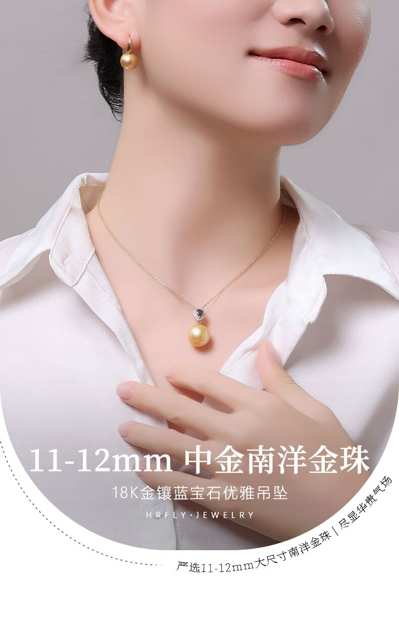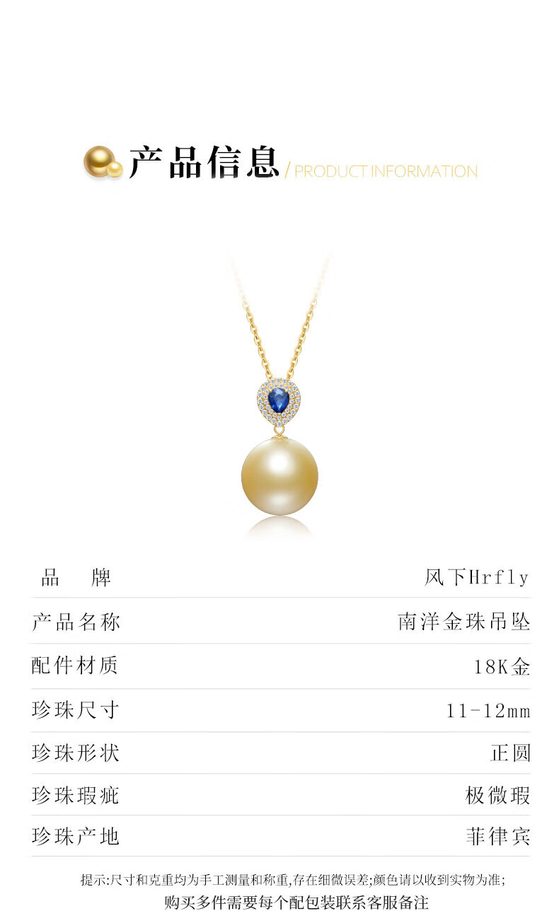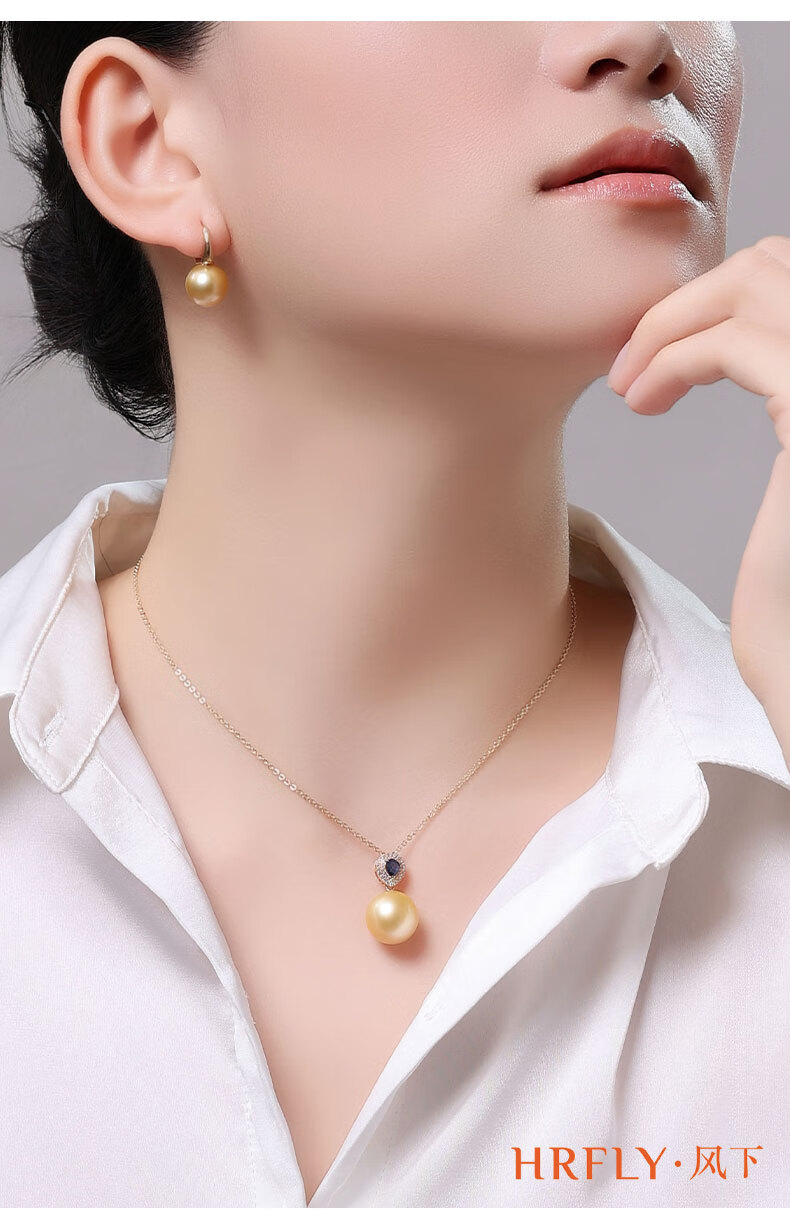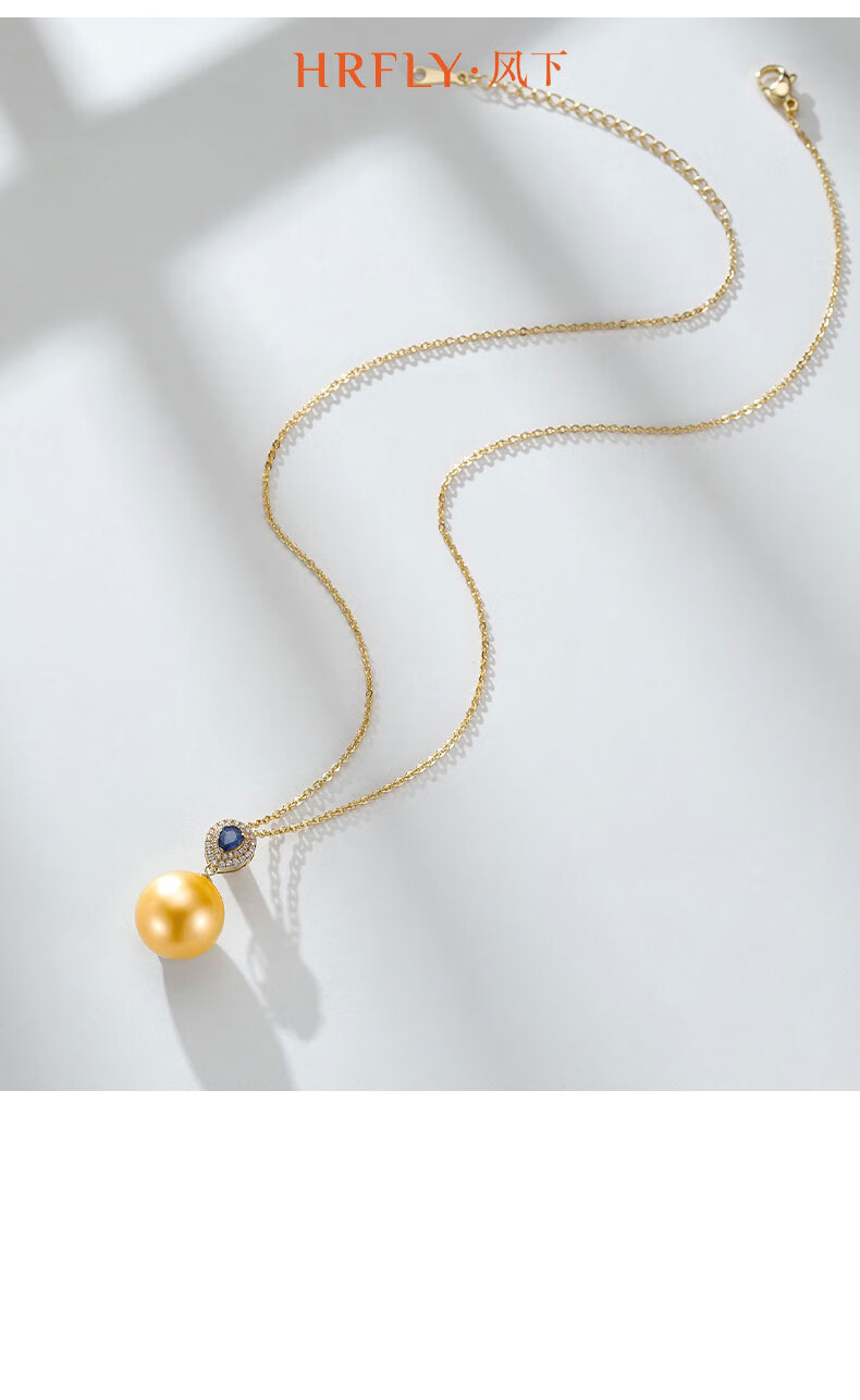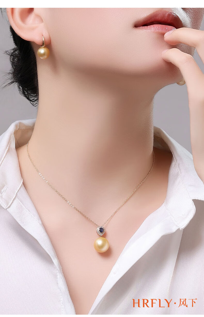 South Sea gold pearls and seawater pearl pendant under the wind 18K gold sapphire diamond pendant round strong light thick gold necklace 12-13mm