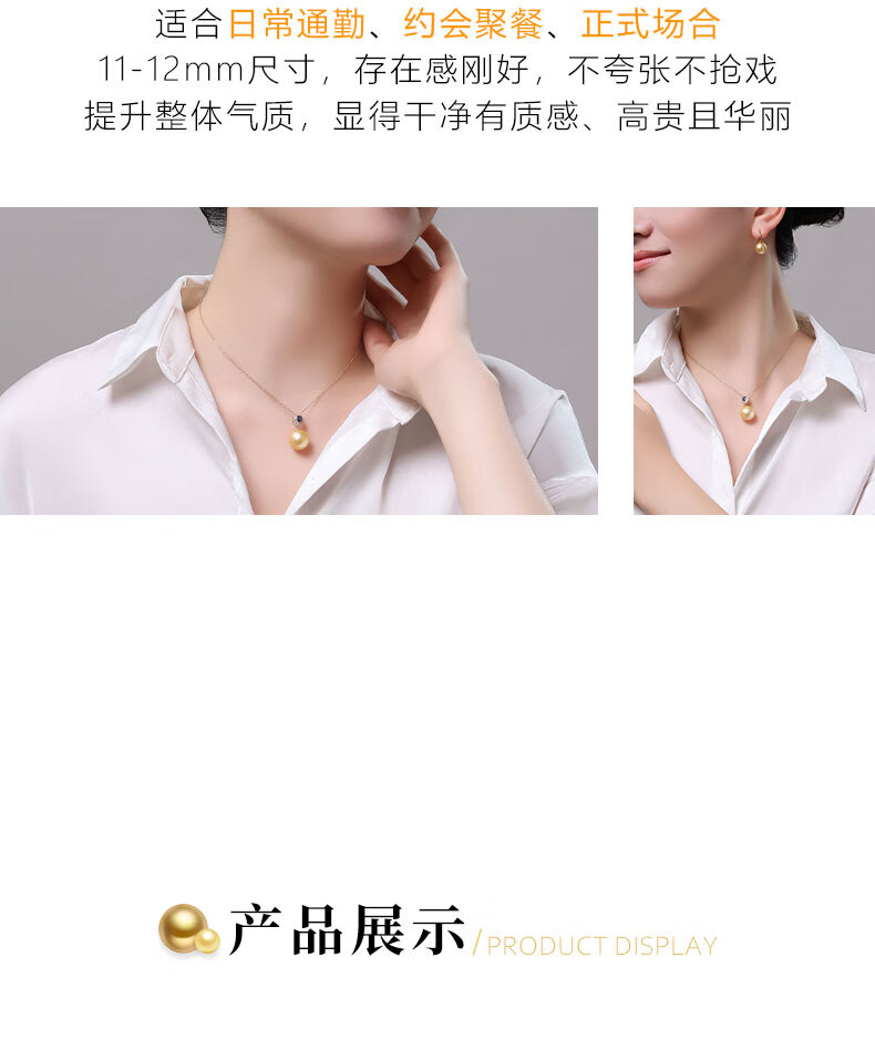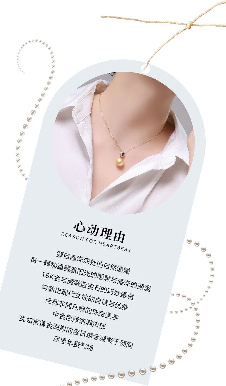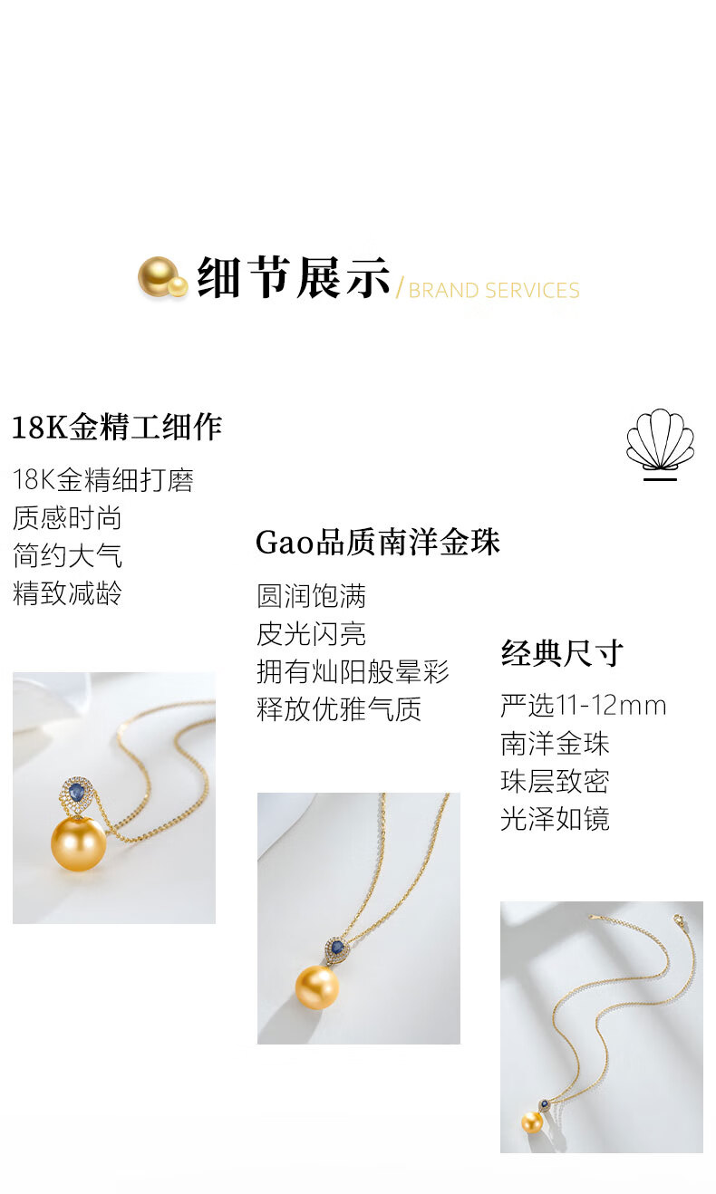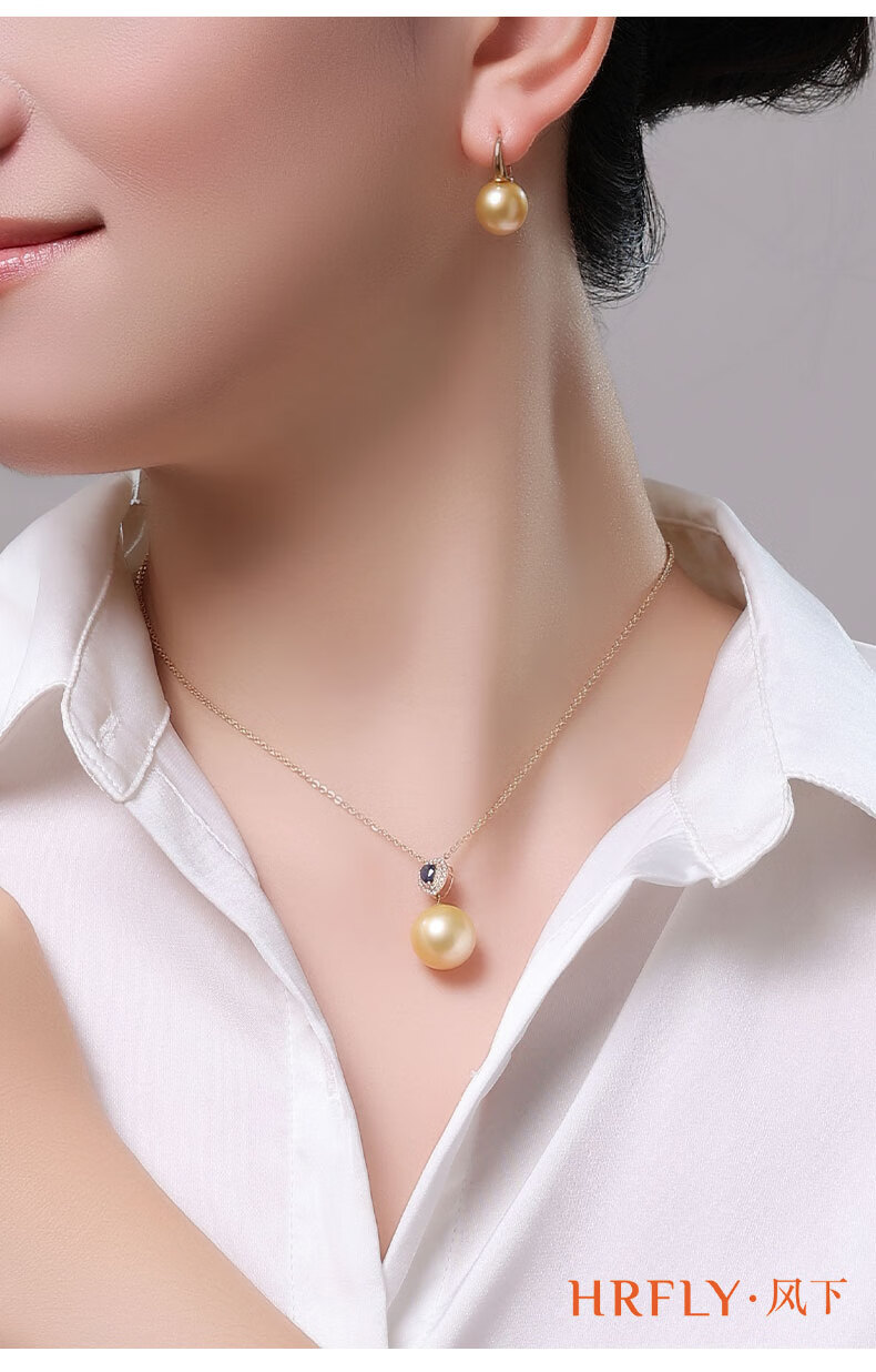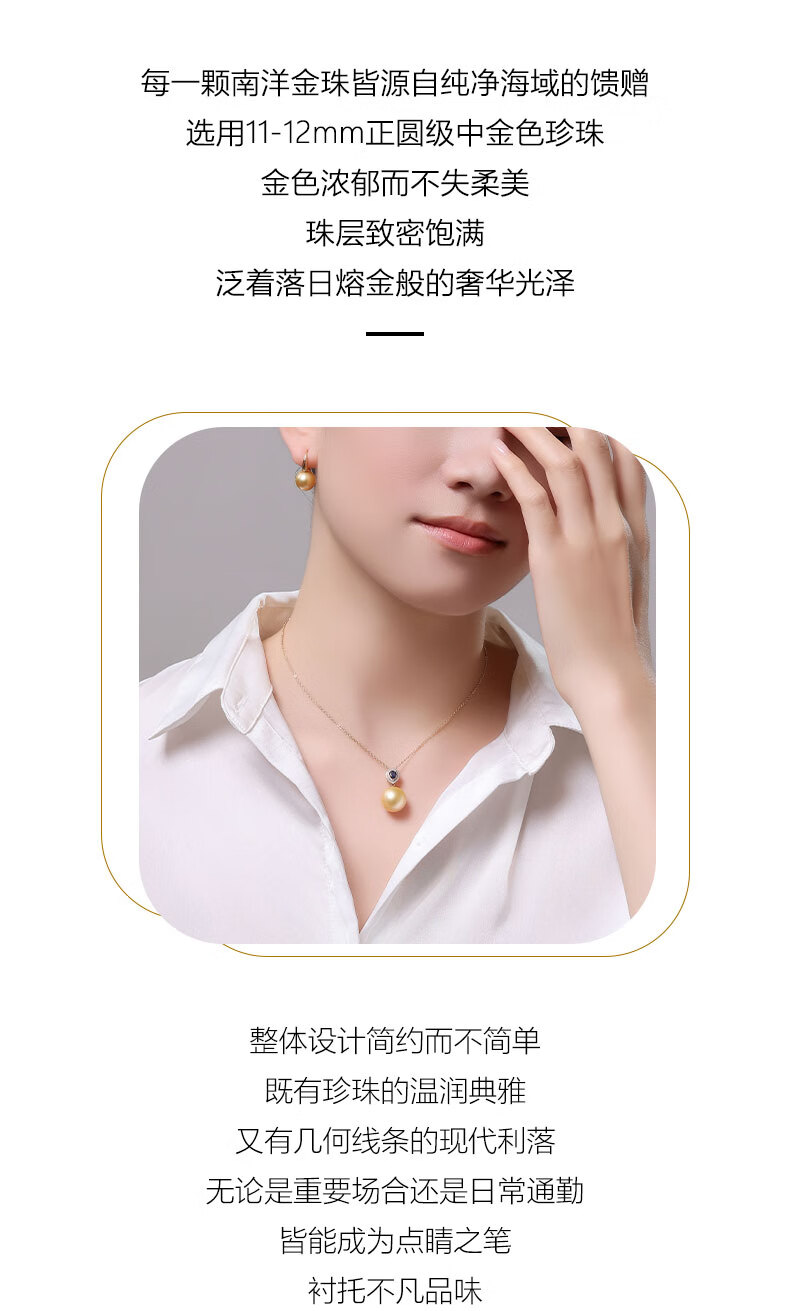 South Sea gold pearls and seawater pearl pendant under the wind 18K gold sapphire diamond pendant round strong light thick gold necklace 12-13mm