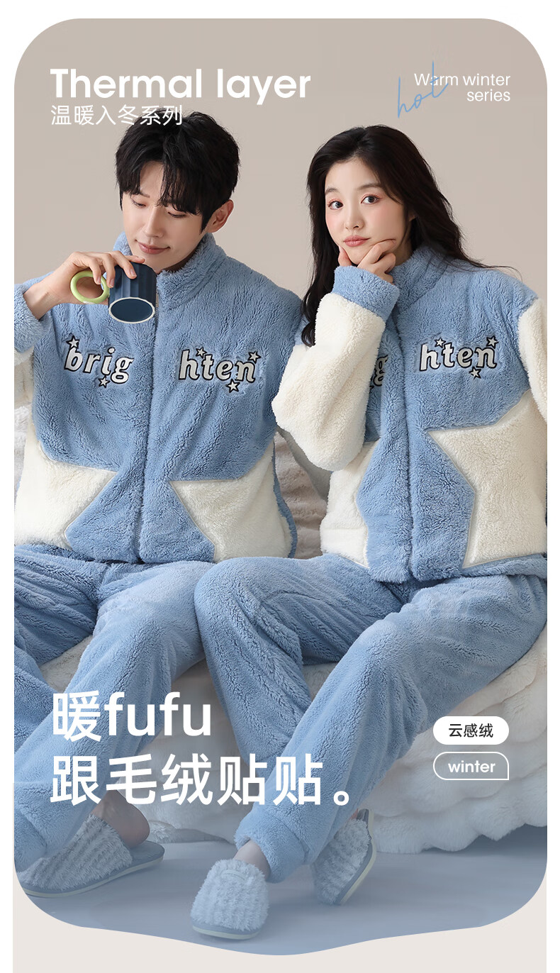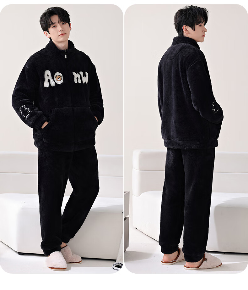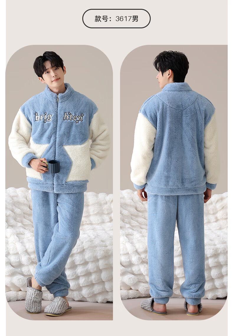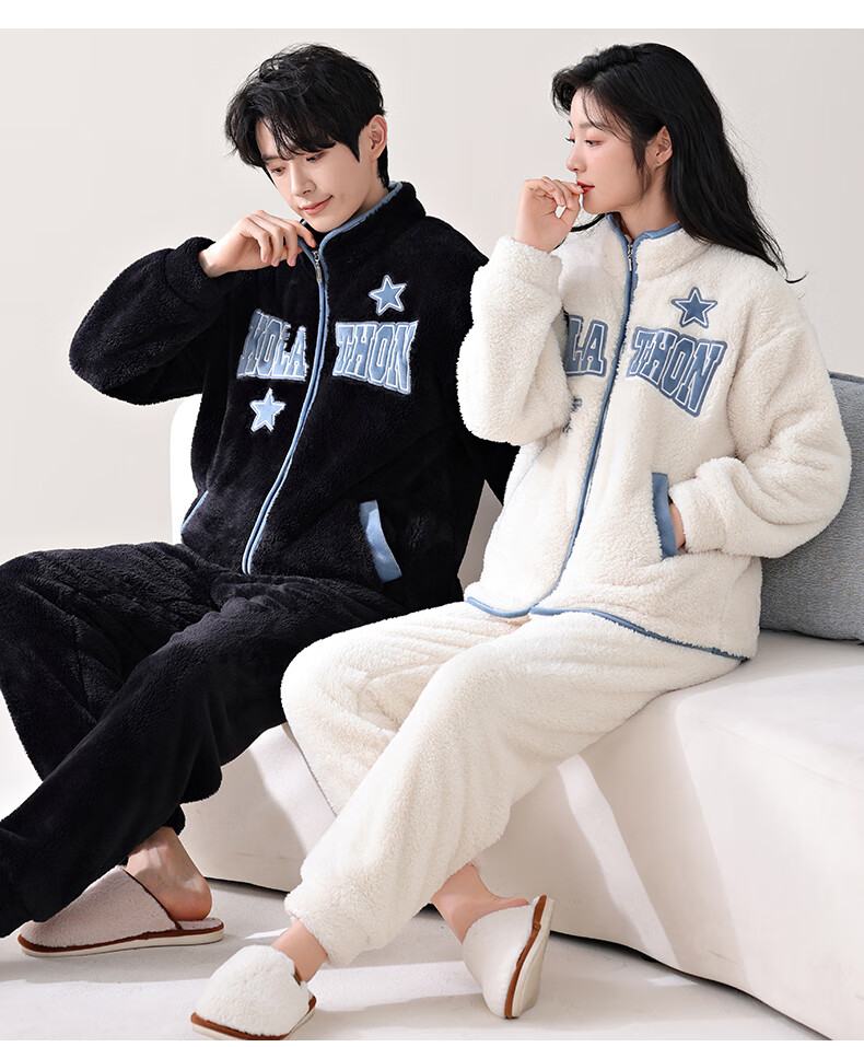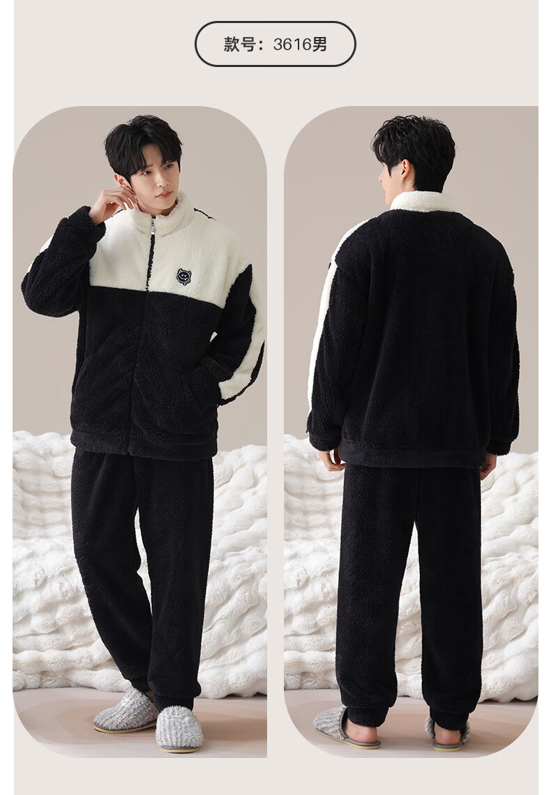 LangSha Couple Pajamas Two sets of price Winter coral velvet warm plus velvet suit casual cardigan can be worn as home clothes 3617 couple M female + L male