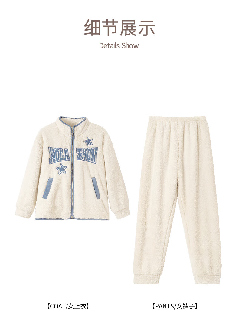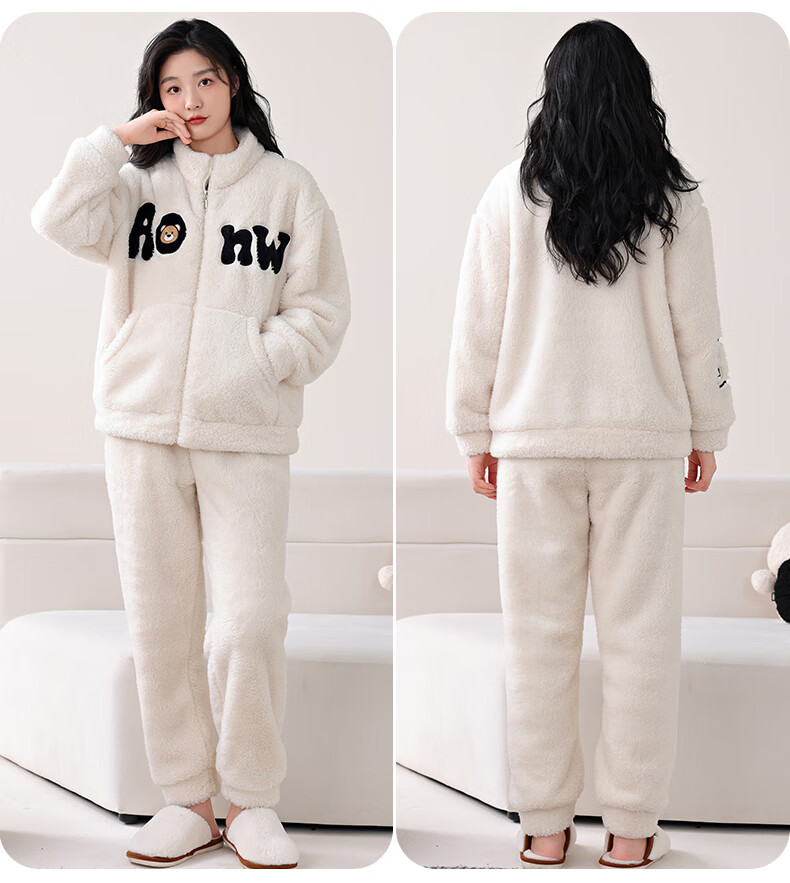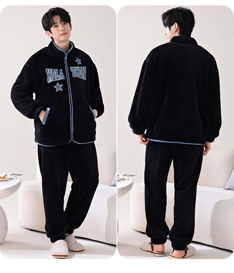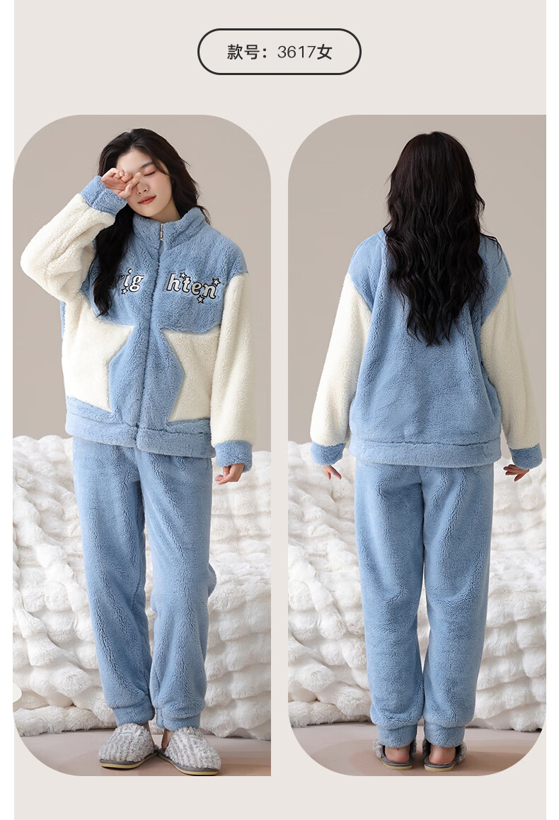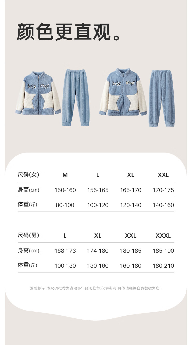 LangSha Couple Pajamas Two sets of price Winter coral velvet warm plus velvet suit casual cardigan can be worn as home clothes 3617 couple M female + L male