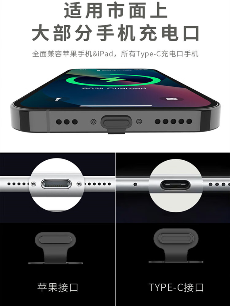 Mu Nian is suitable for Xiaomi 17ProMax dustproof plug plug Huawei mobile phone charging port universal mate60 Honor OPPOtypec vivo Xiaomi iqoo tail plug Huawei typeC port black 1