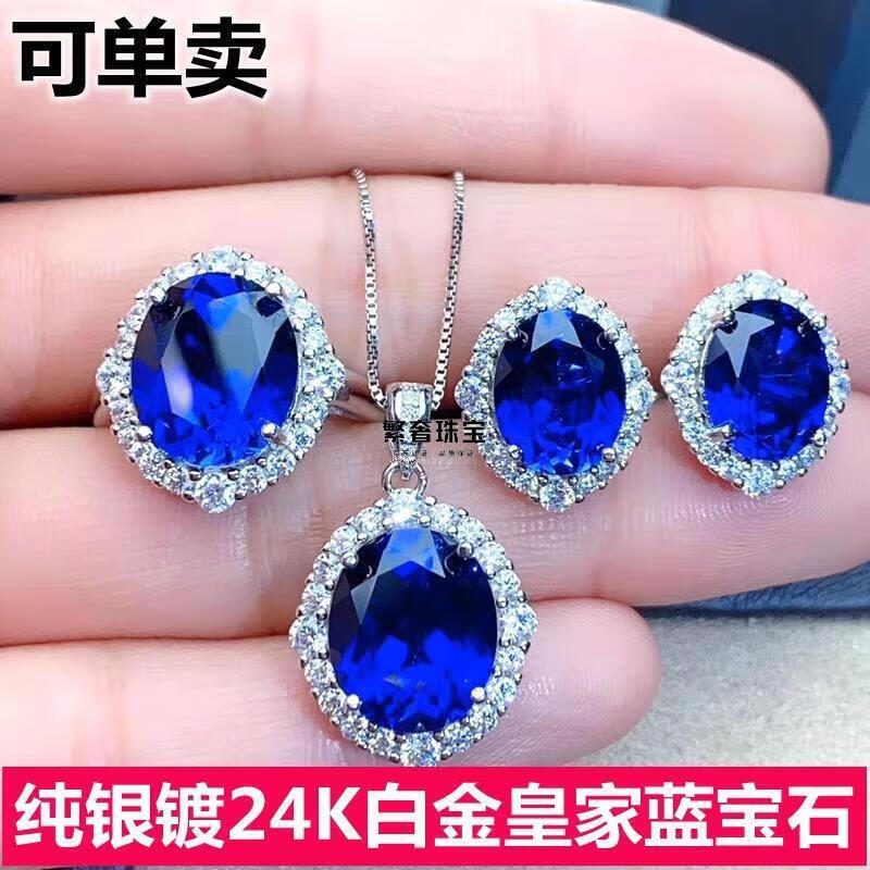 Keshan fine cut blue sapphire ring women's sterling silver tanzanite earrings plated with 18 blue pendants diy sense one pair of earrings/8X10MM