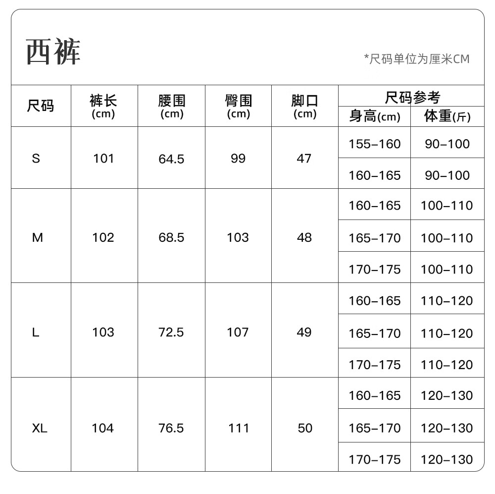 Outseam (cm) 99 cm 101.5 cm 104 cm 106.5 cm 109 cm