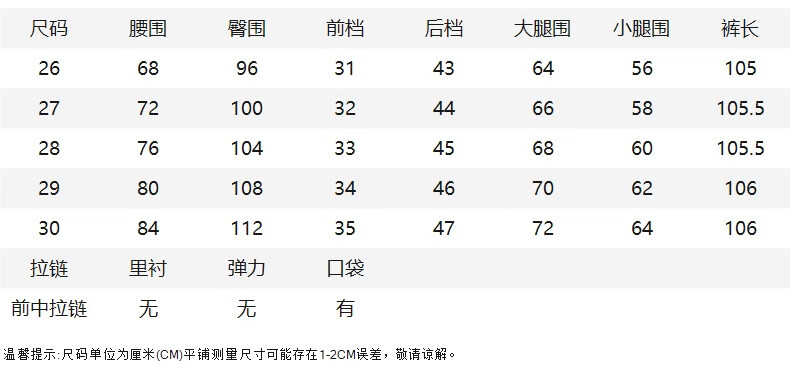 Outseam (cm) 99 cm 101.5 cm 104 cm 106.5 cm 109 cm