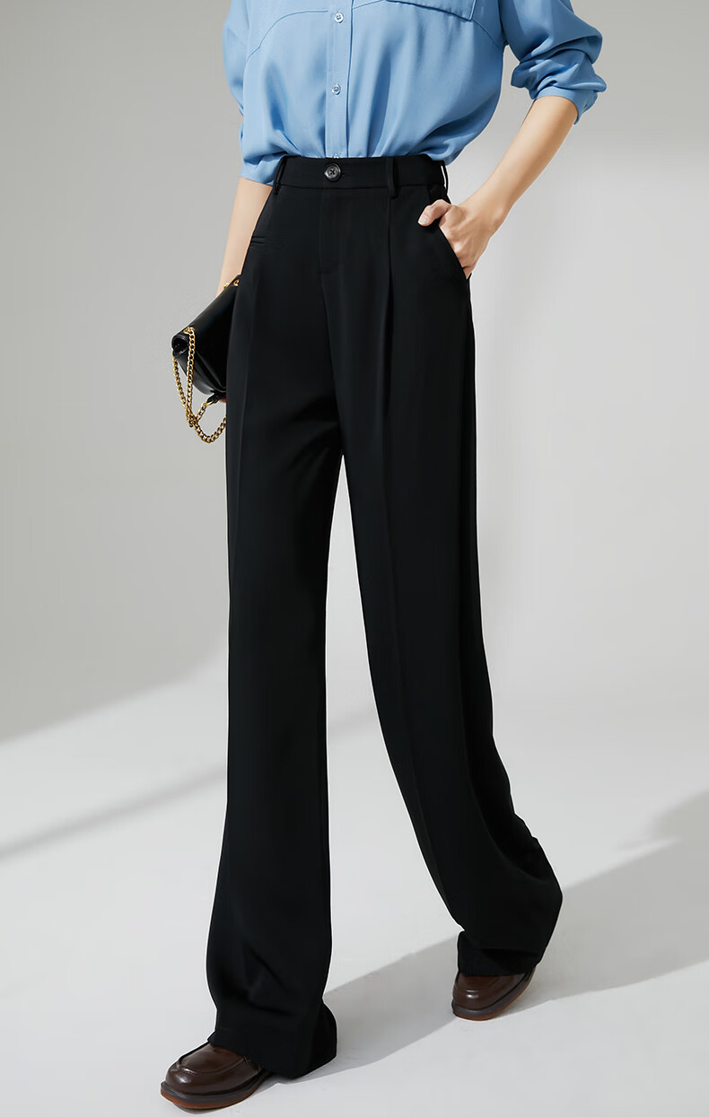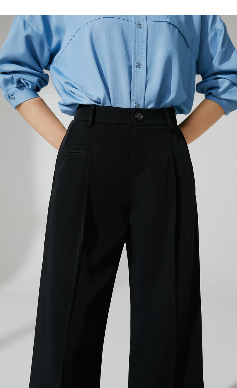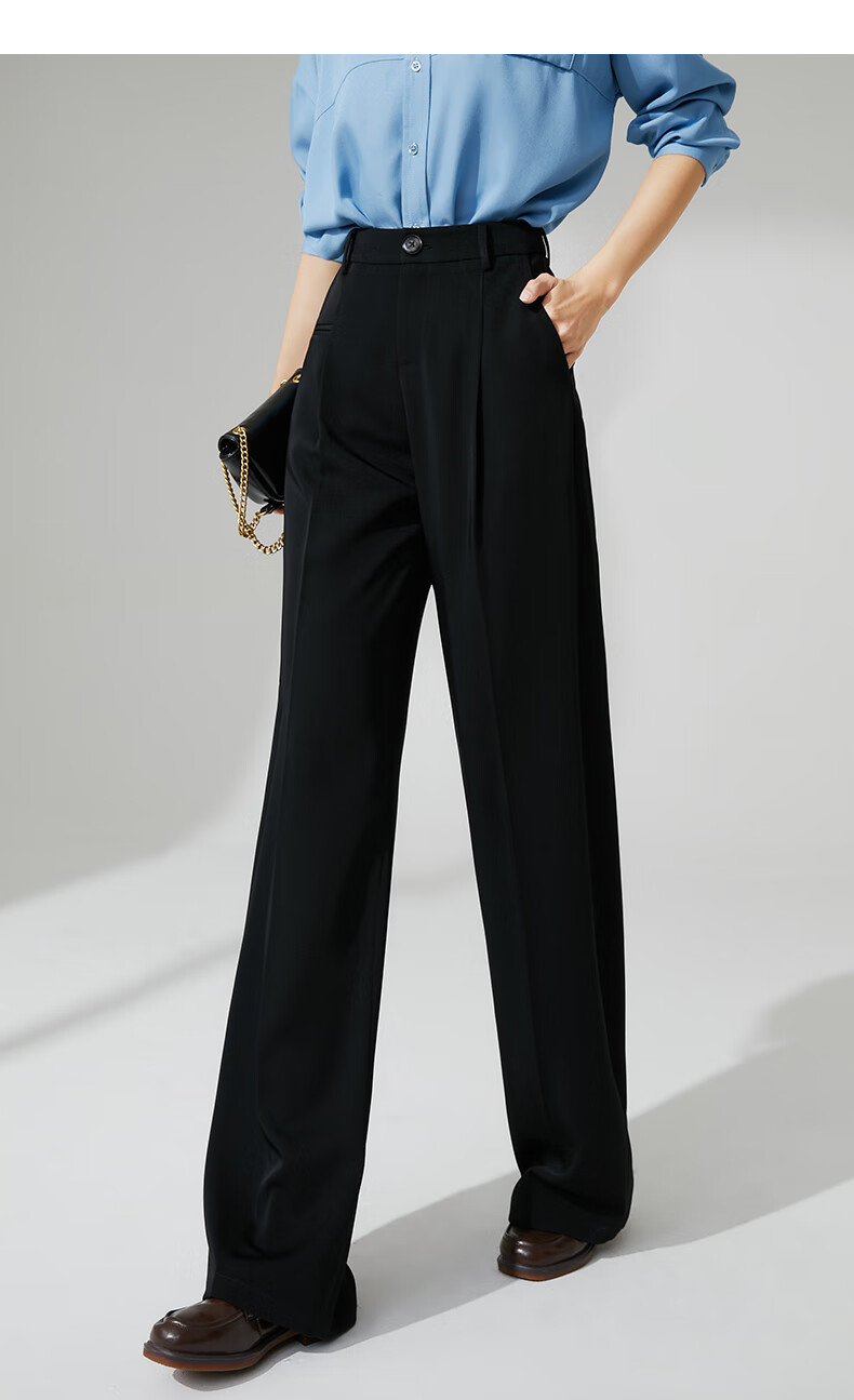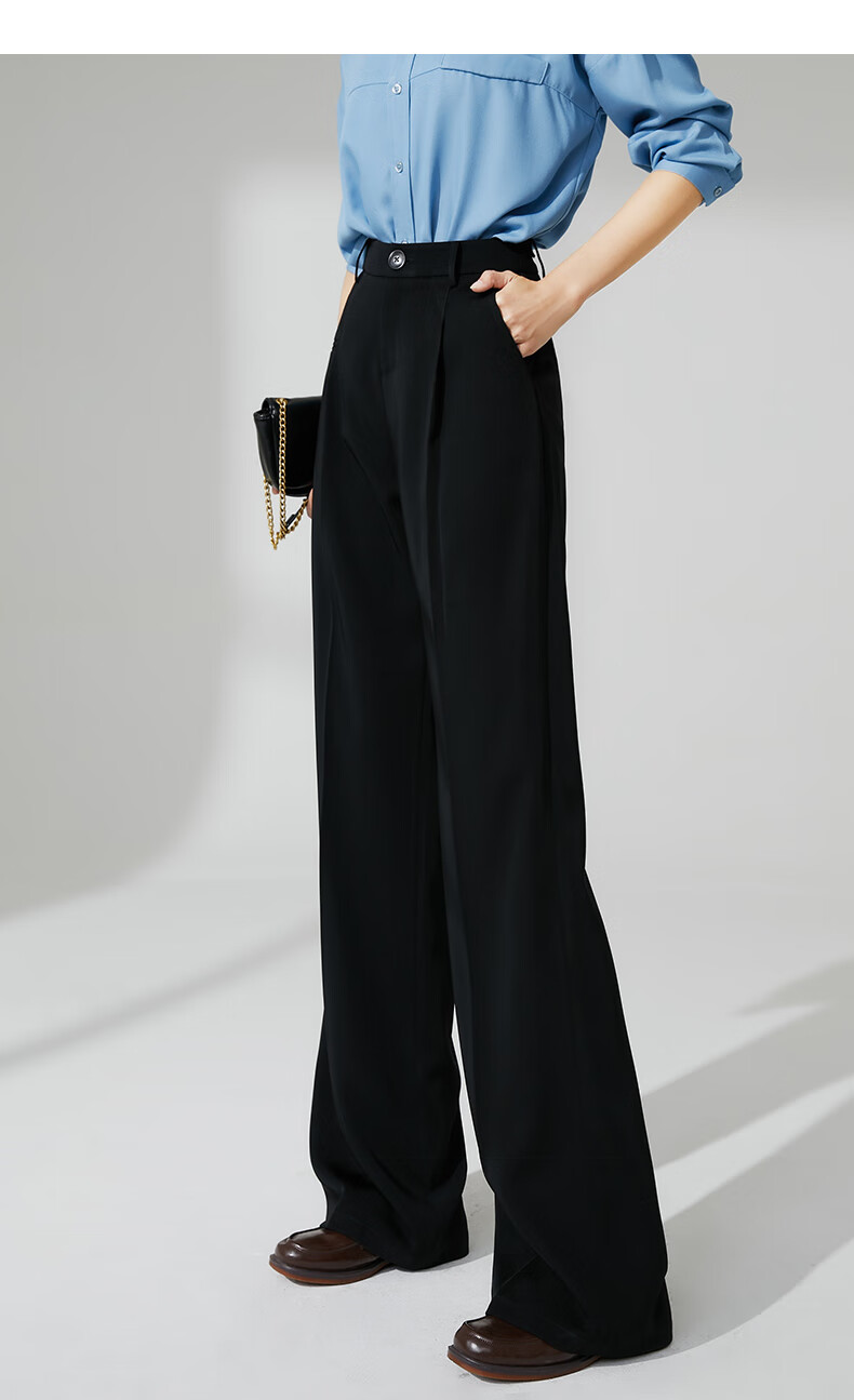 Late White New Product 2025 Autumn Versatile Commuting Pants Fashionable Simple High Waist Loose Solid Color Casual Pants Women Black 27