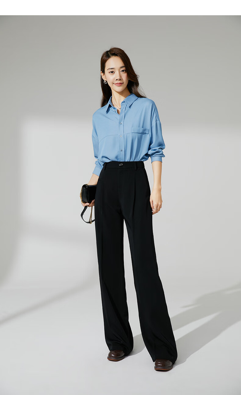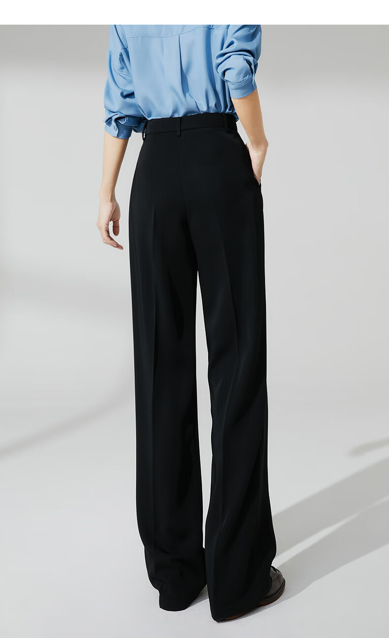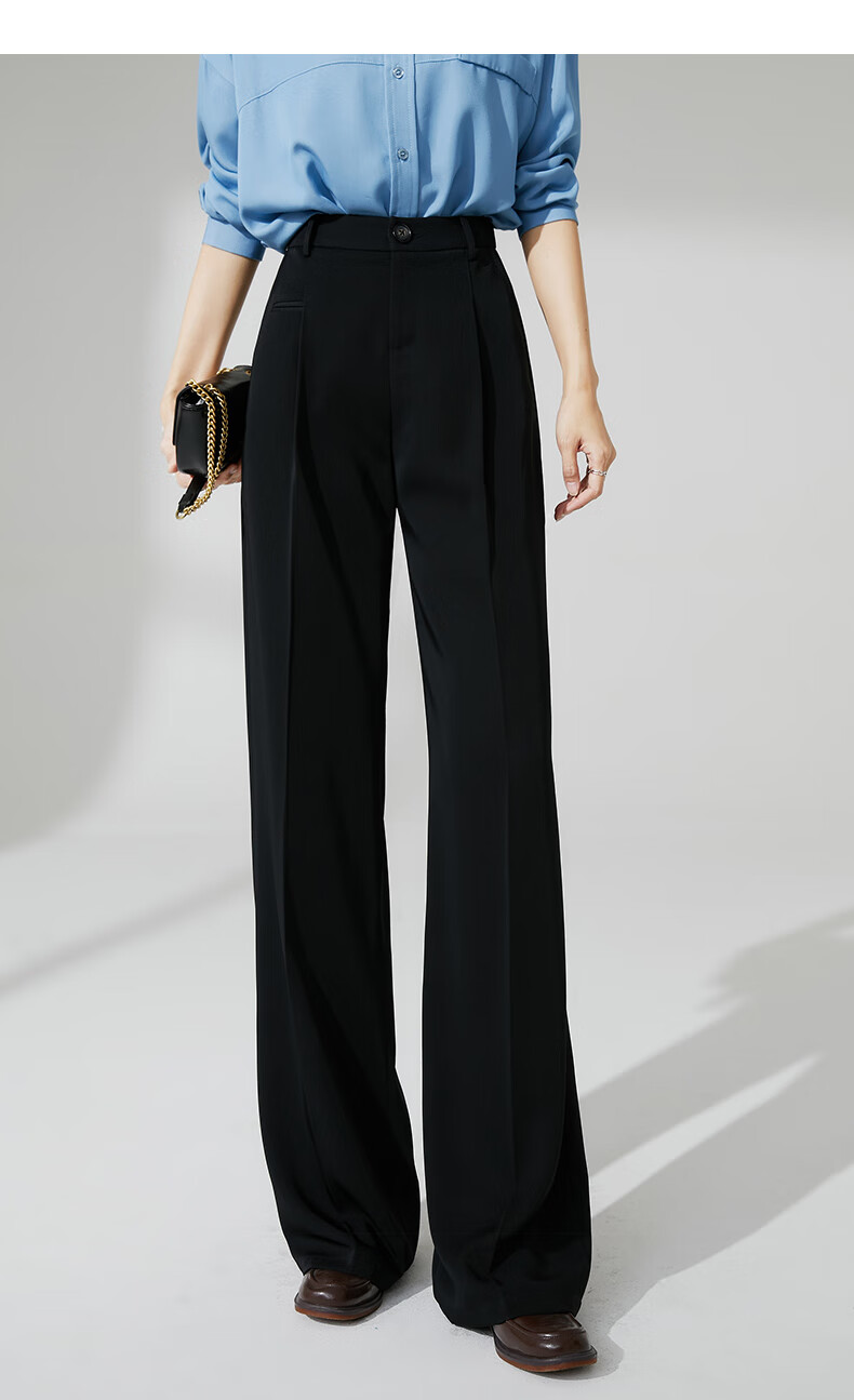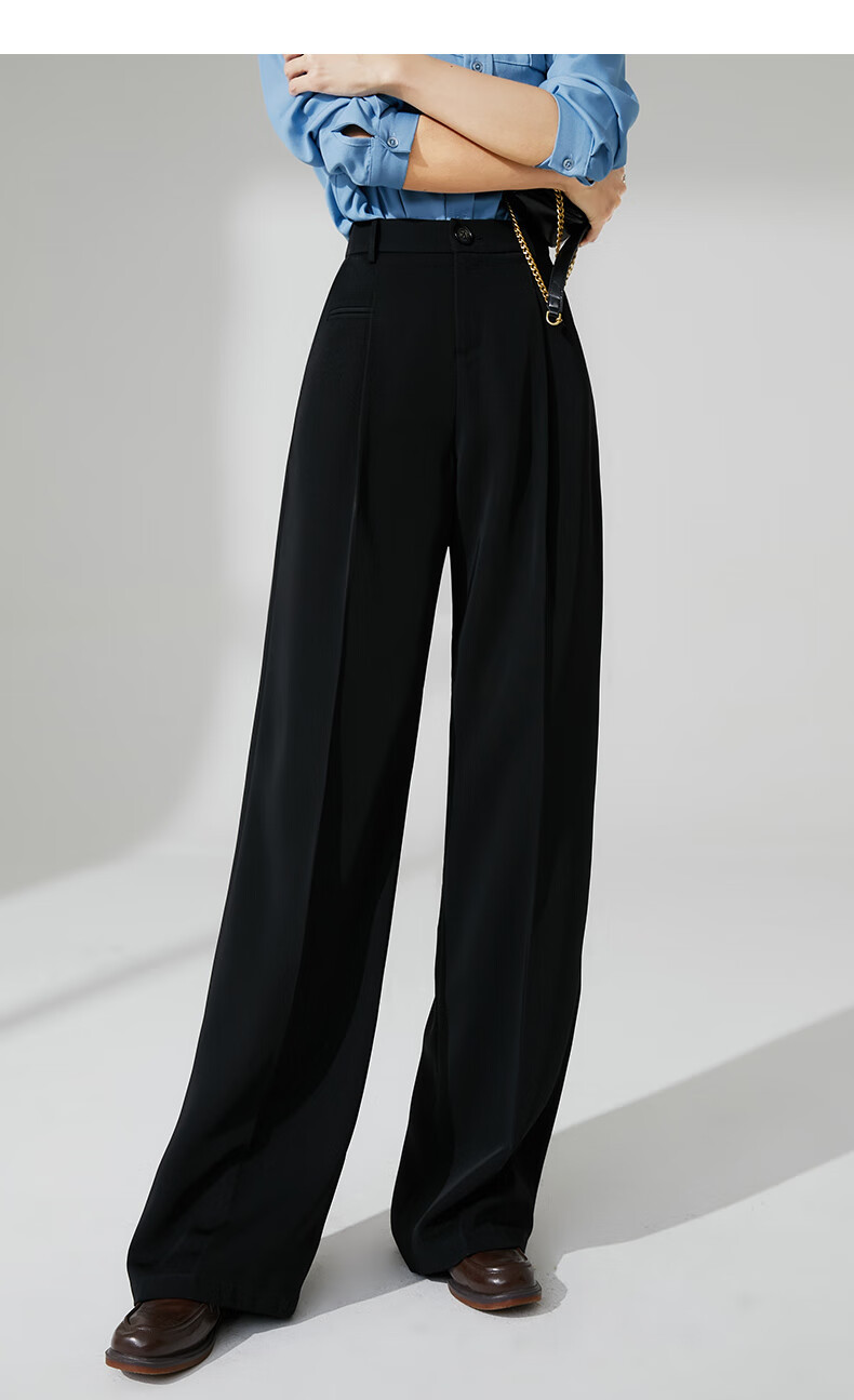 Late White New Product 2025 Autumn Versatile Commuting Pants Fashionable Simple High Waist Loose Solid Color Casual Pants Women Black 27
