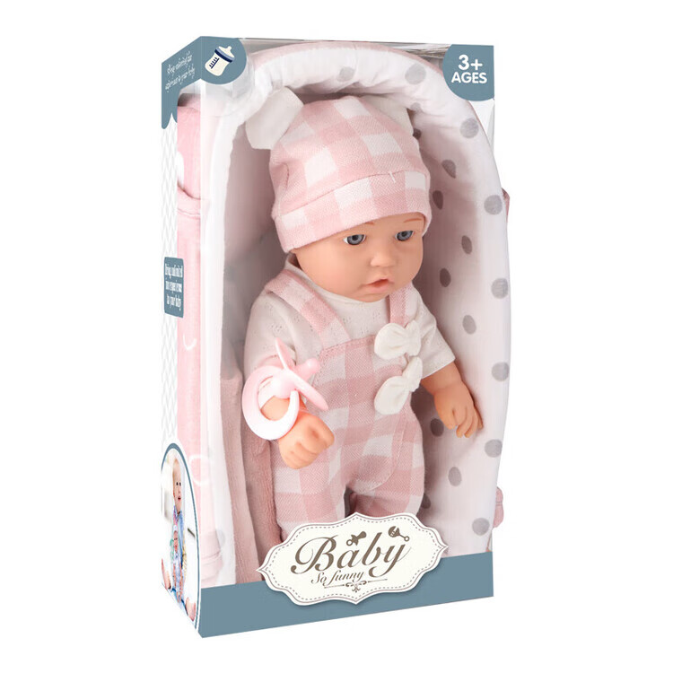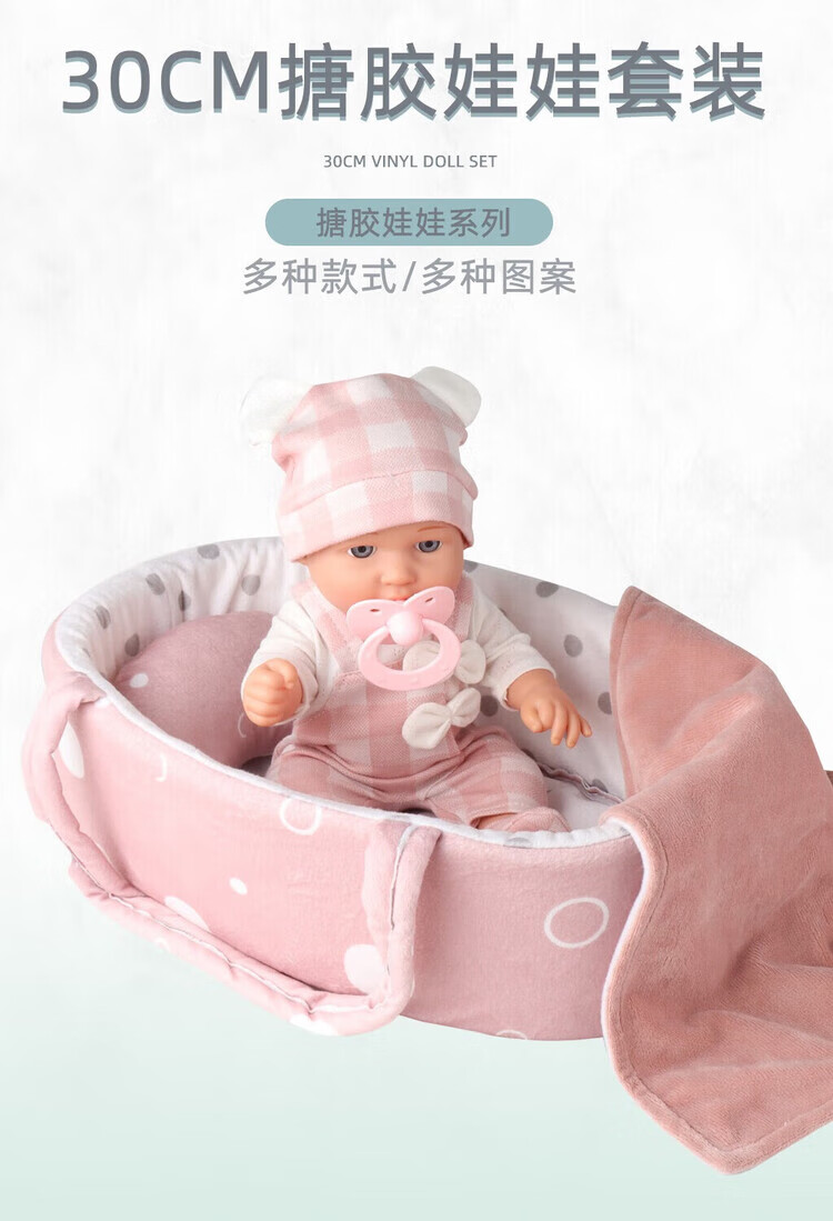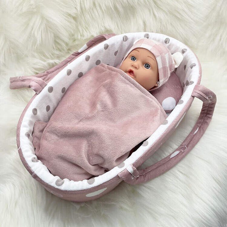 12-inch reborn doll soft vinyl baby simulation girl toy set doll play house children's gift plaid overalls set cradle/pillow/quilt