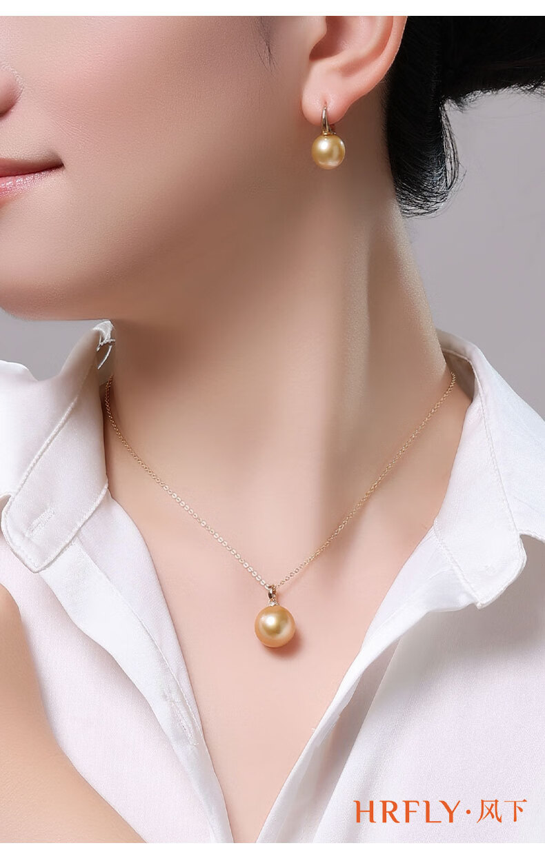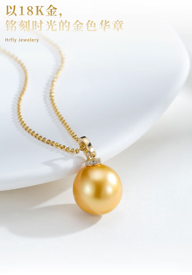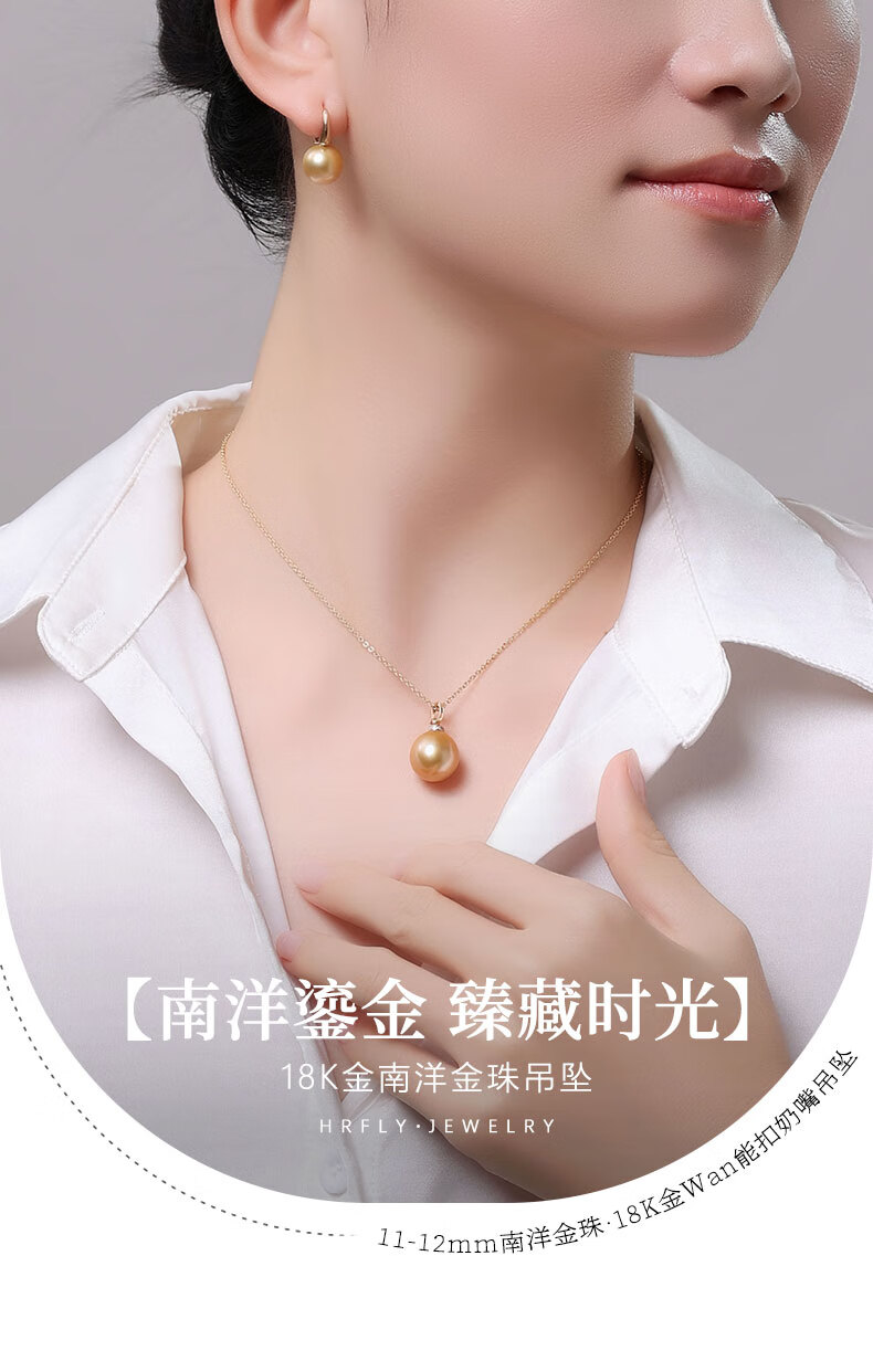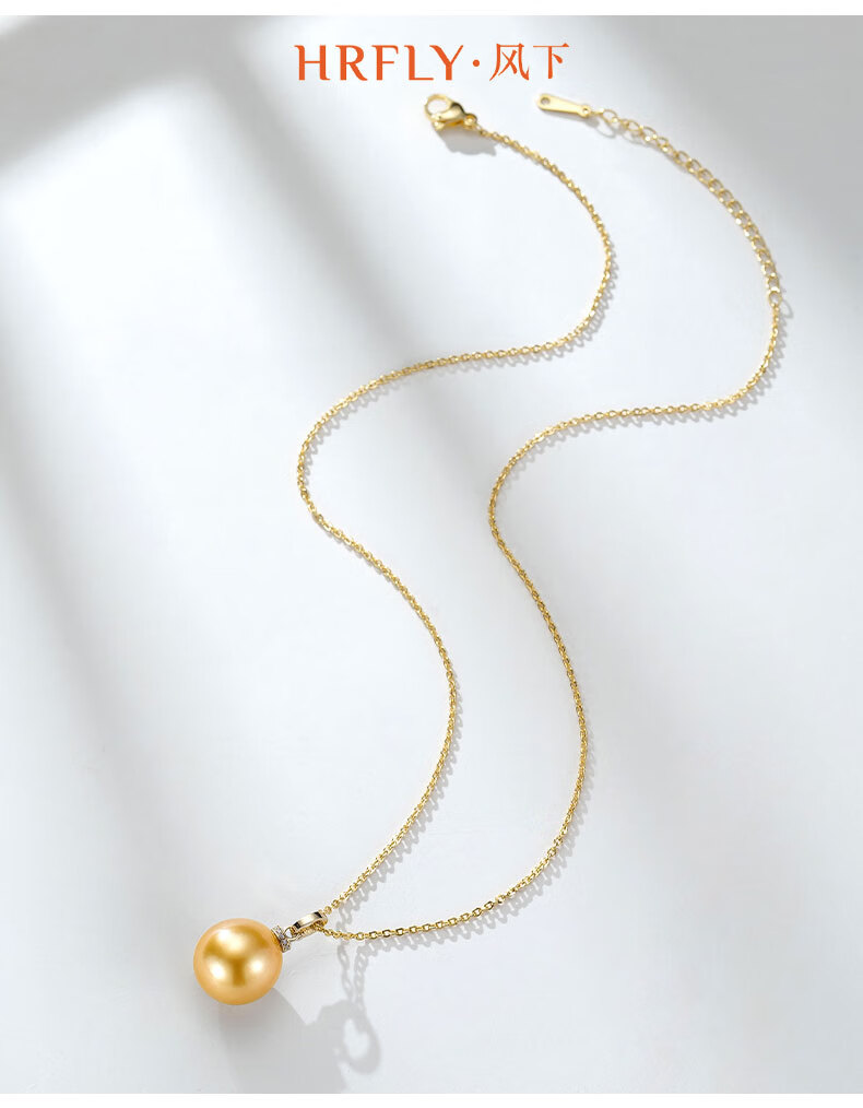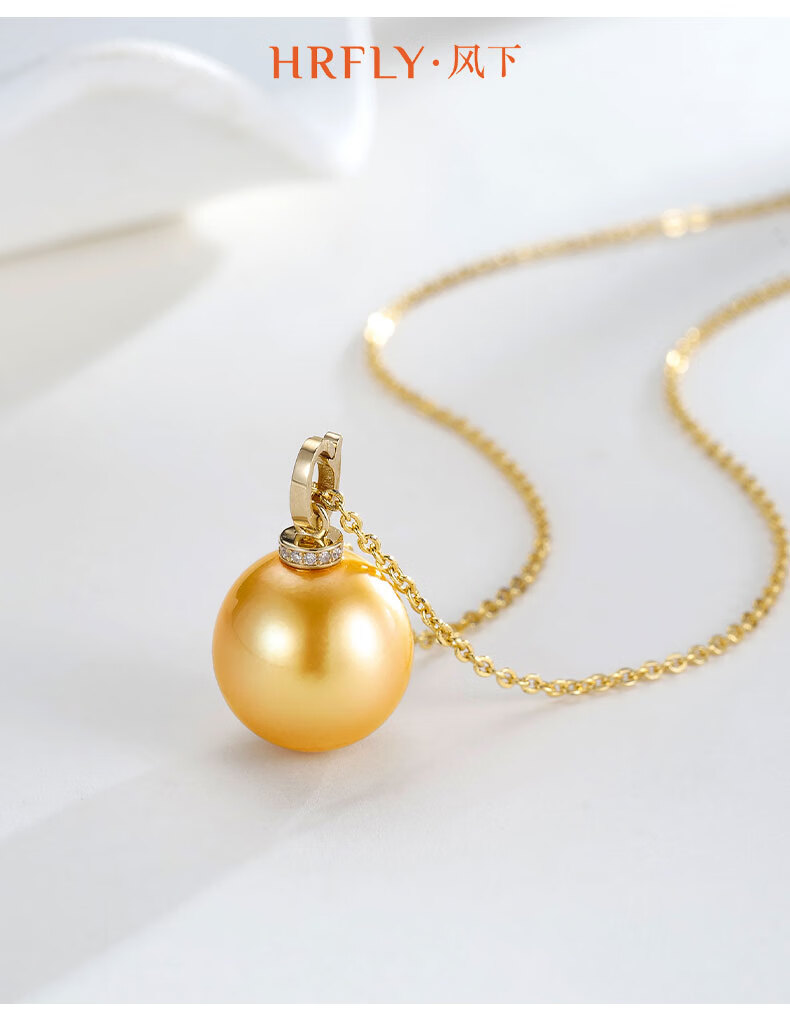 Fengxia Universal Buckle South Sea Gold Seawater Pearl Pendant 18K Gold Diamond Inlaid Gold Bead Necklace Gold Jewelry Gift Box 11-12mm