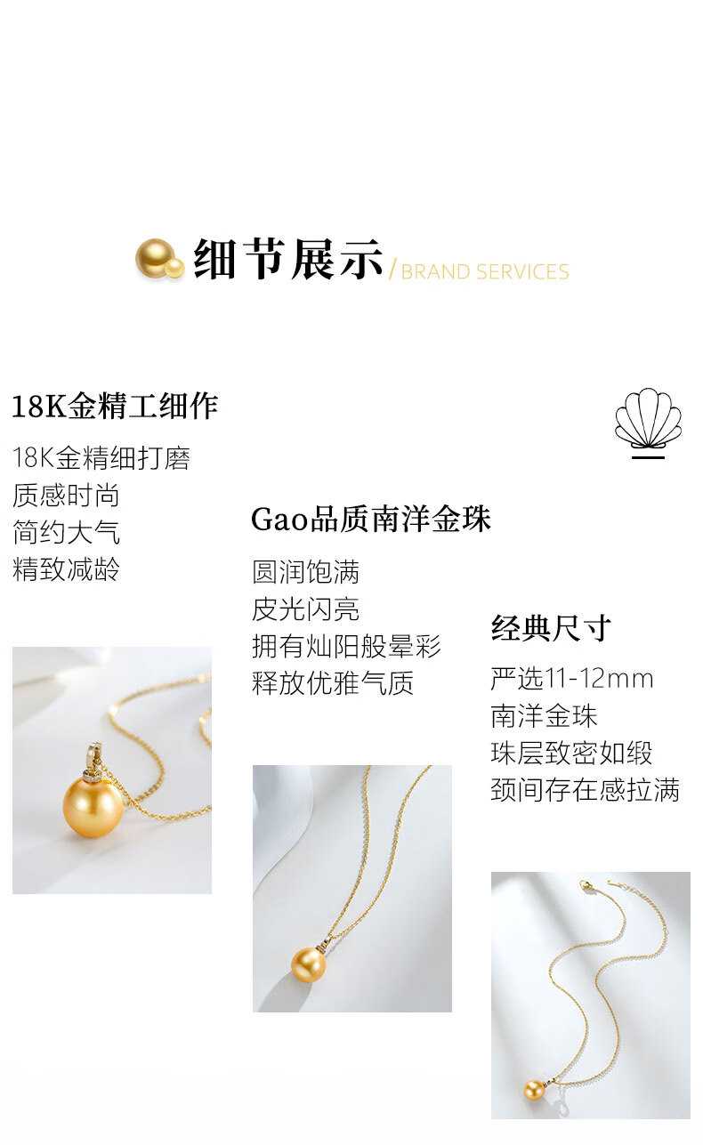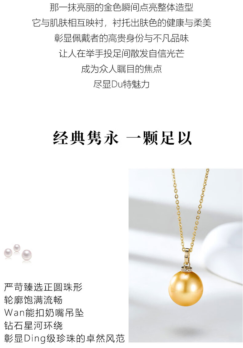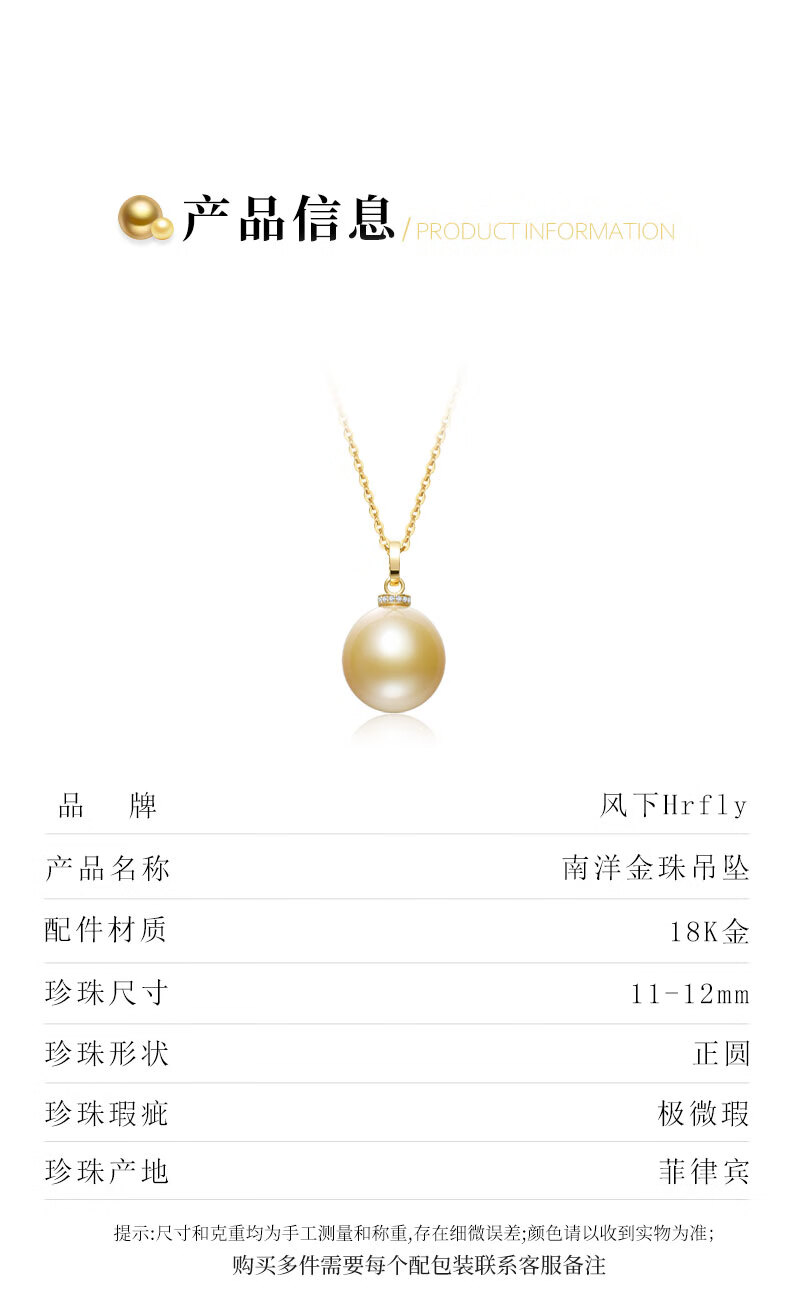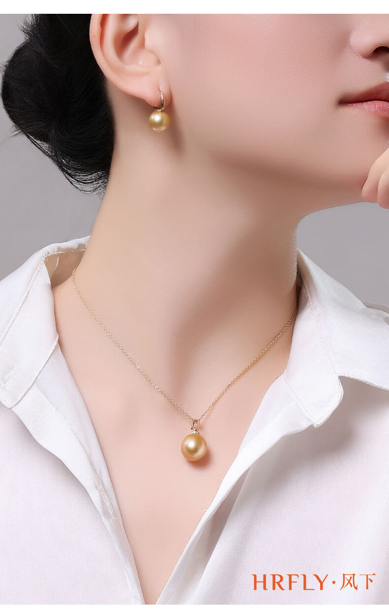 Fengxia Universal Buckle South Sea Gold Seawater Pearl Pendant 18K Gold Diamond Inlaid Gold Bead Necklace Gold Jewelry Gift Box 11-12mm