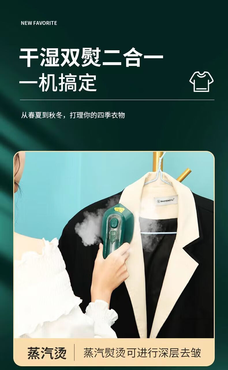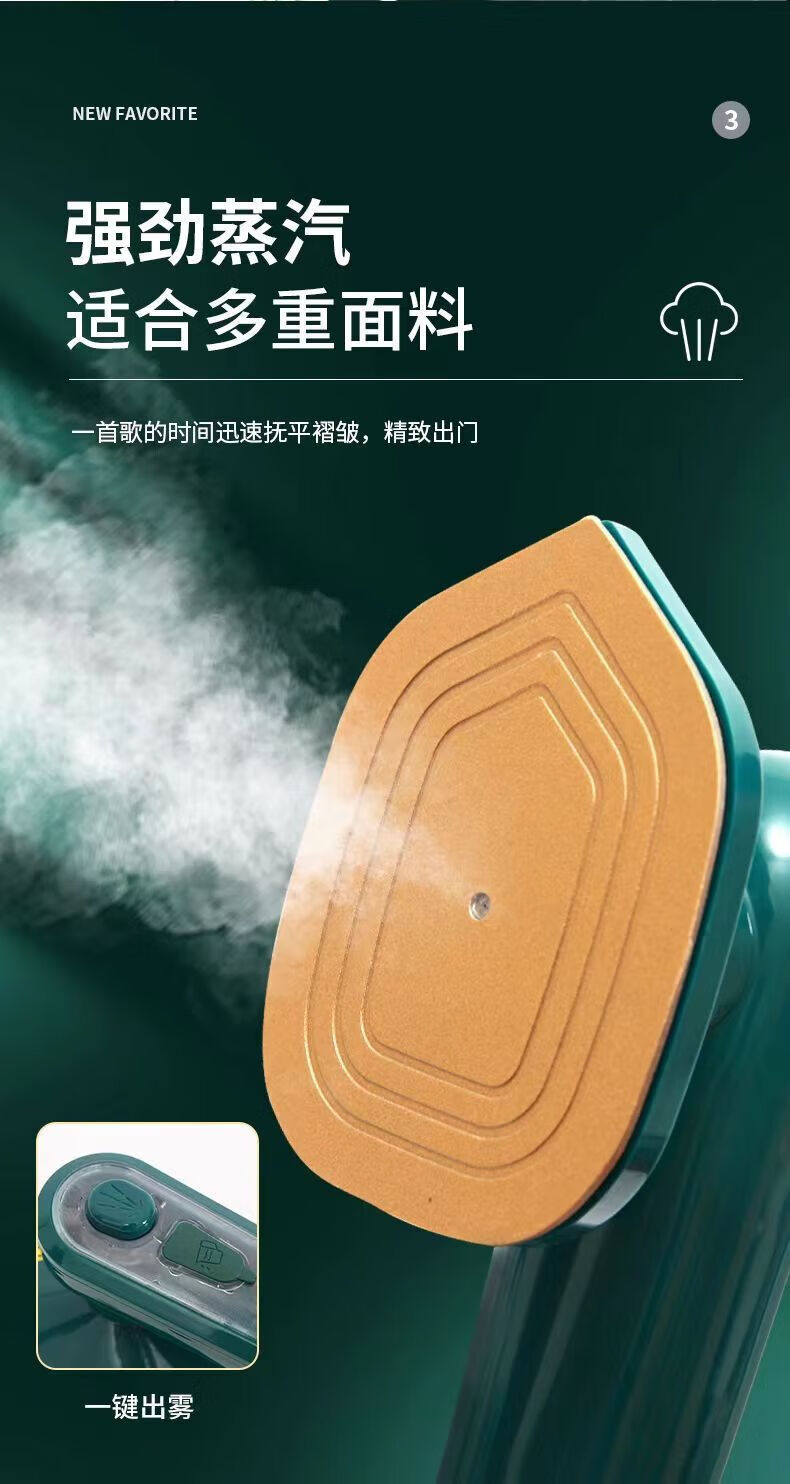 Xiaomi Buyi Handheld Portable Garment Steamer Steam Electric Iron Ironing Board Wrinkle Removal Home Mini Dormitory Ironing Machine Dark Green No Damage to Clothes/Second Styling