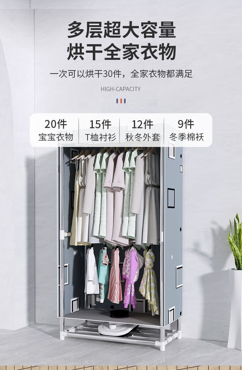 Xiaomi Buyi rental house dormitory household dryer quick dryer assembly storage wardrobe steel frame bedroom wardrobe simple wardrobe 1200W timed model ideal model