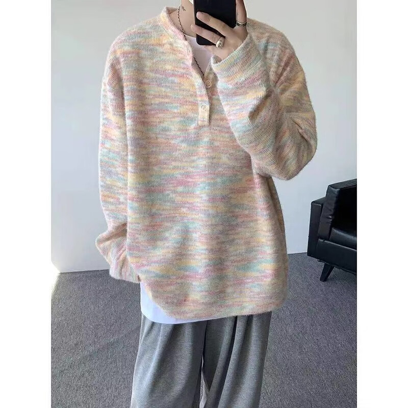 POUM sweater men's autumn and winter new mohair lazy style sweater Henry collar bottoming fir couple coat top CQS-3339 Gray XL