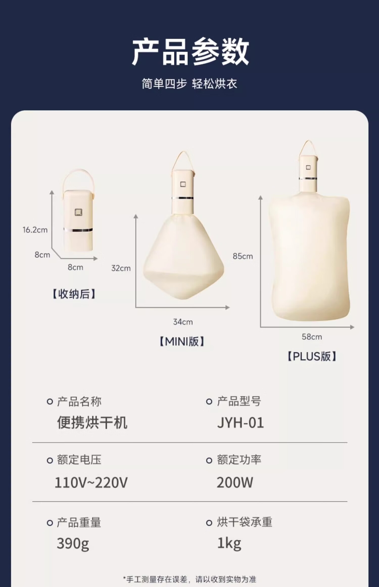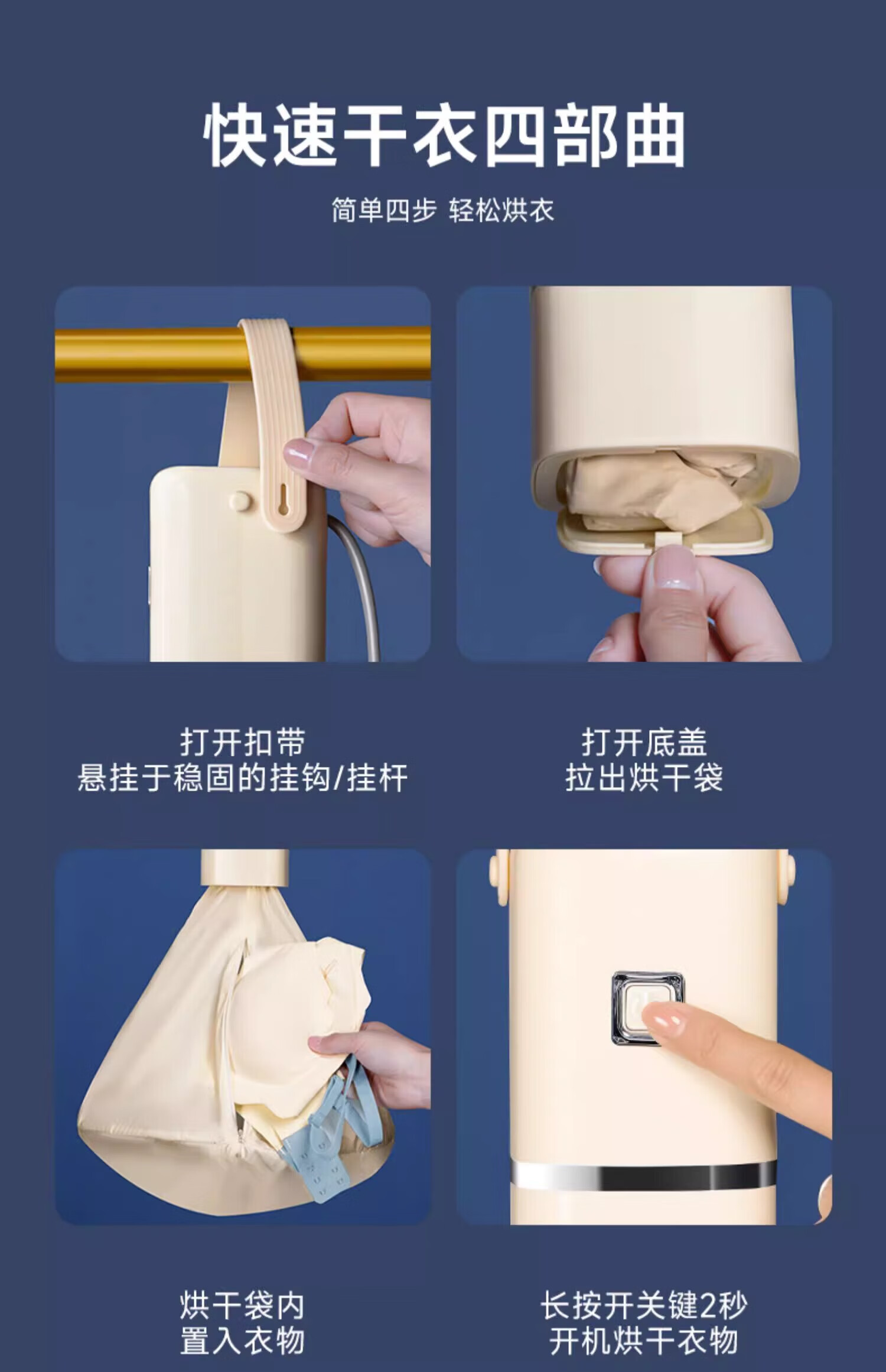 Xiaomi Buyi travel pocket portable mini dryer folding household underwear socks dryer artifact dormitory small portable dryer UV disinfection enlarged cloth