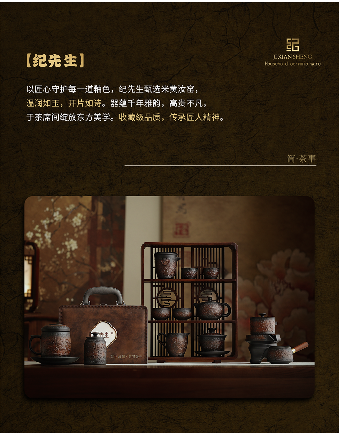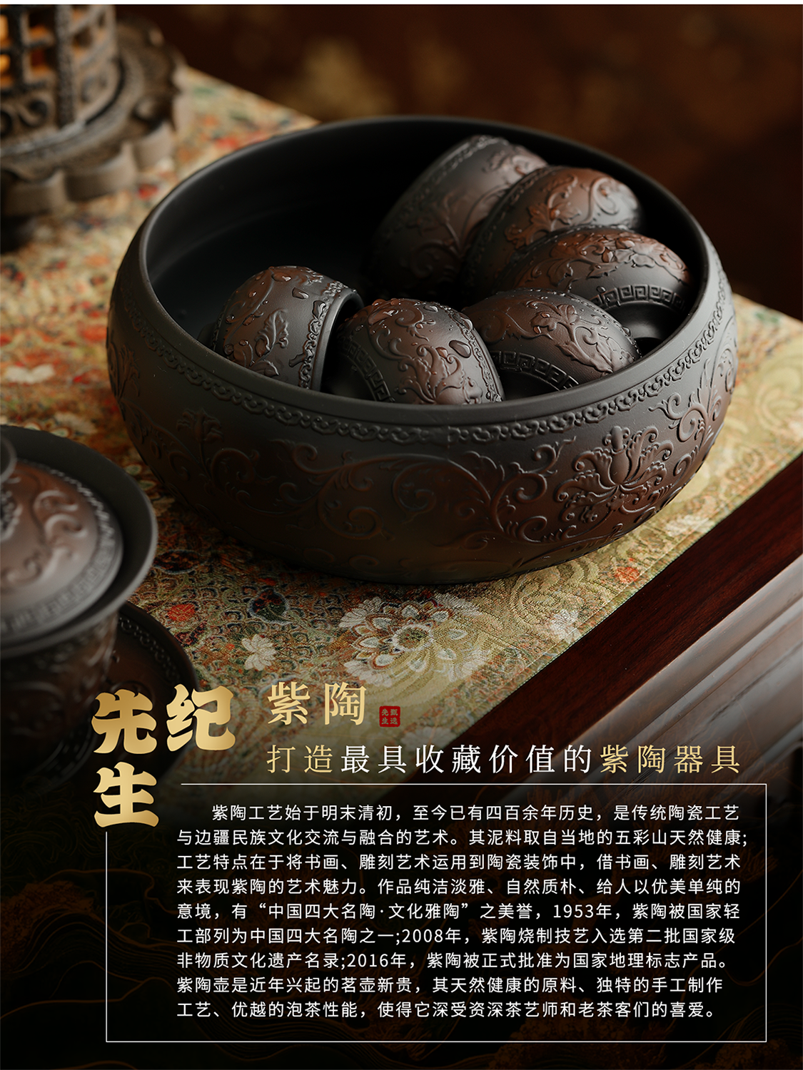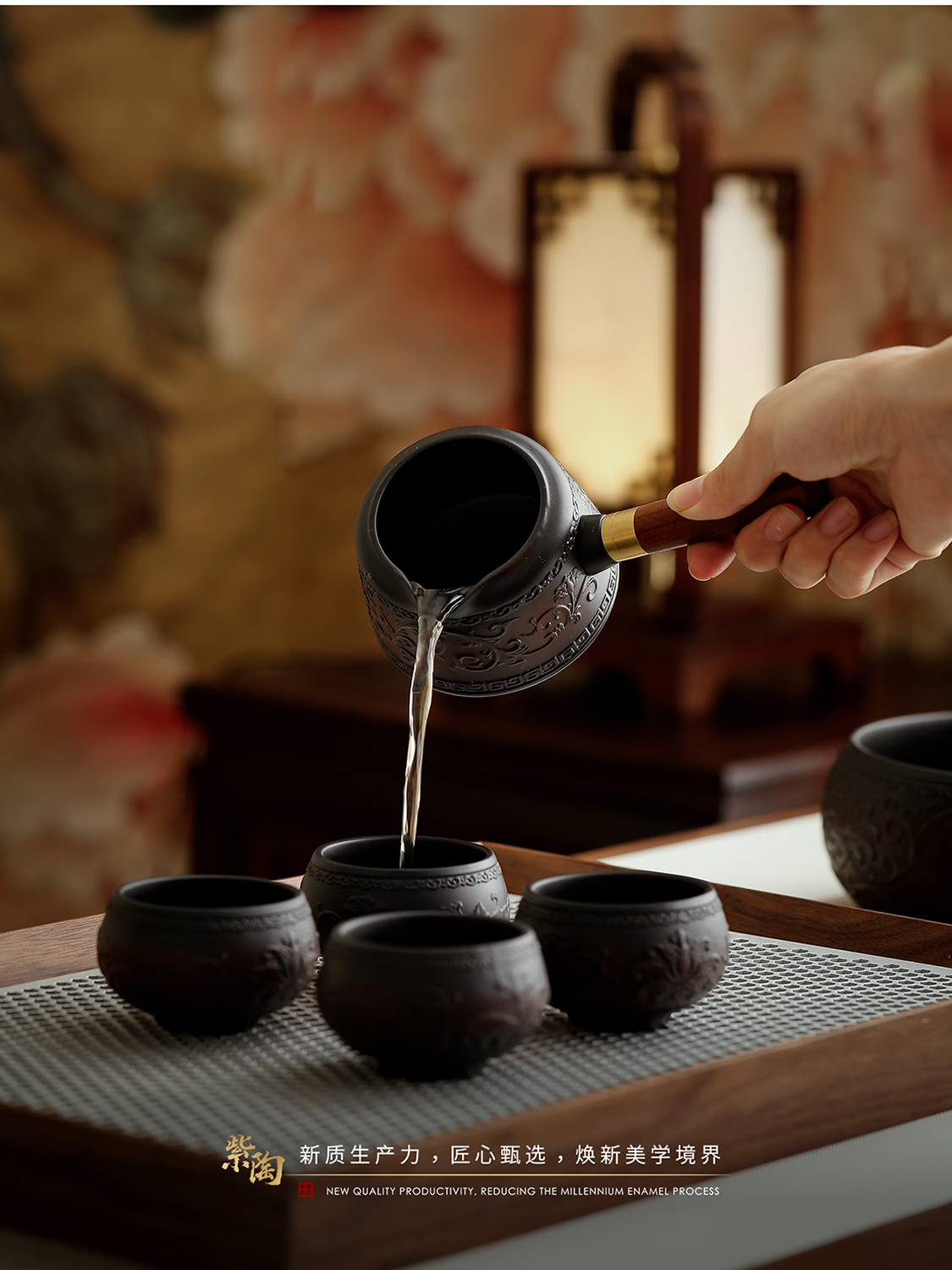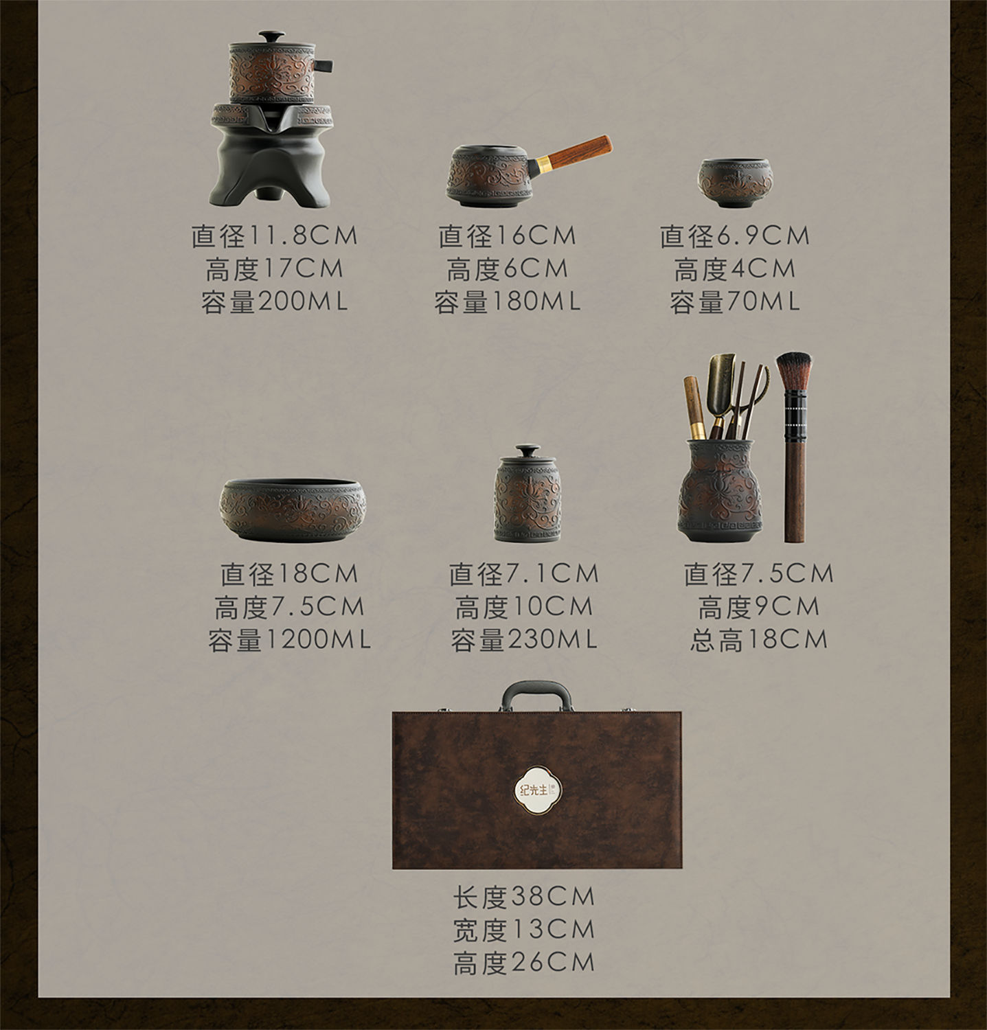 Mr. Ji's Dunhuang Forbidden City Purple Pottery Automatic Teapot, Teacup and Tea Set is a Mid-Autumn Festival birthday gift for the elders. 1. (Twinkle Pattern) Purple Pottery Automatic Set of 9 Pieces in Leather Box
