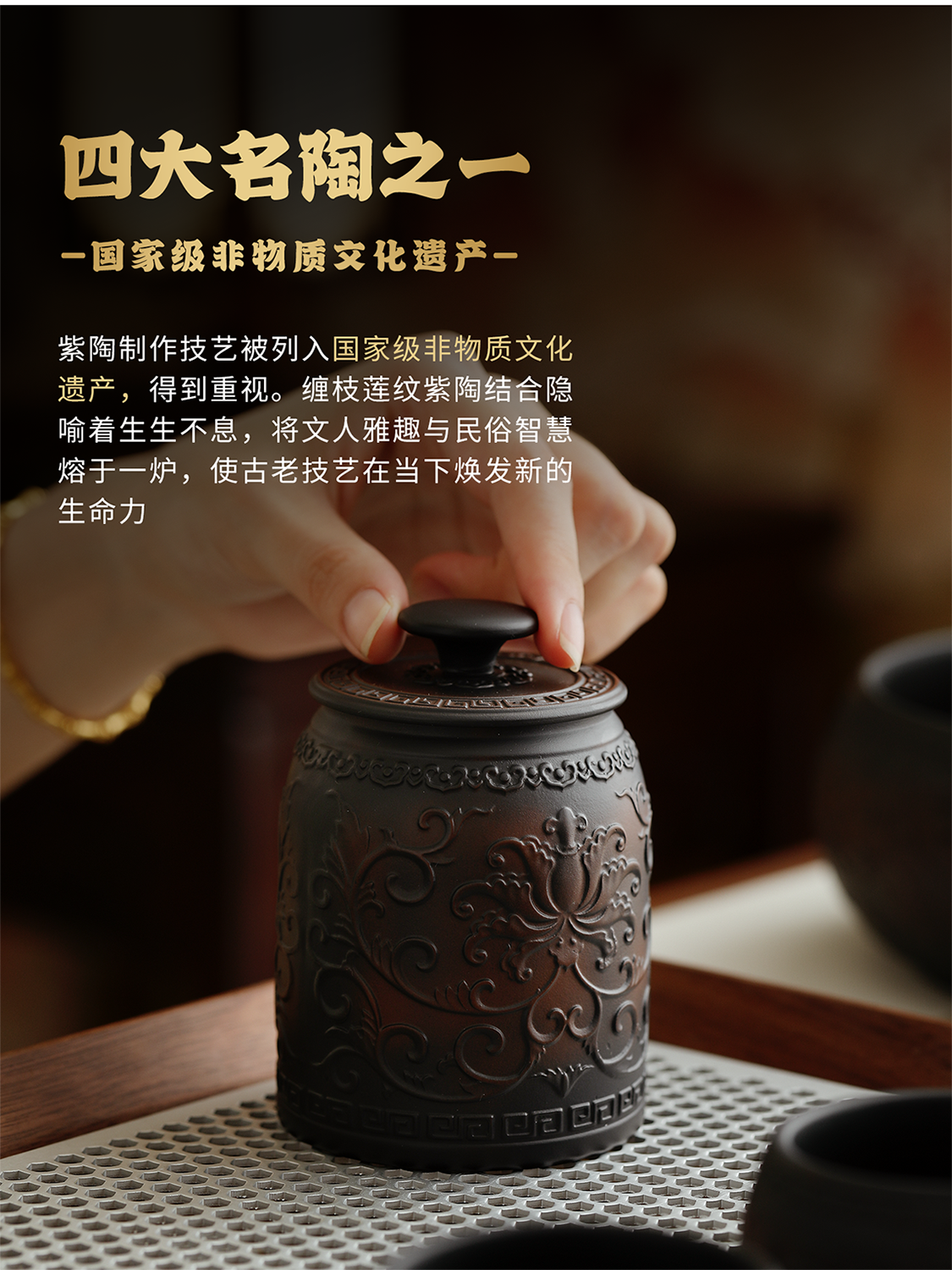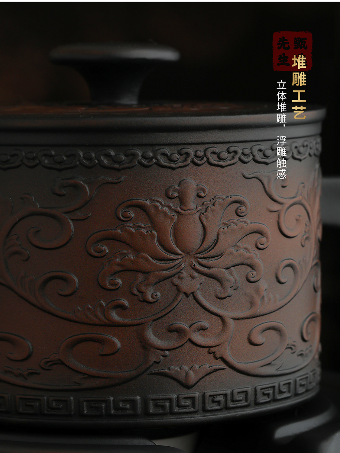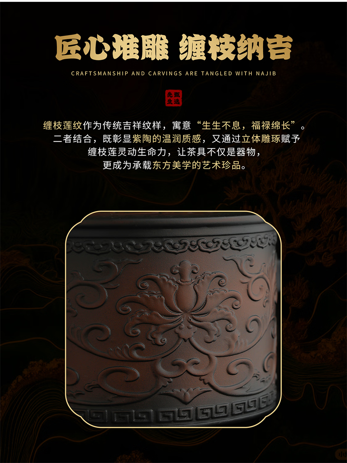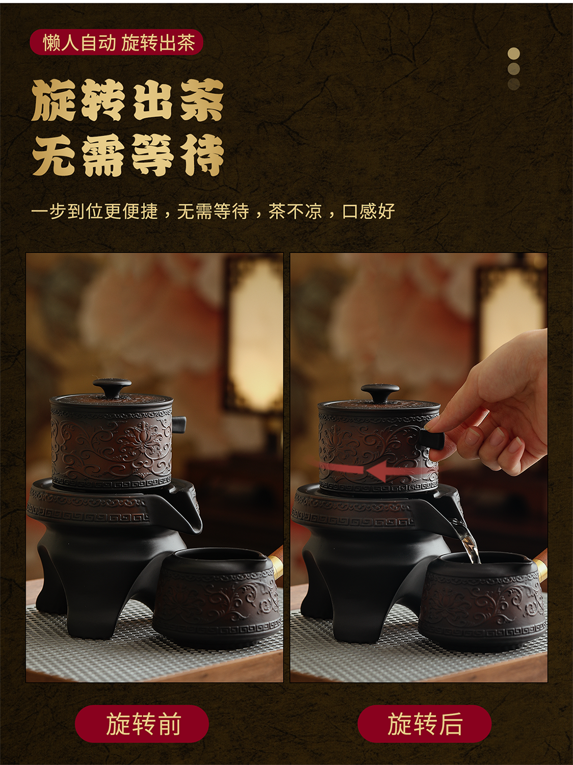 Mr. Ji's Dunhuang Forbidden City Purple Pottery Automatic Teapot, Teacup and Tea Set is a Mid-Autumn Festival birthday gift for the elders. 1. (Twinkle Pattern) Purple Pottery Automatic Set of 9 Pieces in Leather Box