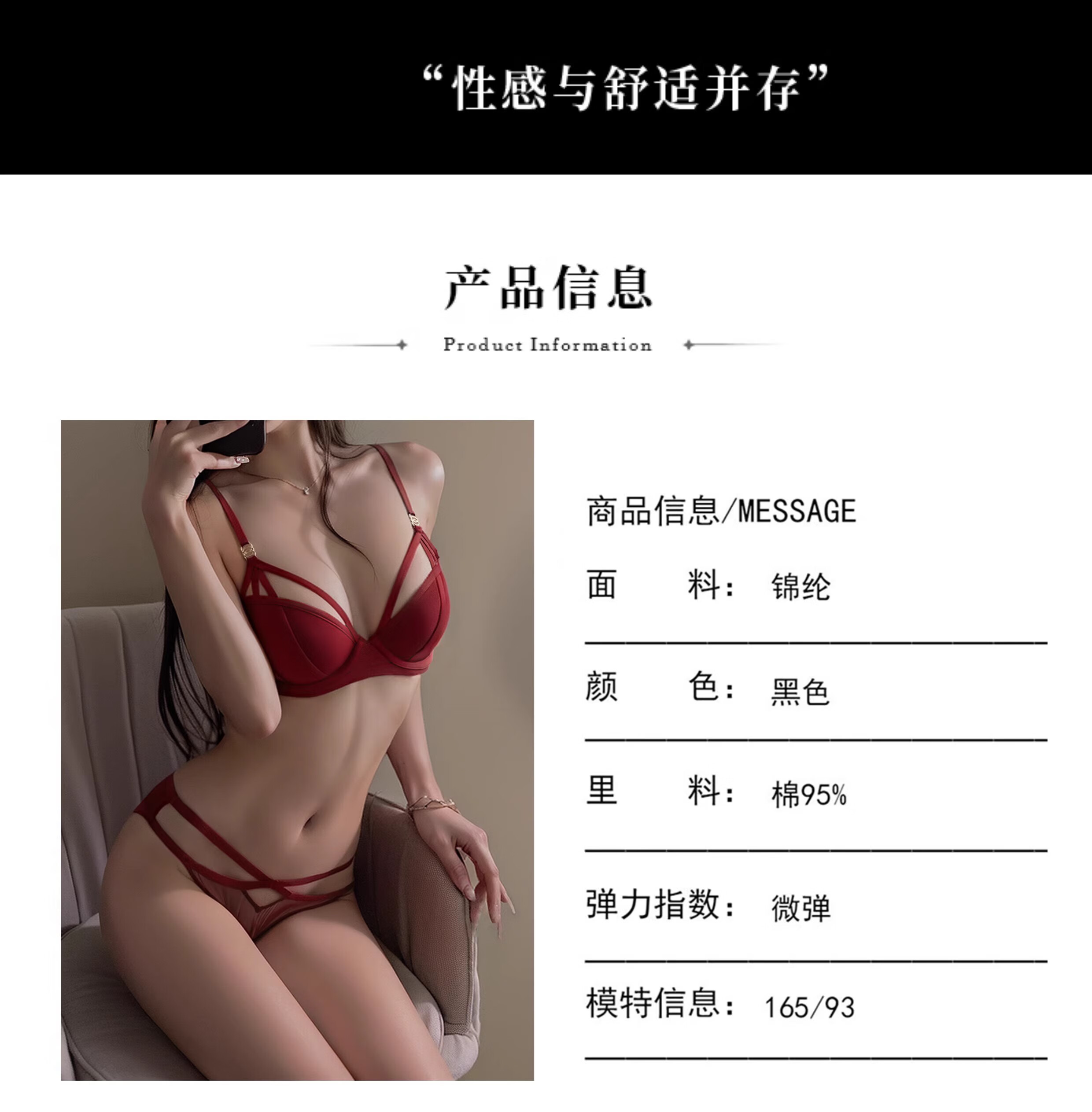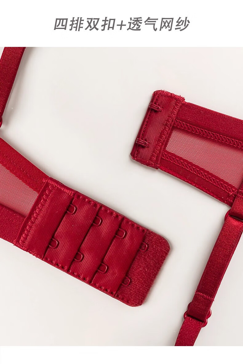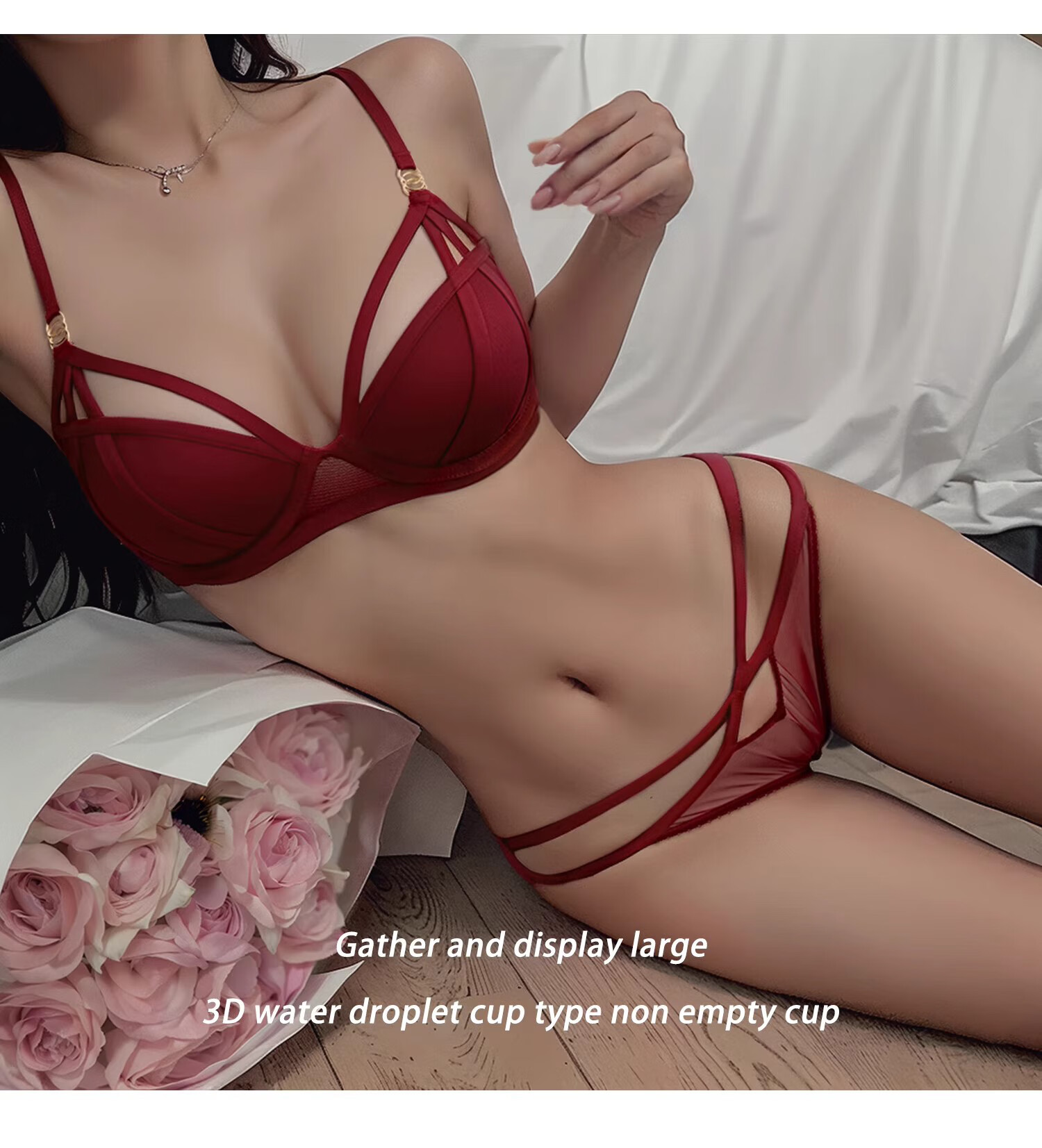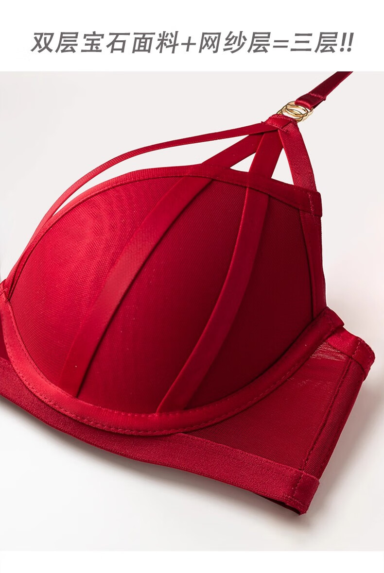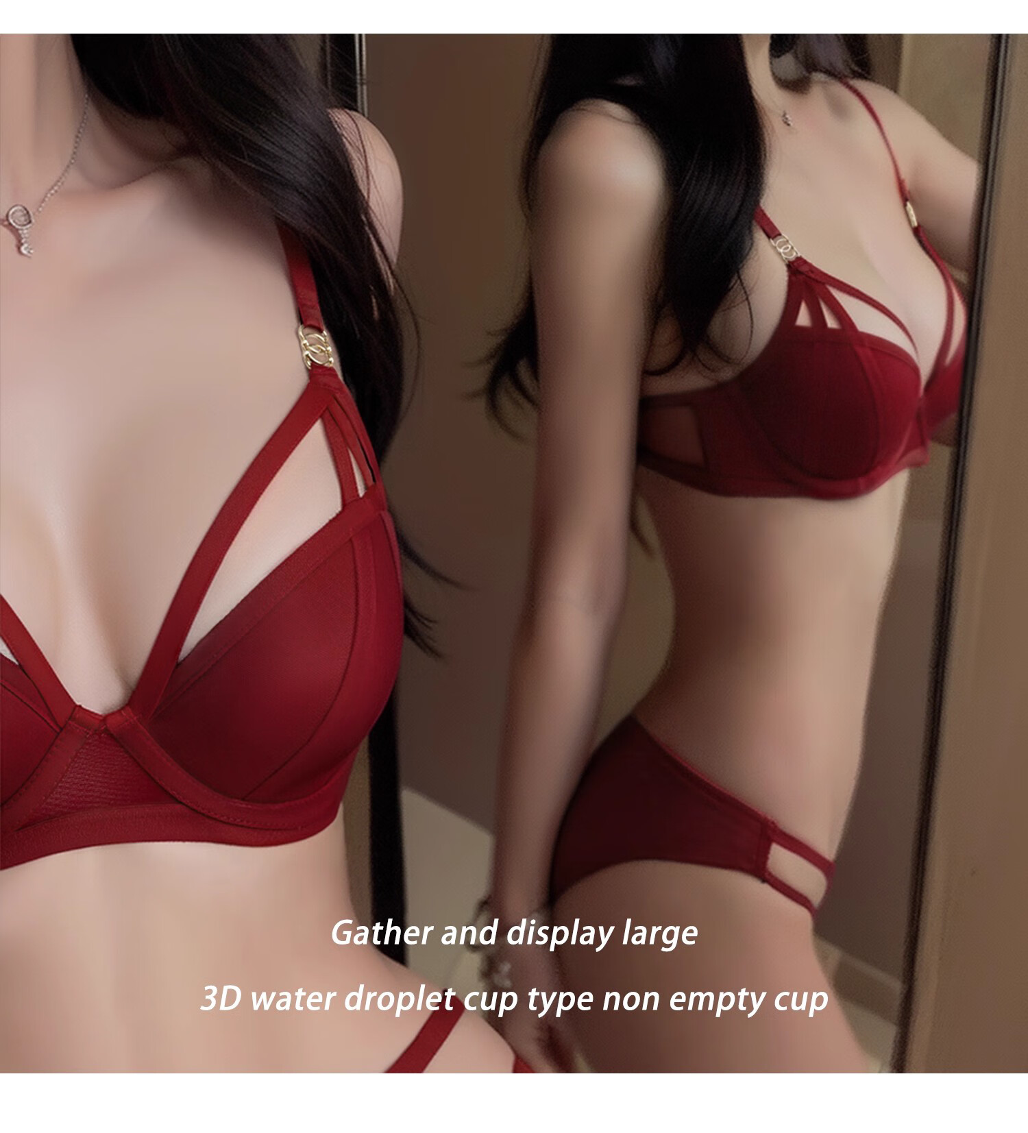 KING WINNER Brand Bra Set Pure Desire Sexy Small Breasts Gathered to Show Bigger Empty Cups Top Support Anti-Sagging Bra Underwear for Women Red Bra + Panties 70B One Size