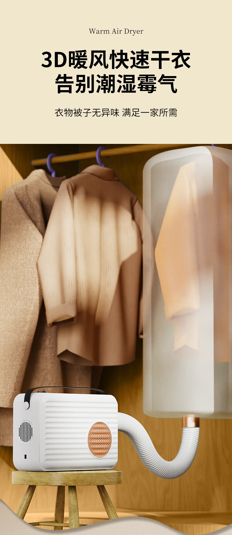 Xiaomi bed dryer quilt warm bedding home dormitory small portable folding pet dryer shoe dryer clothes dryer milk color single machine Specifications23.5*16.5*9