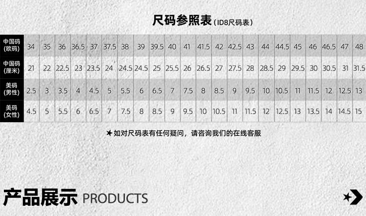 China (cm) 36 - 37 38 - 39 40 - 42 43 - 44 45 - 47