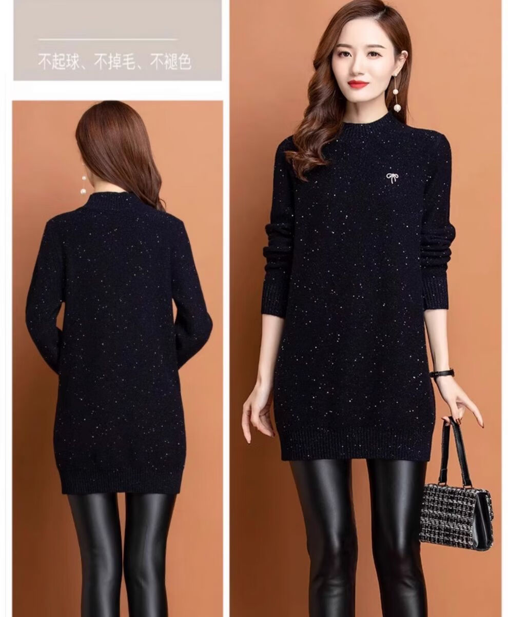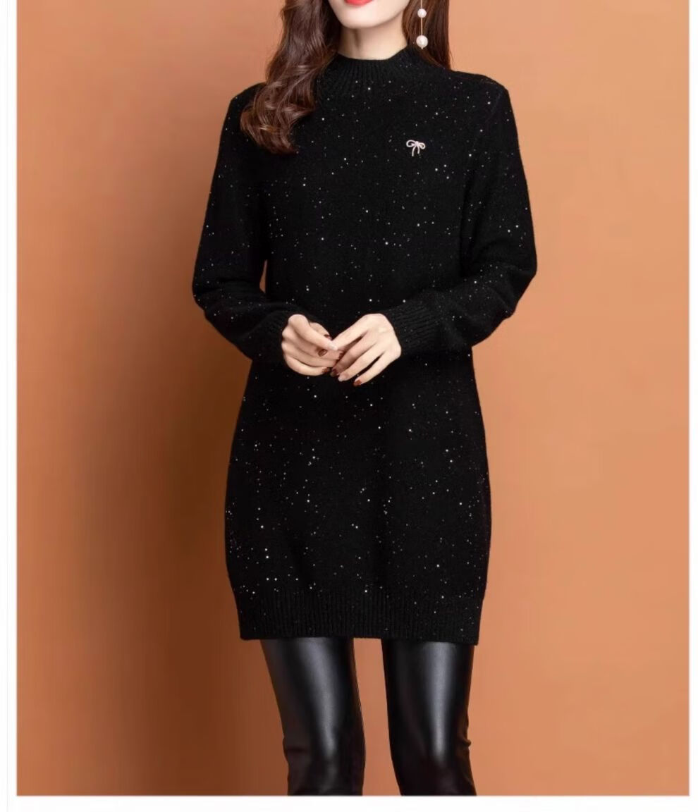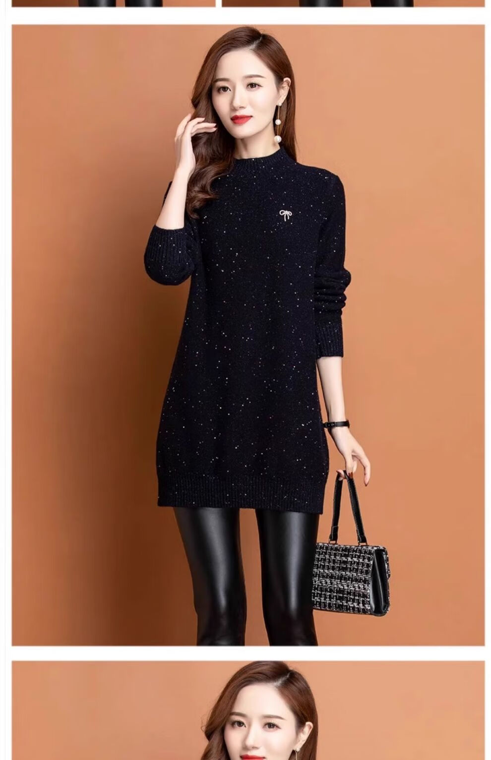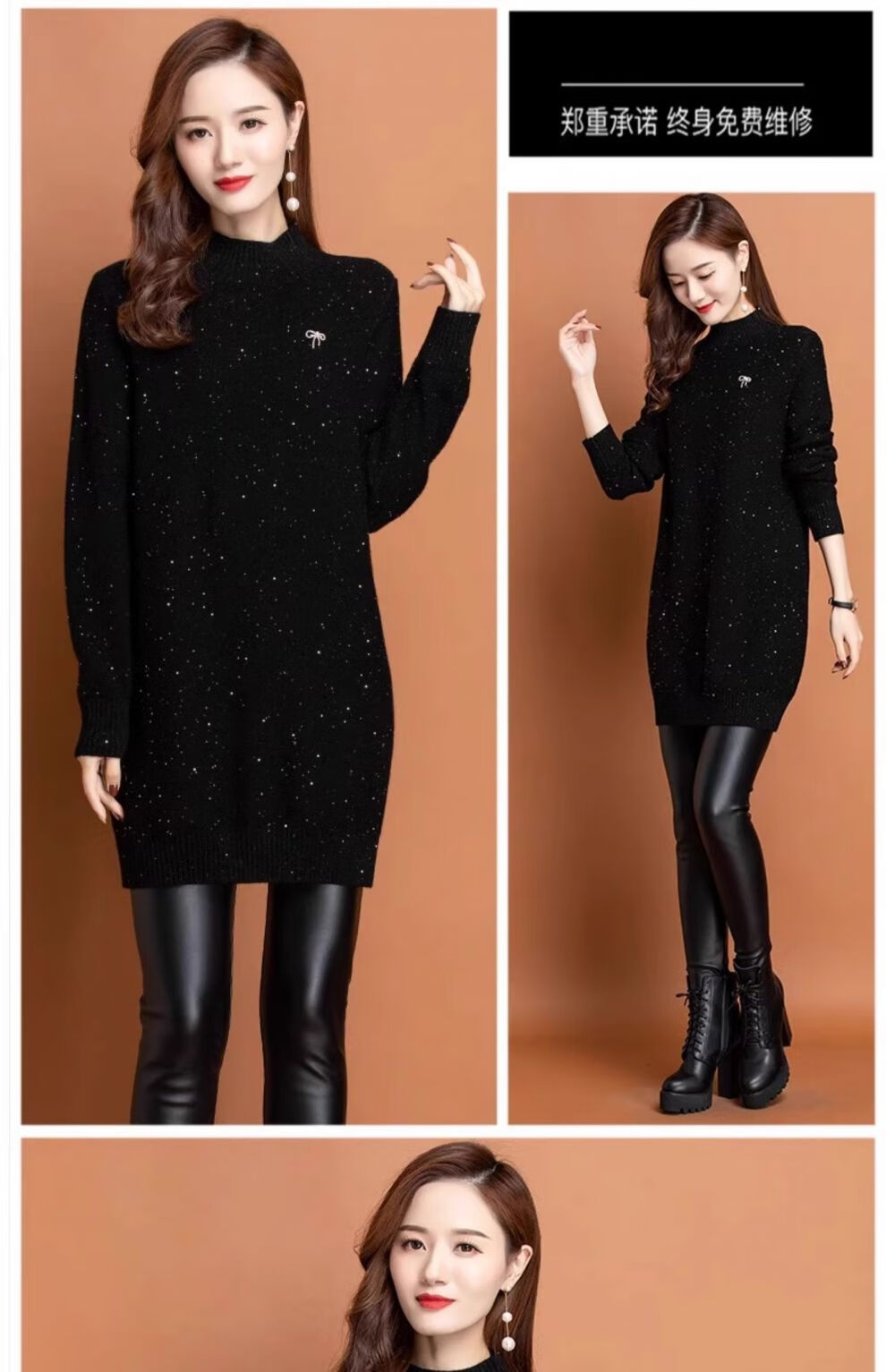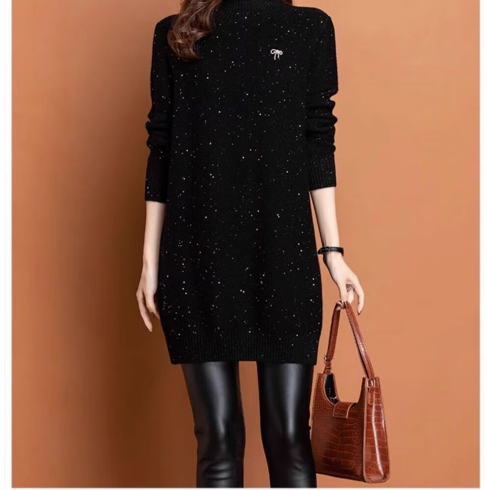 Pierre Cardin mid-length knitted bottoming shirt autumn and winter 2025 new women's coat sweater skirt thickened inner sweater black S