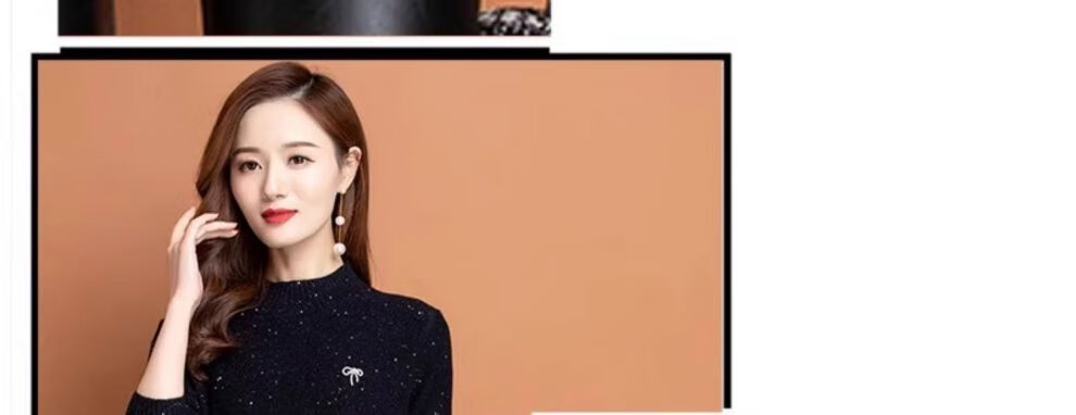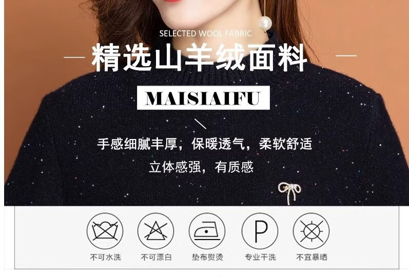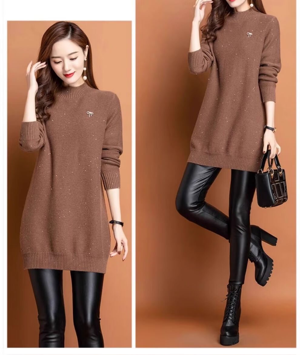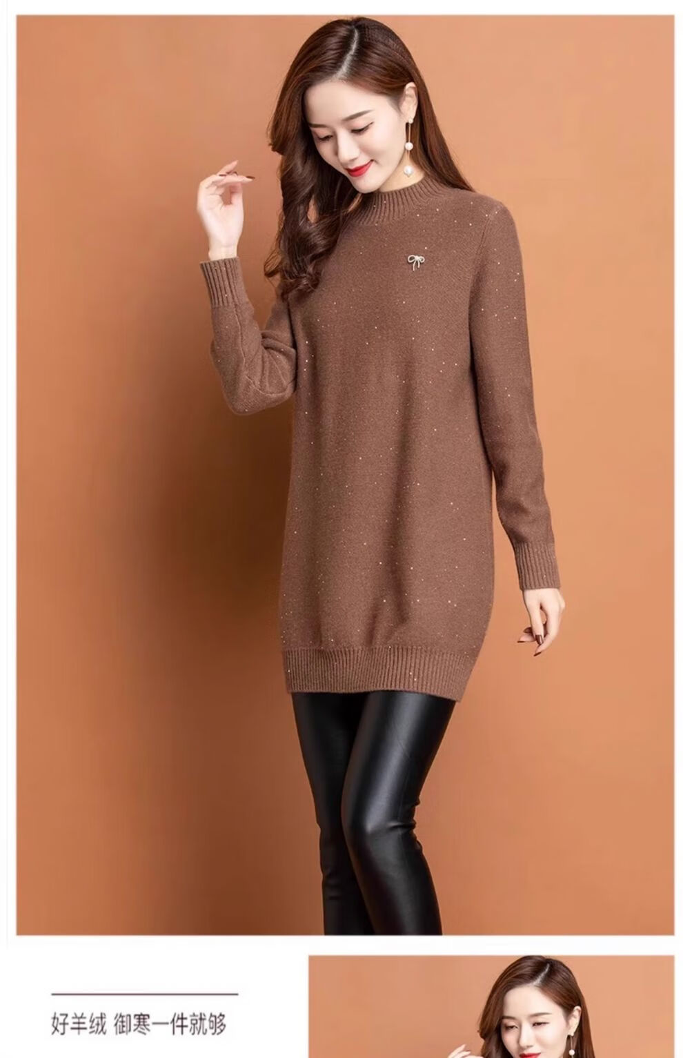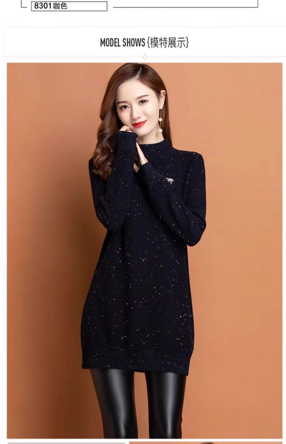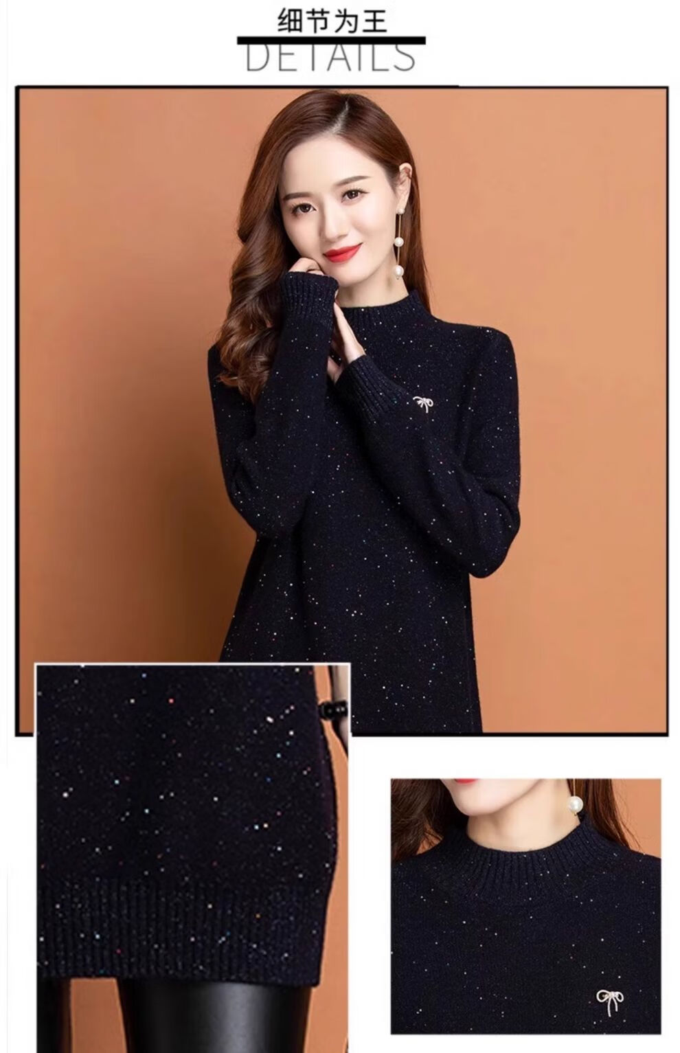 Pierre Cardin mid-length knitted bottoming shirt autumn and winter 2025 new women's coat sweater skirt thickened inner sweater black S