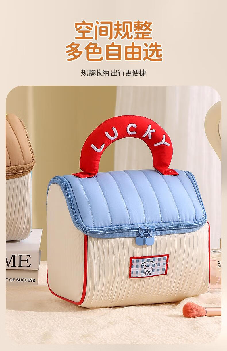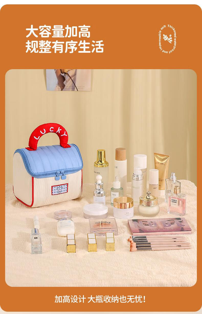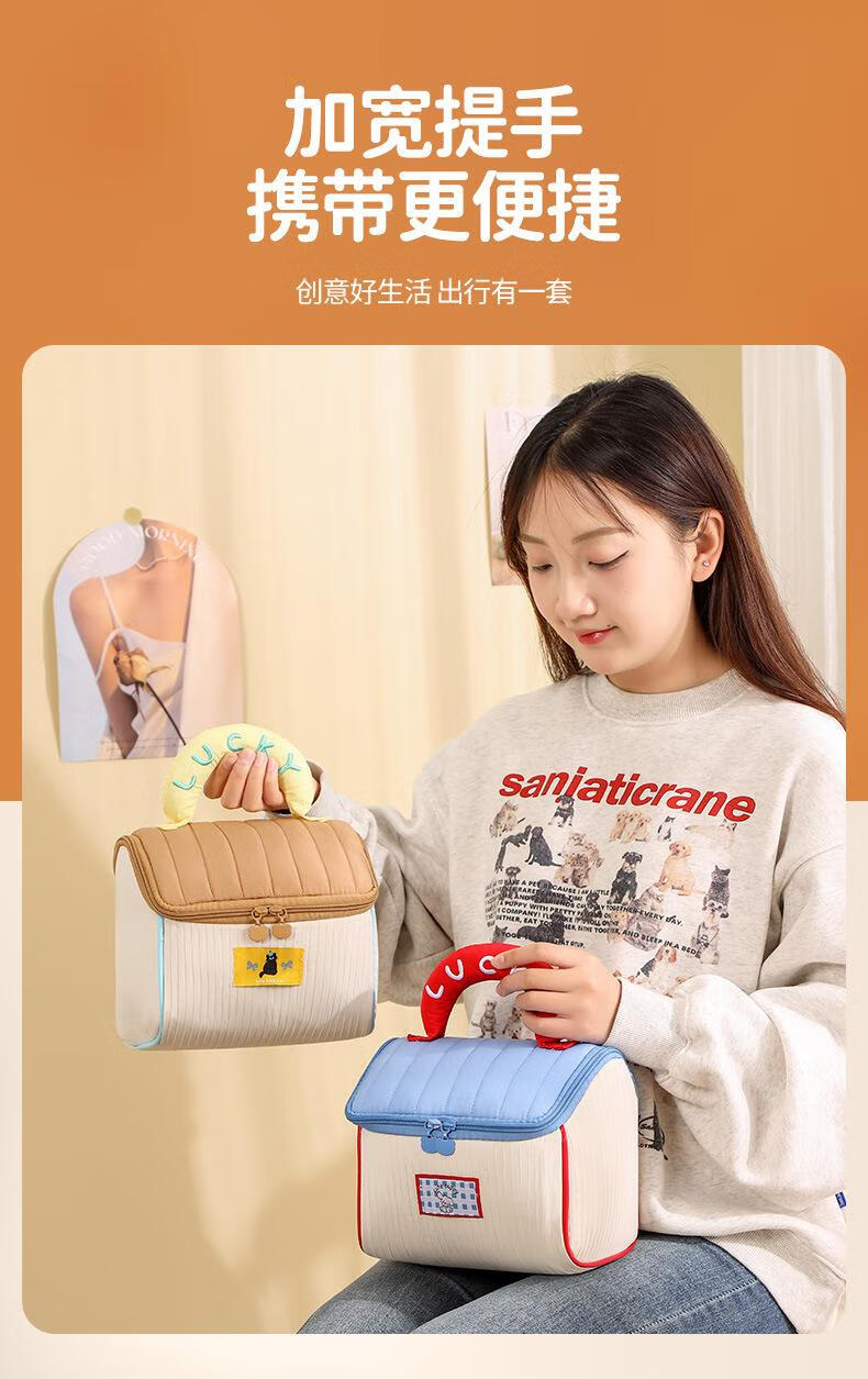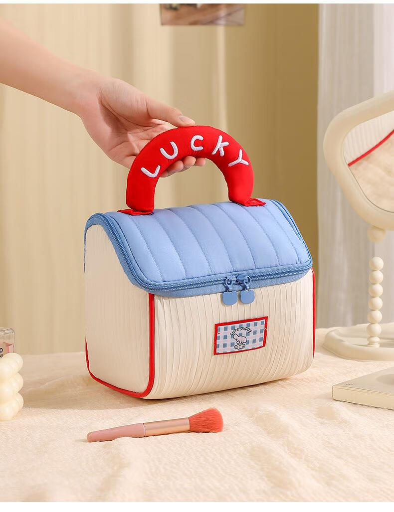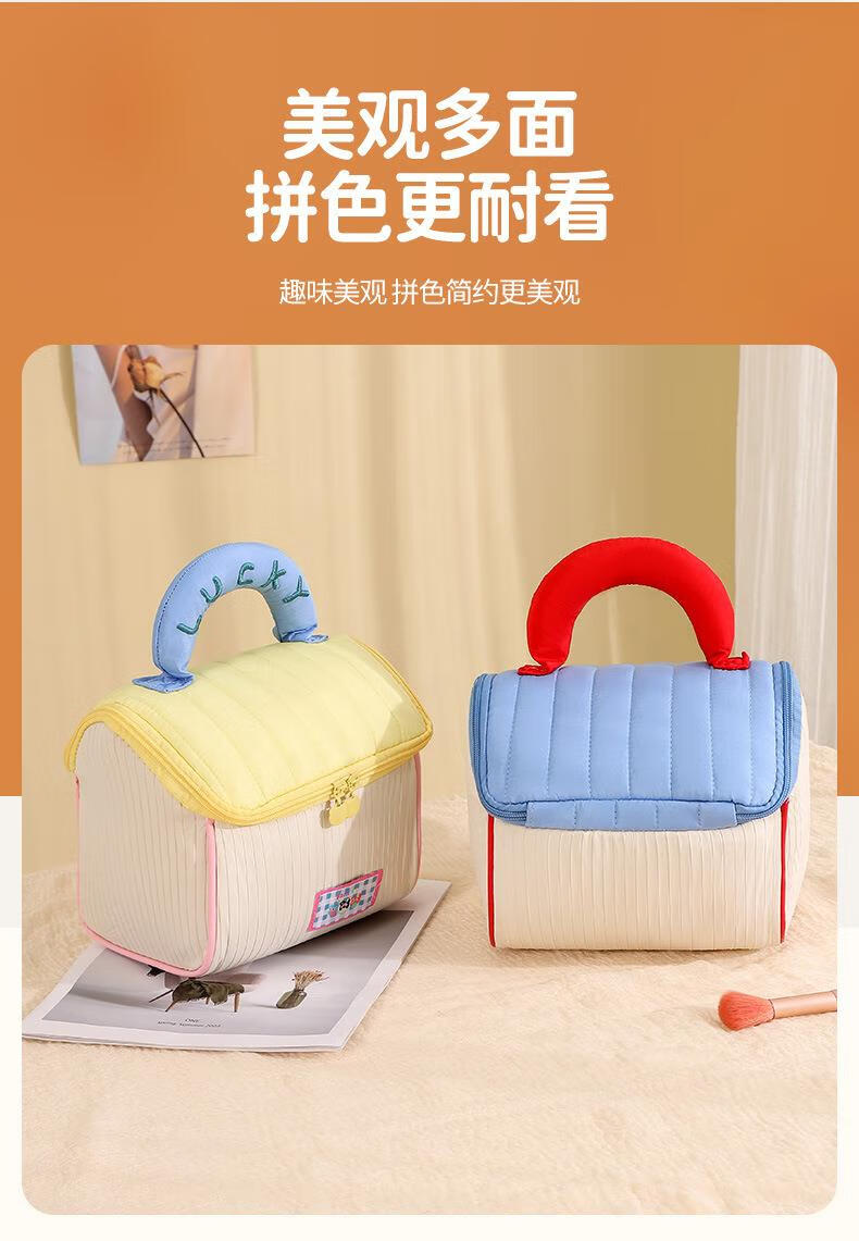 Fat Donglai same style dopamine small house cosmetic bag house-shaped cute cosmetic bag souvenir large capacity for girls (house bag) blue and white
