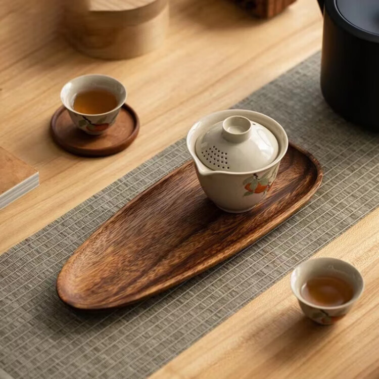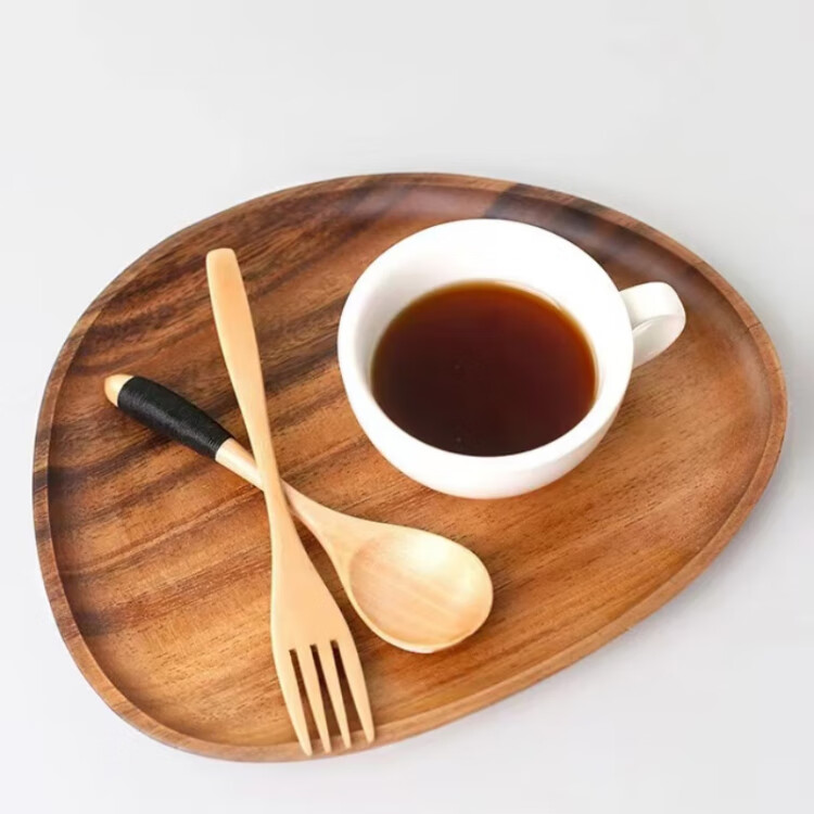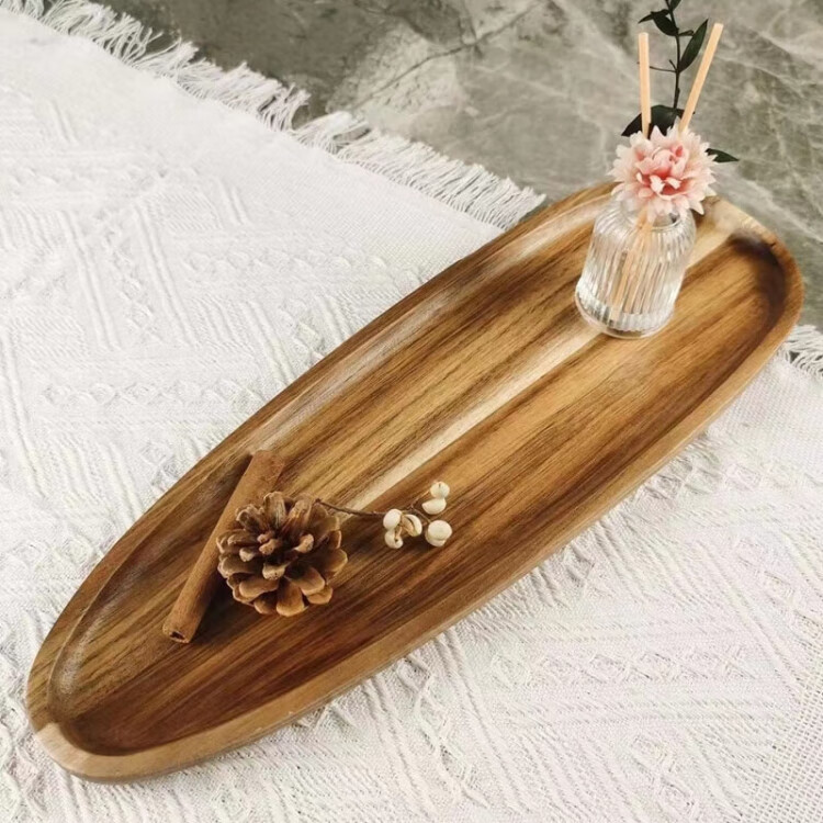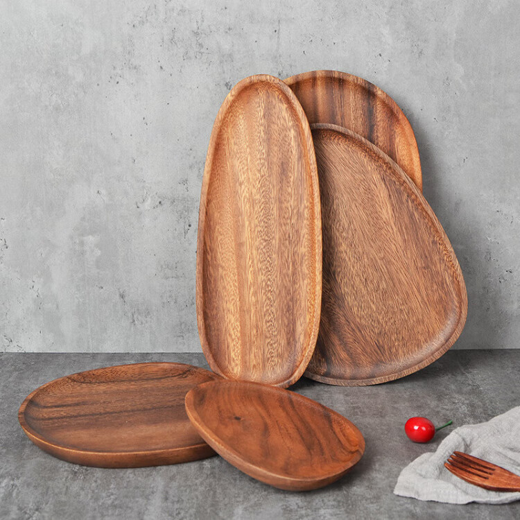 Japanese walnut color acacia wood dinner plate wooden tray tea tray commercial dessert tray serving tray solid wood color special-shaped D solid wood tray