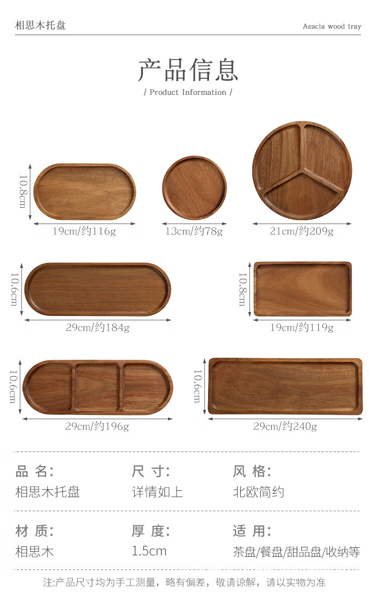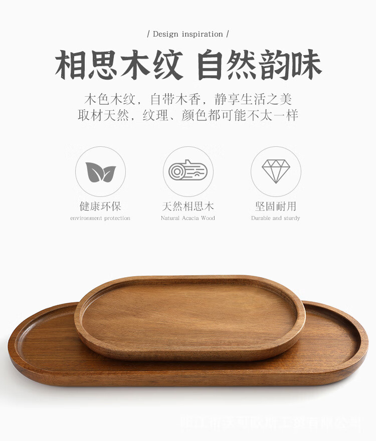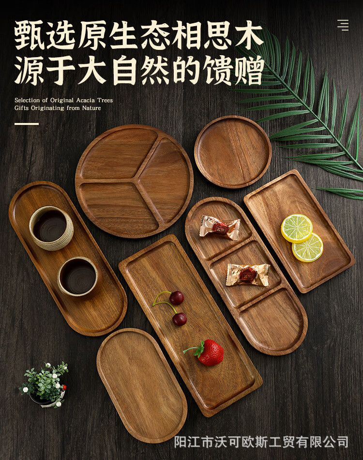 Acacia wood dinner plate wooden tray Japanese tea tray stove cooking solid wood household wooden tableware rectangular cake wooden tray log color small oval