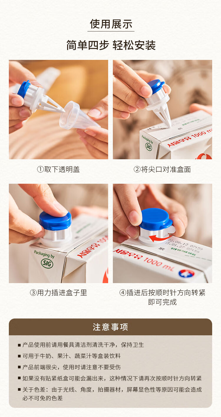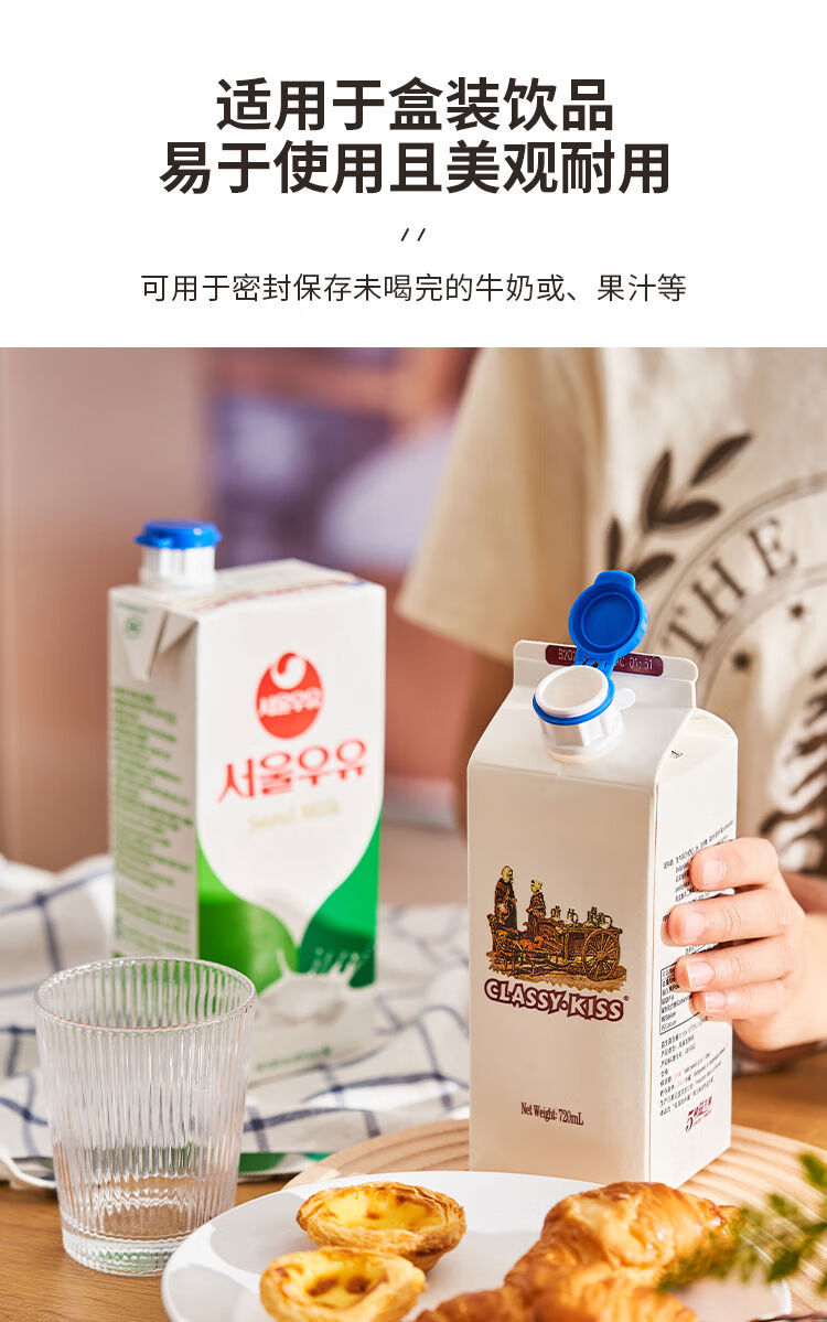Sanqihu creative milk carton diversion sealing cap adds a fresh-keeping lid to large-capacity carton drinks. Japanese style diversion mouth sealer 4 pieces. Item No. 5179