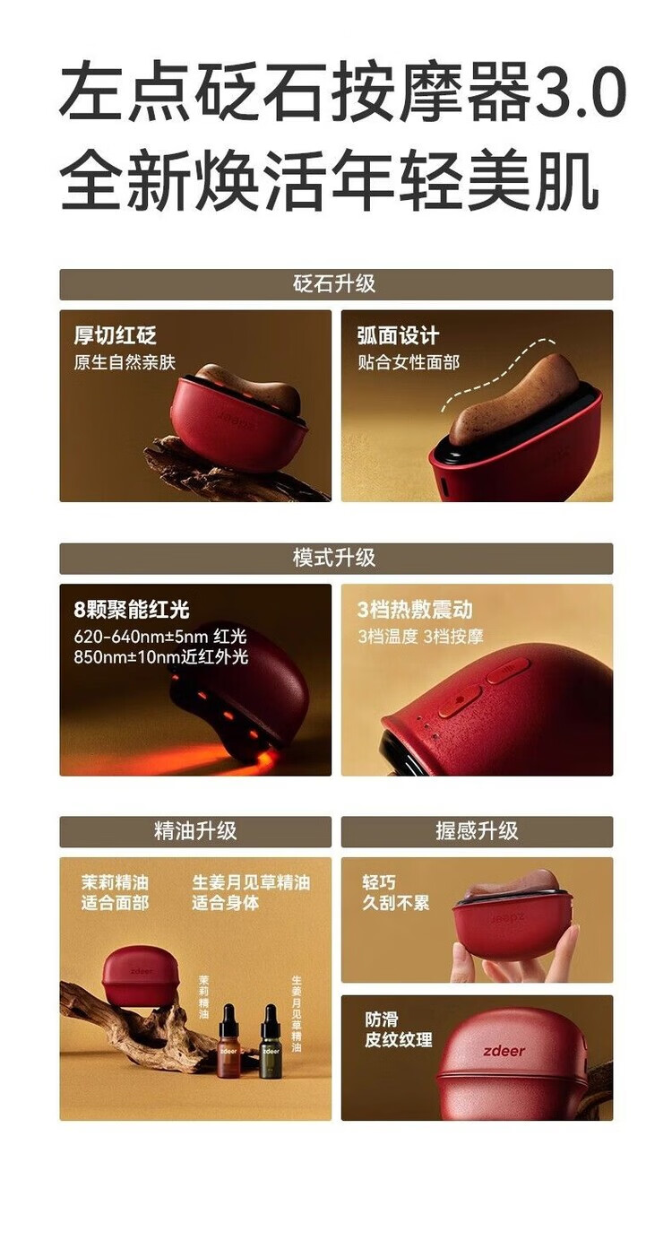 Click left on the electric Bianstone scraping board for facial massage, lifting and firming. Standard model. Red Bianstone + 2 bottles of essential oil.