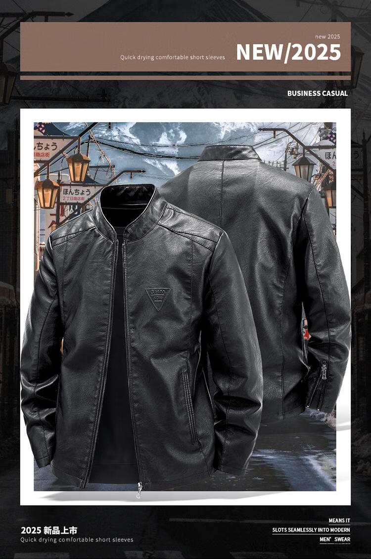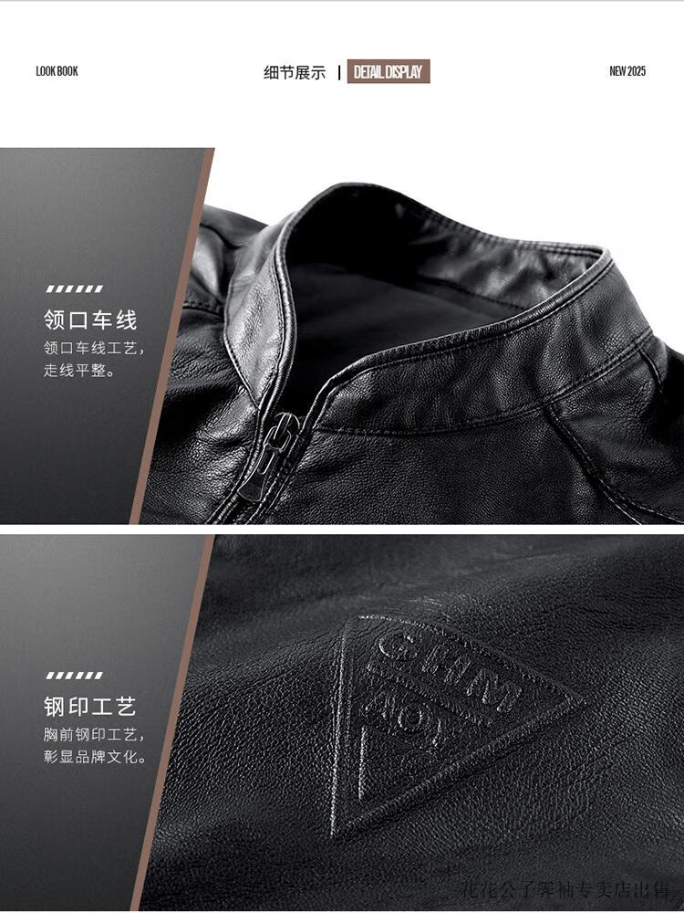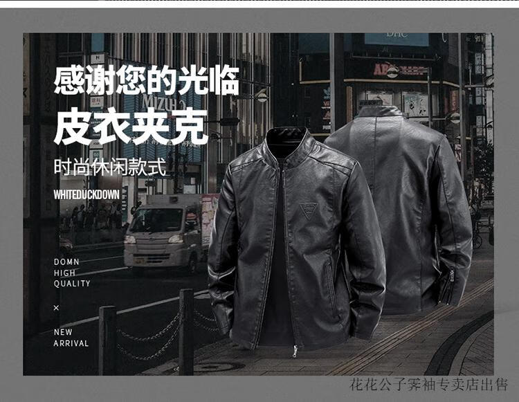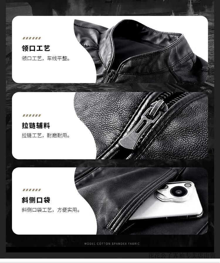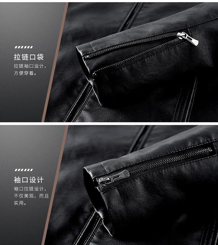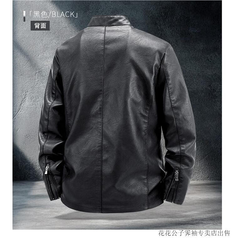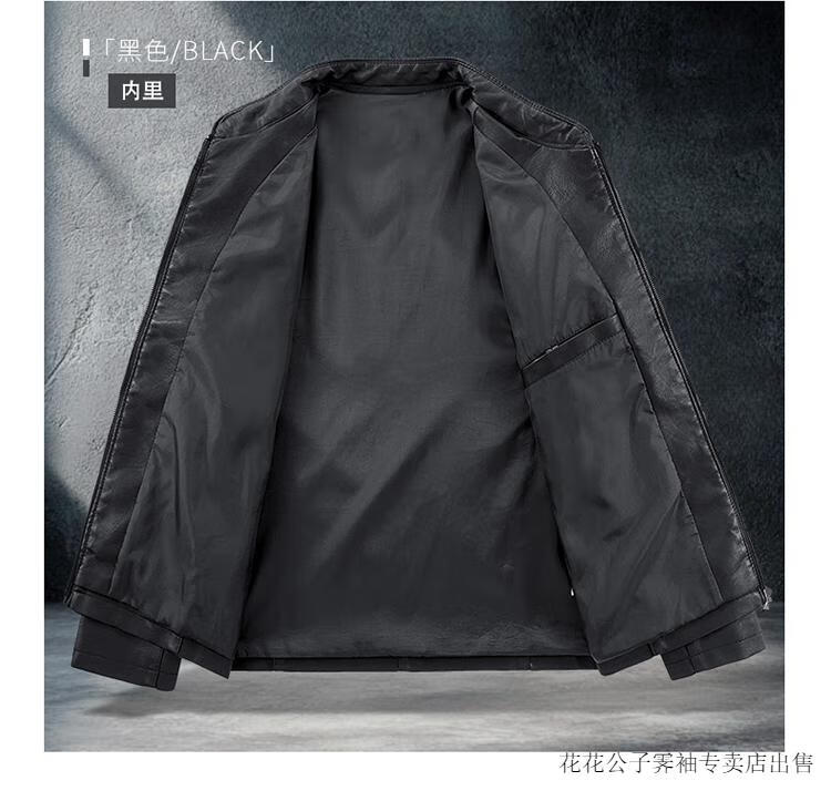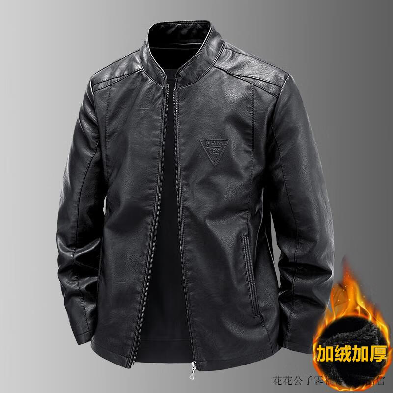 Playboy (PLAYBOY) high-end Haining leather jacket men's stand-up collar plus velvet thickening slim casual trendy handsome leather jacket motorcycle jacket black without velvet BJ6618 2XL